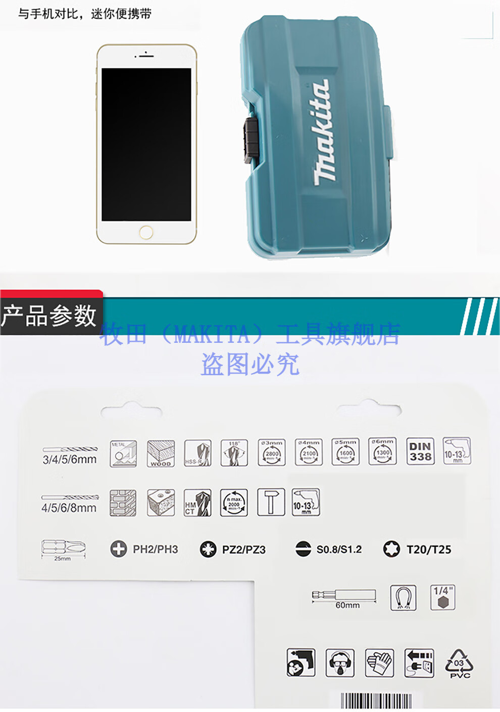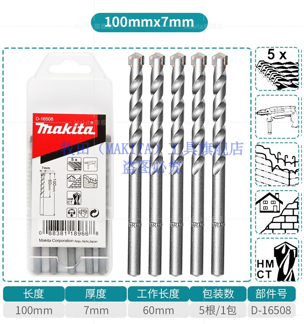 Makita pre-sale Makita masonry drill bit set 17-piece combination impact drill hand drill set D-53693 impact drill bit 7X100 (5 pieces) D-16508