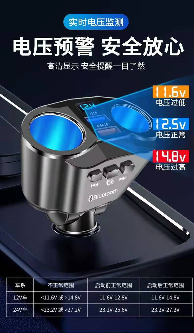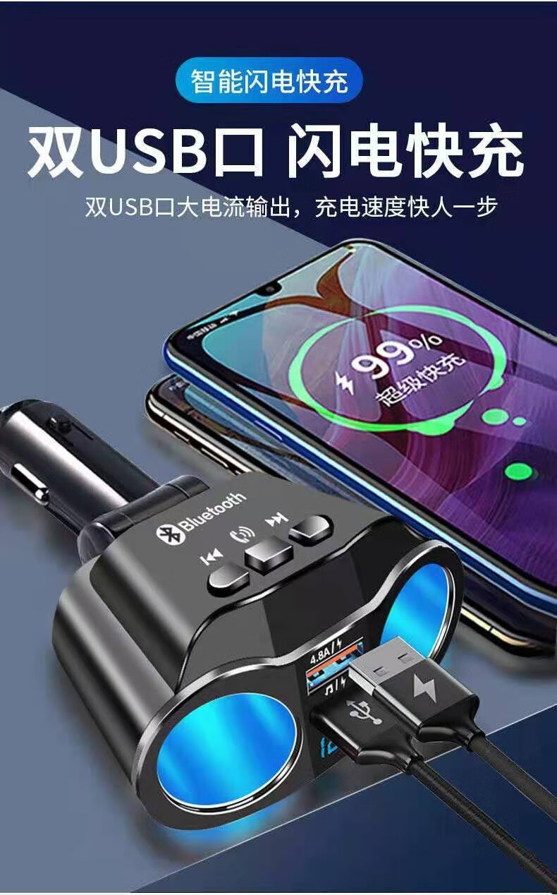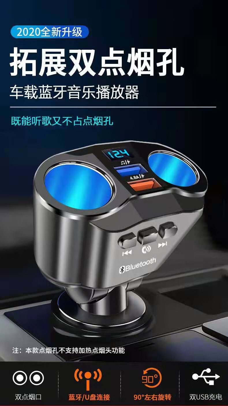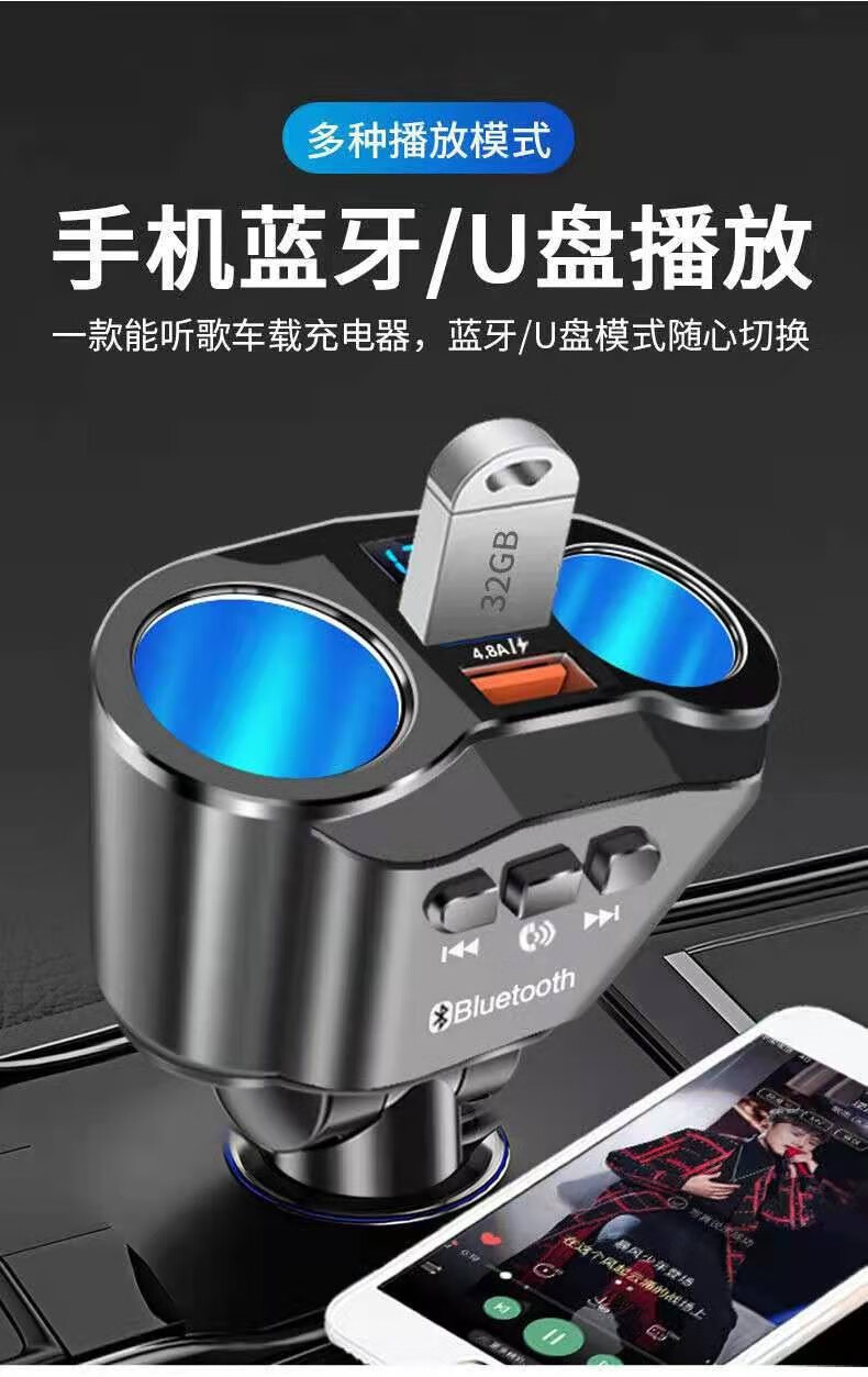 Zhixing Wuyou Car Bluetooth Receiver MP3 Player Car Cigarette Lighter Extension Charger Multi-Function Converter with U Disk 5.0 HD Bluetooth + USB Level Fast Charging + U Disk Playback