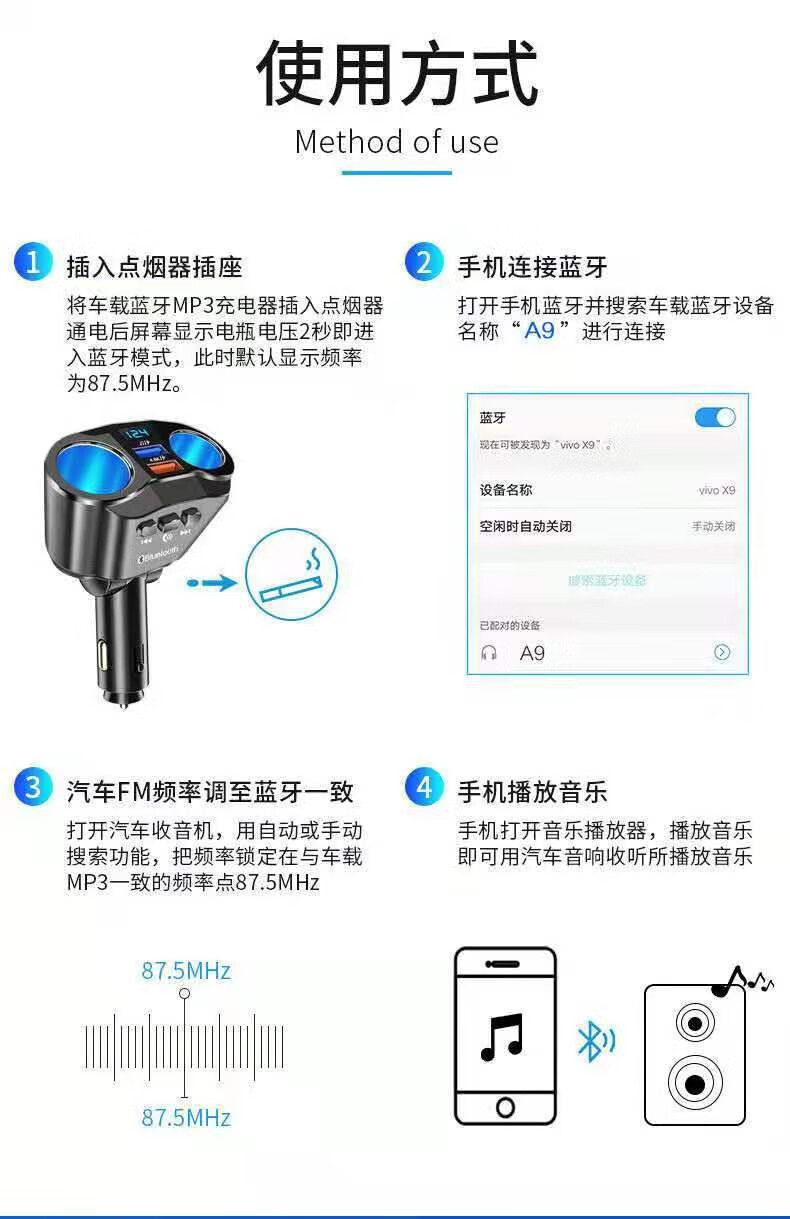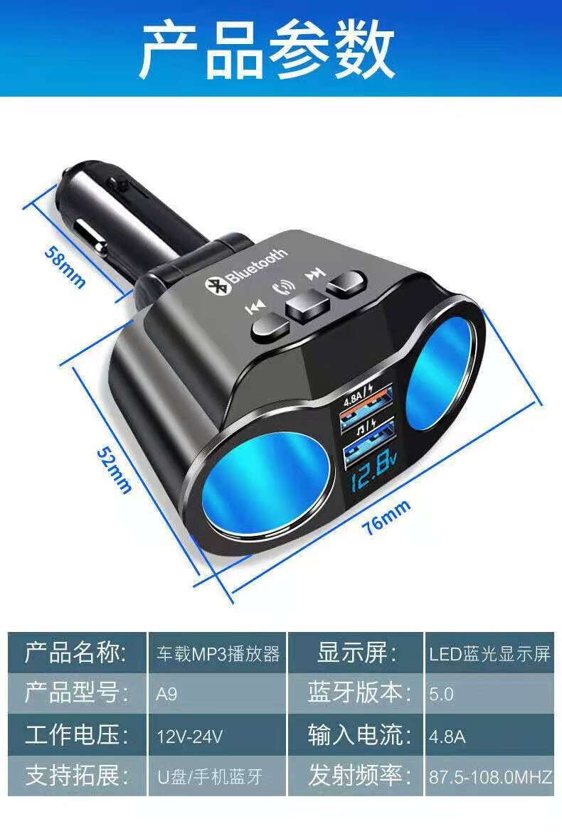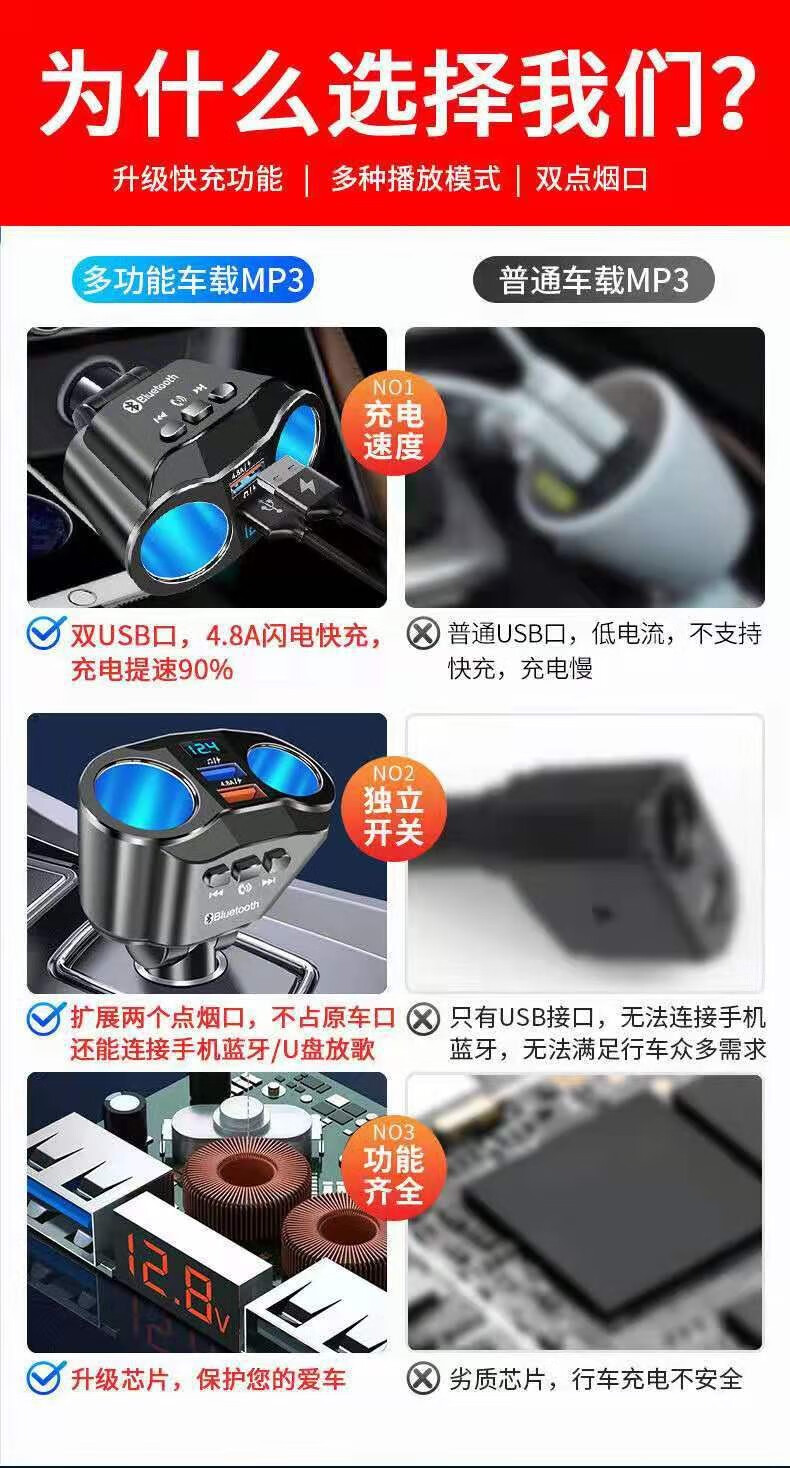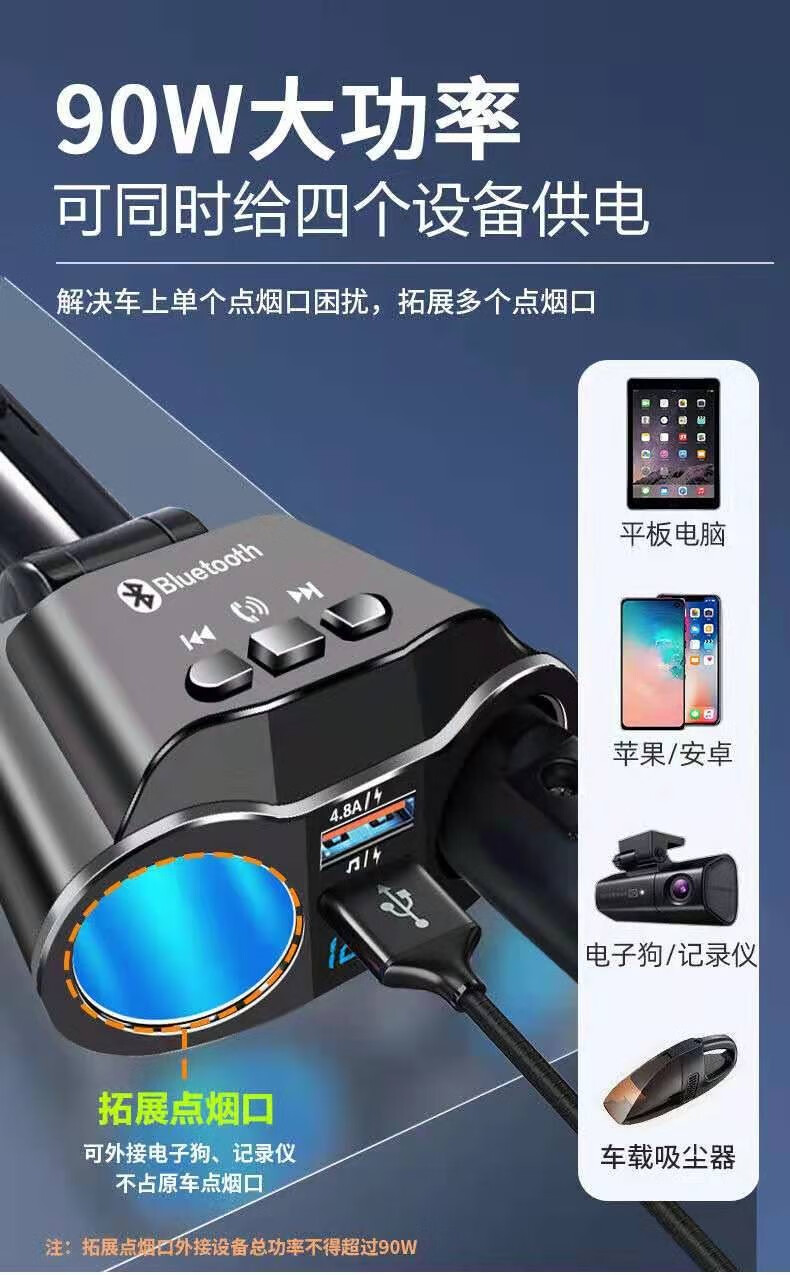 Zhixing Wuyou Car Bluetooth Receiver MP3 Player Car Cigarette Lighter Extension Charger Multi-Function Converter with U Disk 5.0 HD Bluetooth + USB Level Fast Charging + U Disk Playback