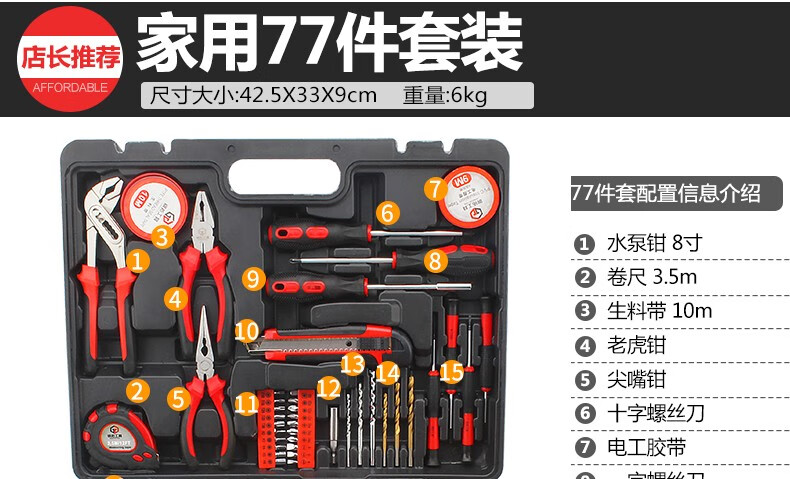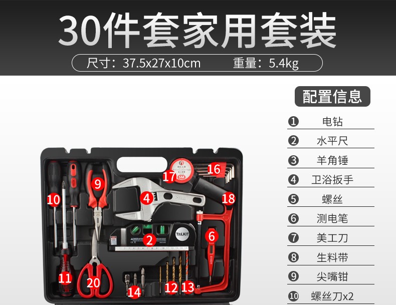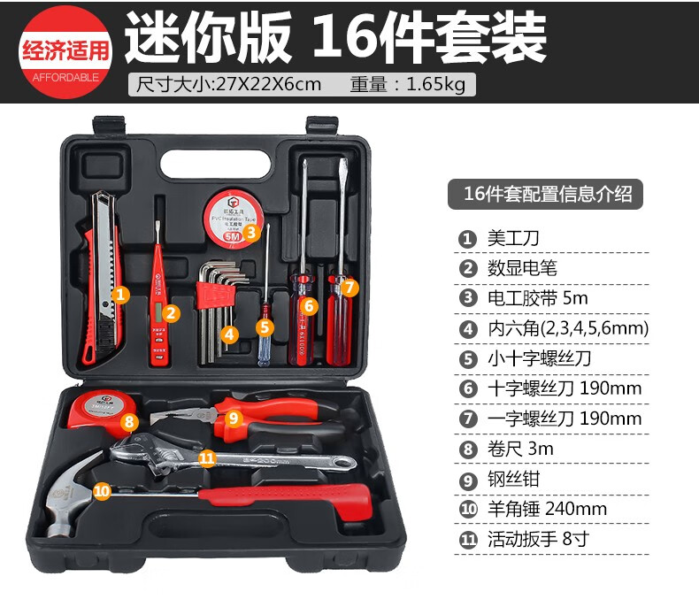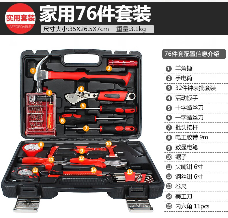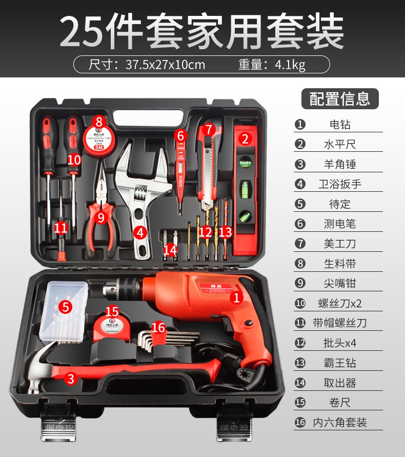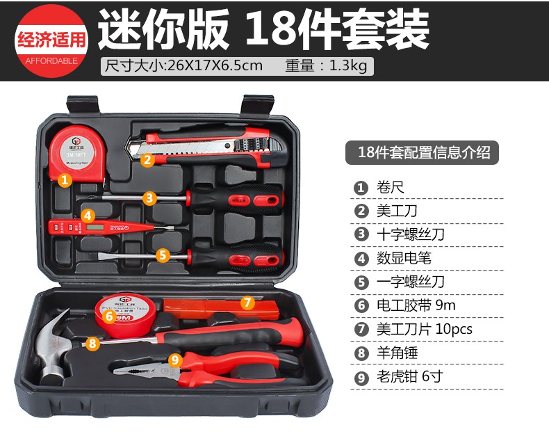 Gangtuo Household Toolbox Set Multifunctional Home Electrician Repair Hardware Tool Set 31-piece Set Classic Economic Edition