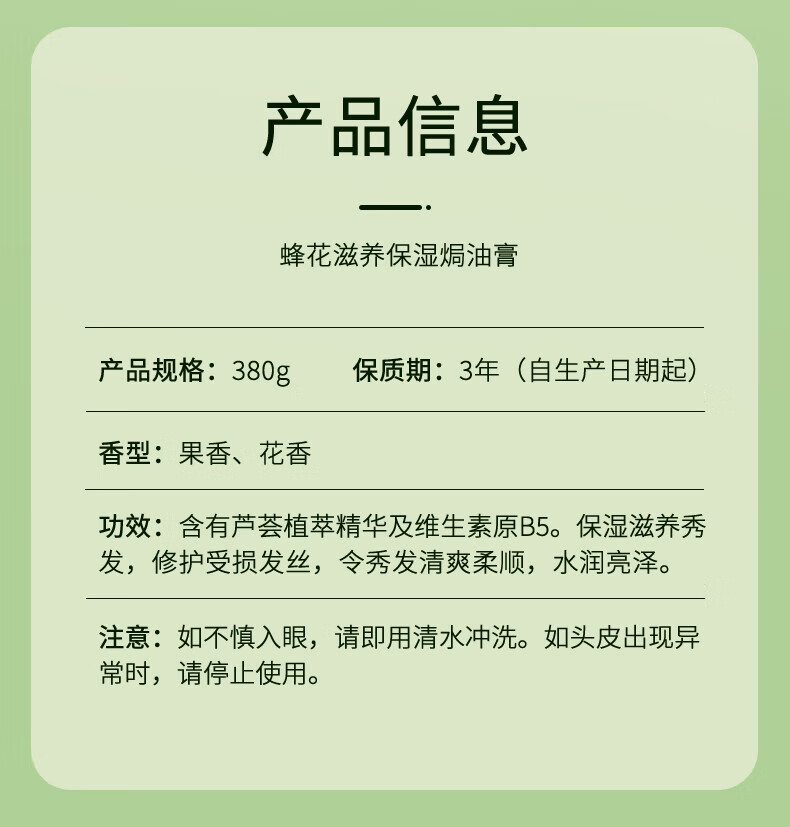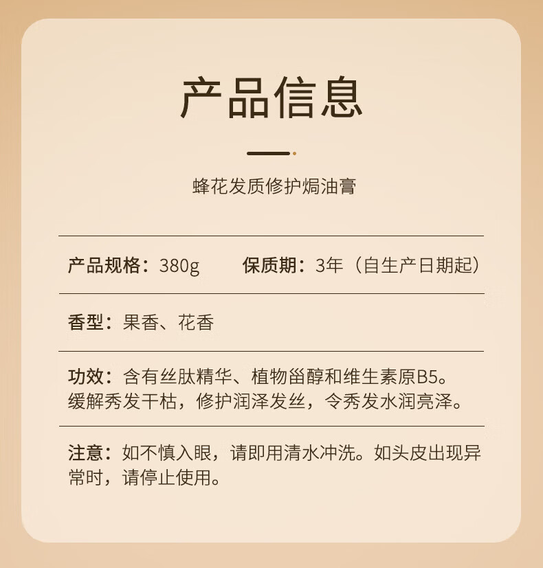 Bee Flower Hair Repair Baked Oil Cream Conditioner Smooth and Smooth Hair Mask for Dry and Frizzy Men and Women Long-lasting Fragrance Dyeing and Perm Repair Hair Repair 380g