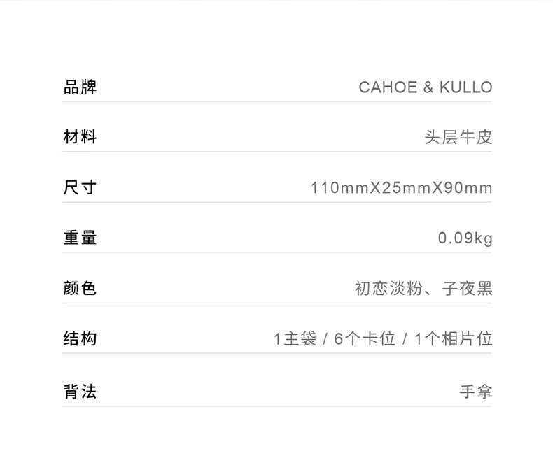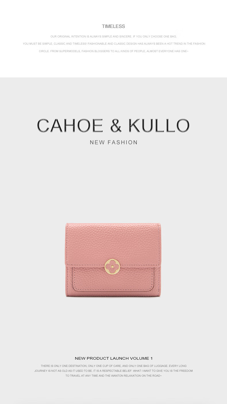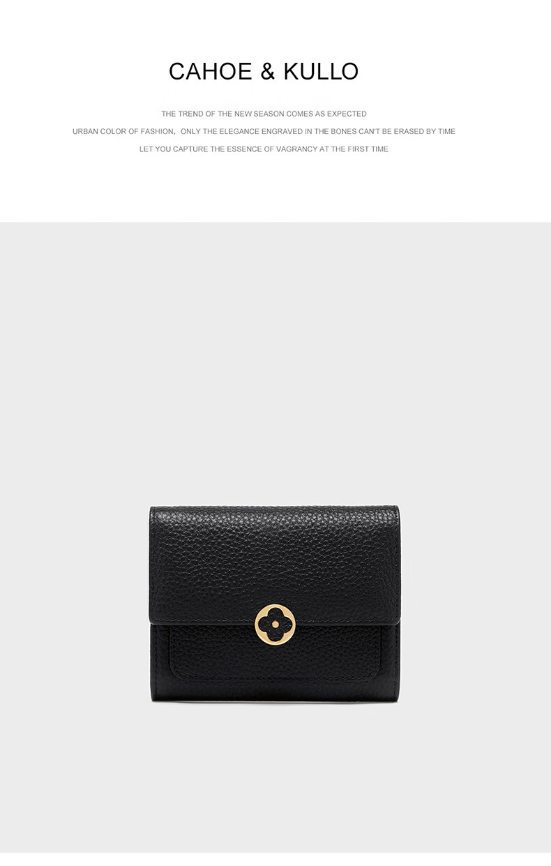 CAHOE KULLO official cowhide wallet women's short 2025 new clutch bag women's card holder multi-card slot coin purse wallet black-CK birthday gift for girlfriend