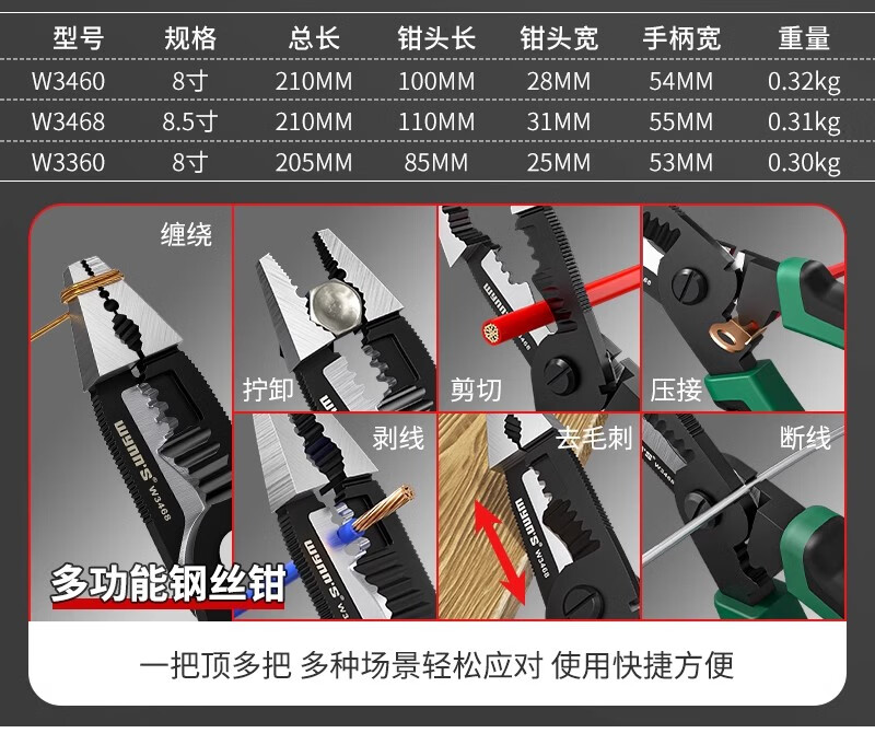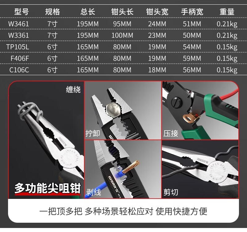 Power Lion (wynn s) multifunctional wire nose pliers stripping wire crimping cable cutter industrial grade seven-in-one multi-purpose labor-saving wire pliers personalized 6-inch wire stripping needle nose pliers TP105L