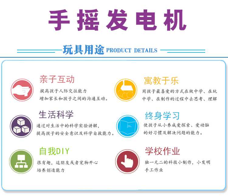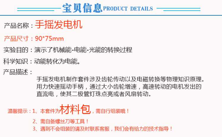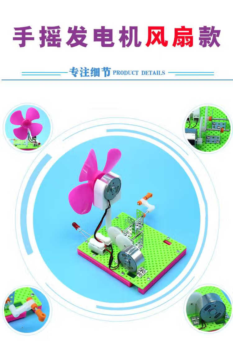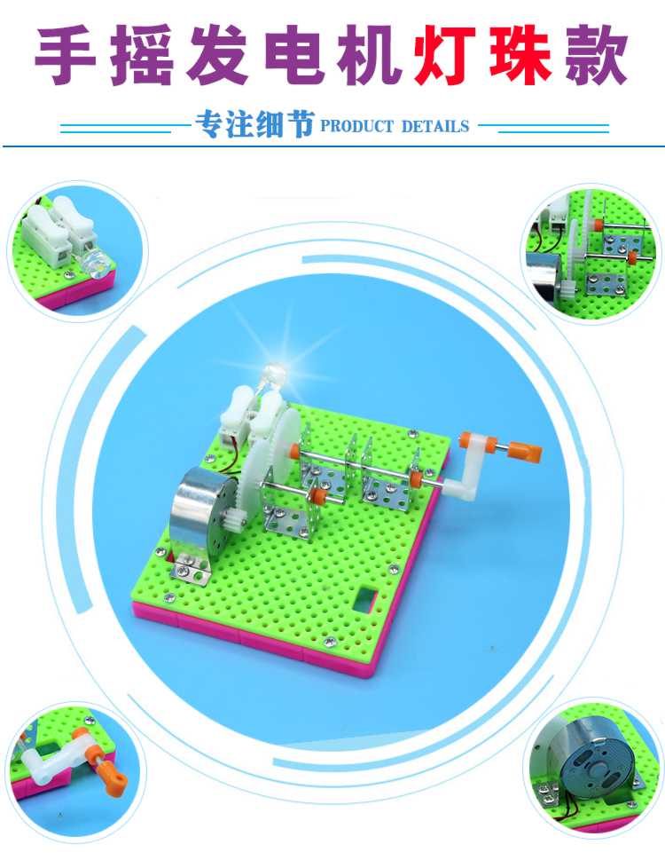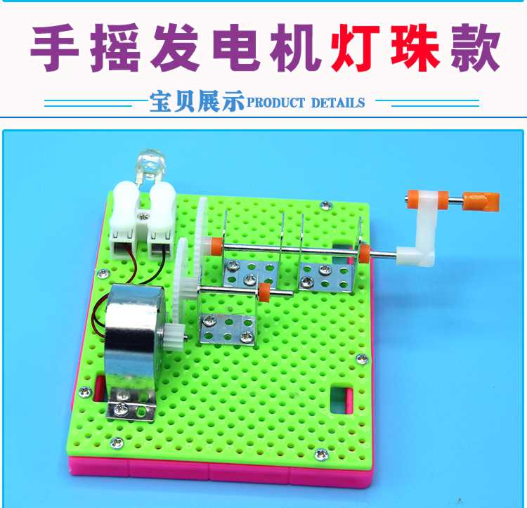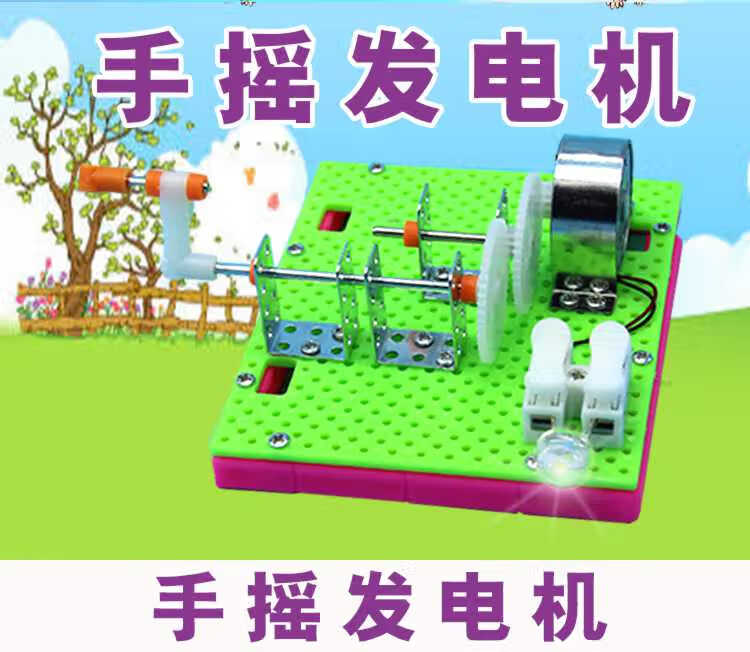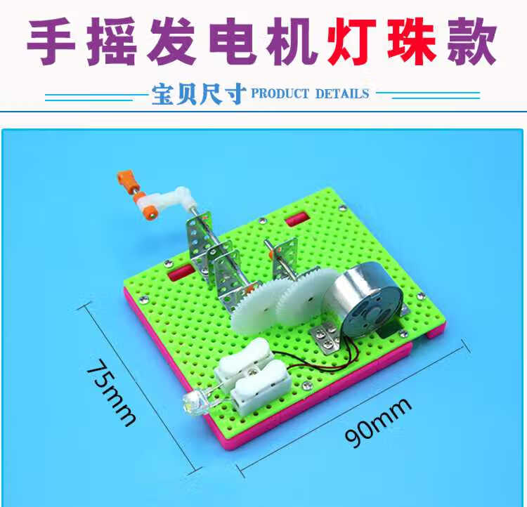 Shizhi scientific experiment toys DIY hand-cranked generator model science and technology small production invention children's hand-assembled science popularization hand-cranked generator lamp bead model (material package)