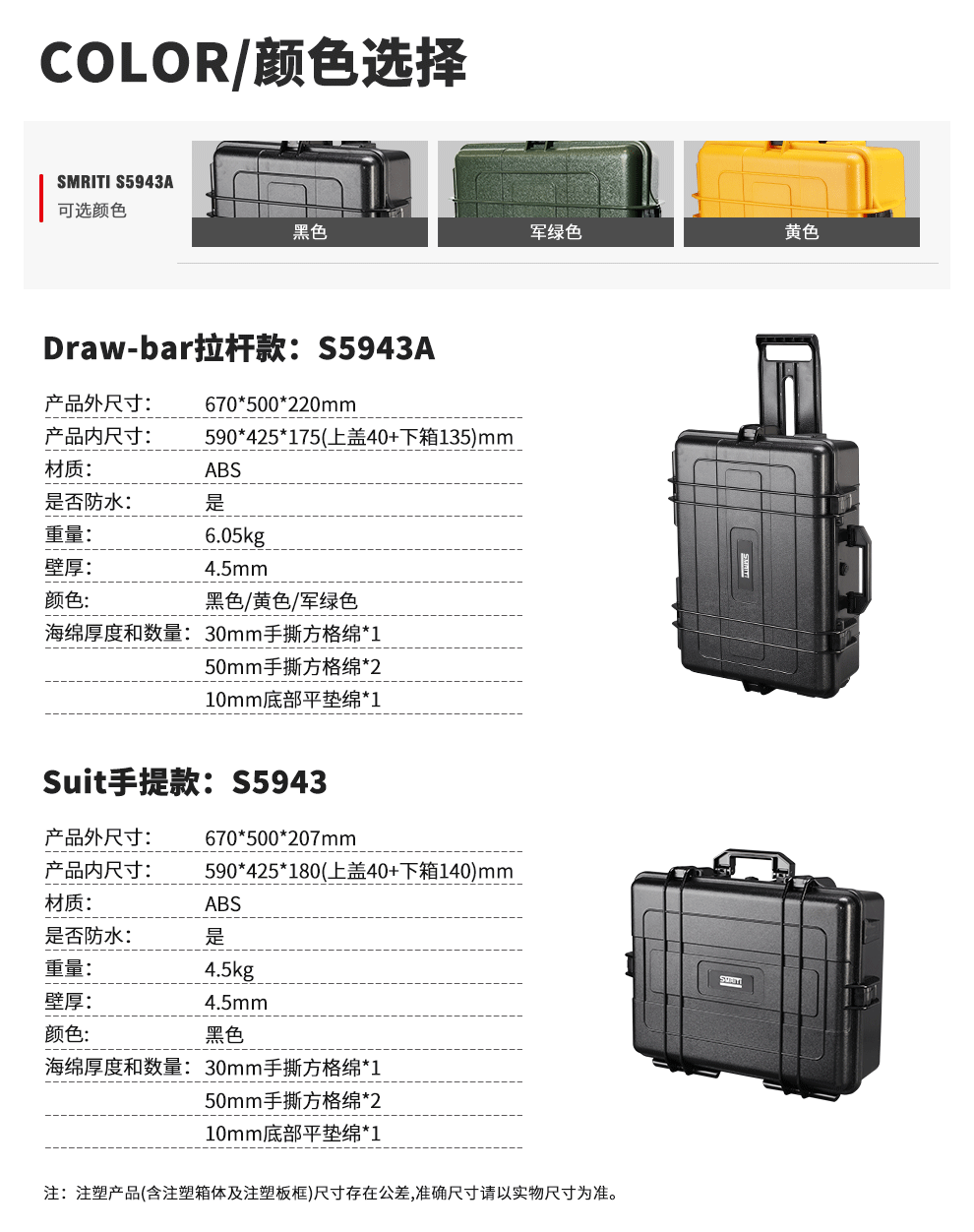 SMRITI heritage protective box 5943A large ABS plastic hardware multi-functional rod equipment tool box instrument packaging box 5943A black empty box plus sponge