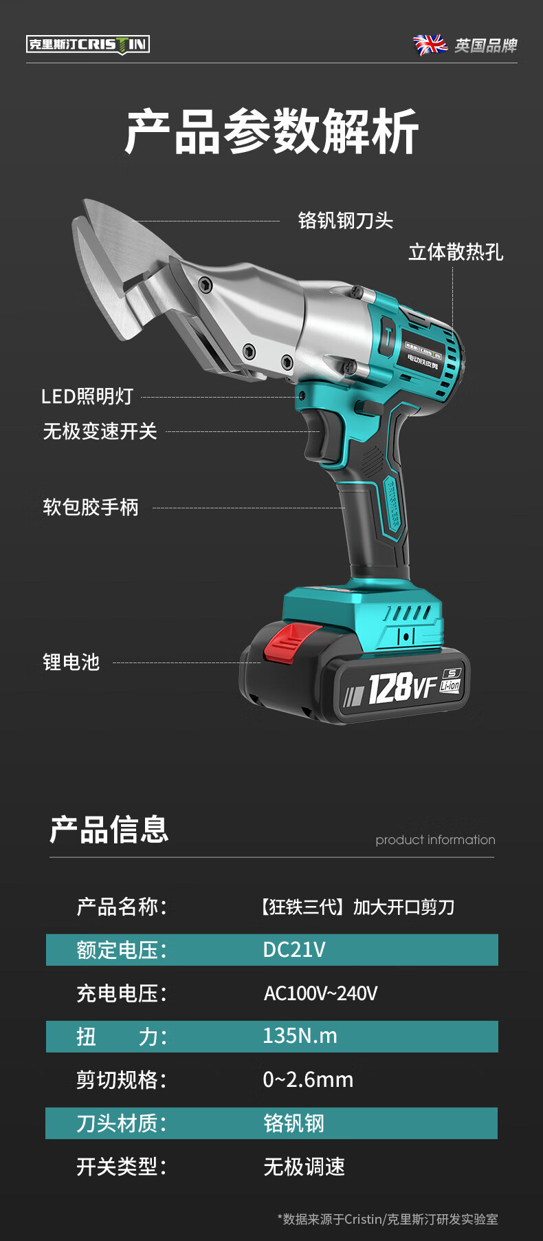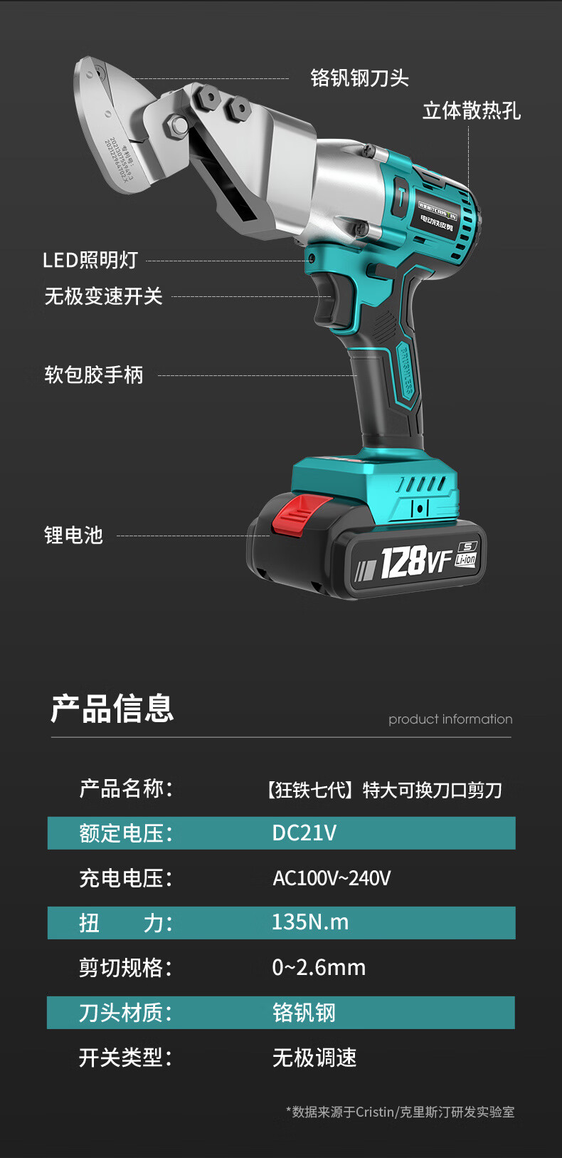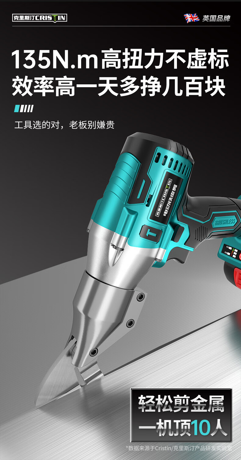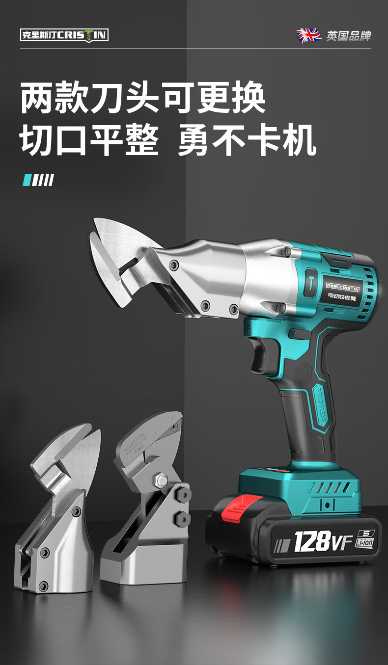 Cristin lithium battery rechargeable electric iron scissors industrial grade electric scissors color steel tile electric scissors CT brushless third generation enlarged opening 128VF1 electric 1 charge (21V)