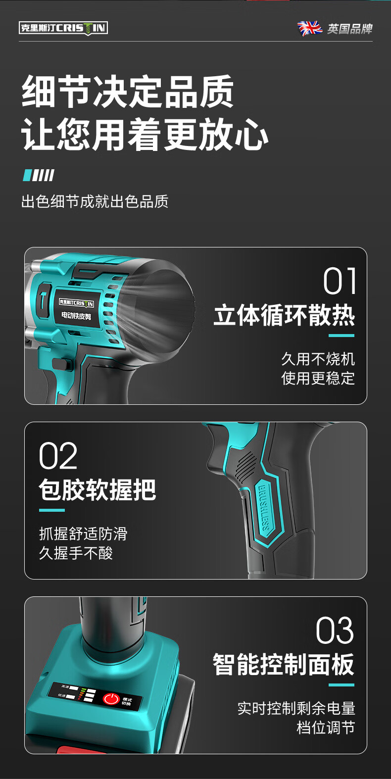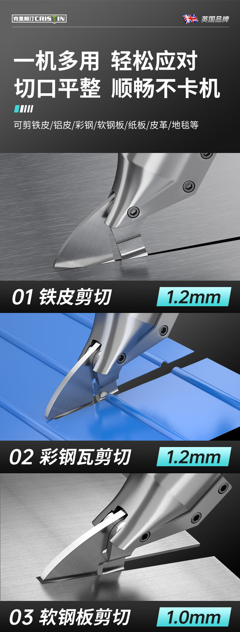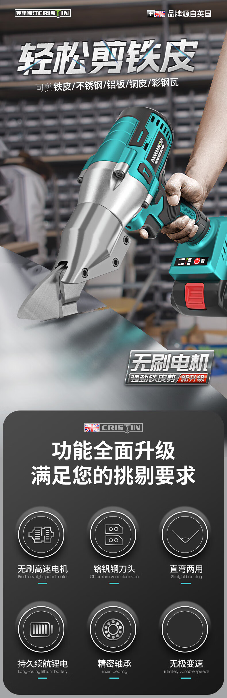 Cristin lithium battery rechargeable electric iron scissors industrial grade electric scissors color steel tile electric scissors CT brushless third generation enlarged opening 128VF1 electric 1 charge (21V)