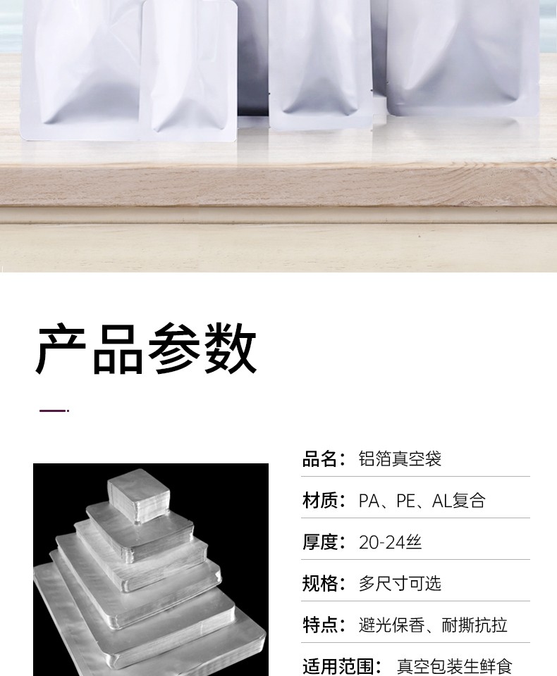 BLEUETS pure aluminum foil vacuum packaging bag food tea sealing bag aluminum foil plastic sealing bag large size 100 pieces 21*31