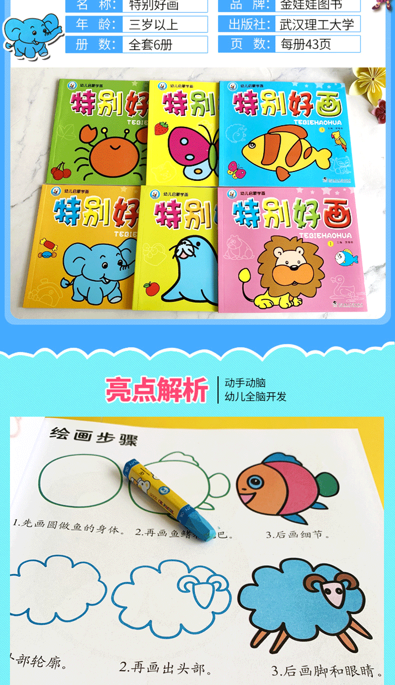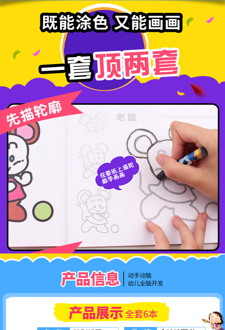 Children aged 3 to 6 years old are learning to draw using paper. A coloring and coloring book for children. An enlightenment drawing book for young children to draw. Simple drawings, crayon drawings, colored pen drawings, watercolor drawings, color matching. Baby's zero-based drawing, creativity and imagination training. Copying and drawing, all six volumes. Three random volumes of particularly good paintings.