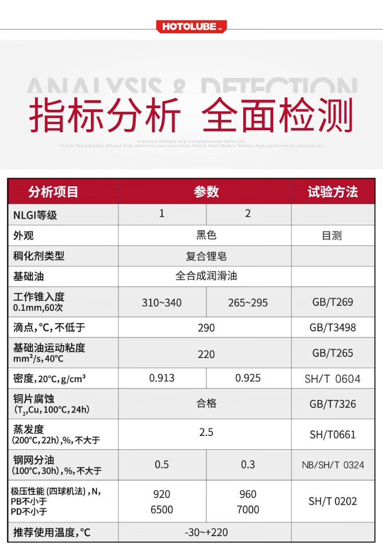 Hutou fully synthetic molybdenum disulfide high temperature grease hub wheel bearing excavator gear guide grease 2kg one can (2#)