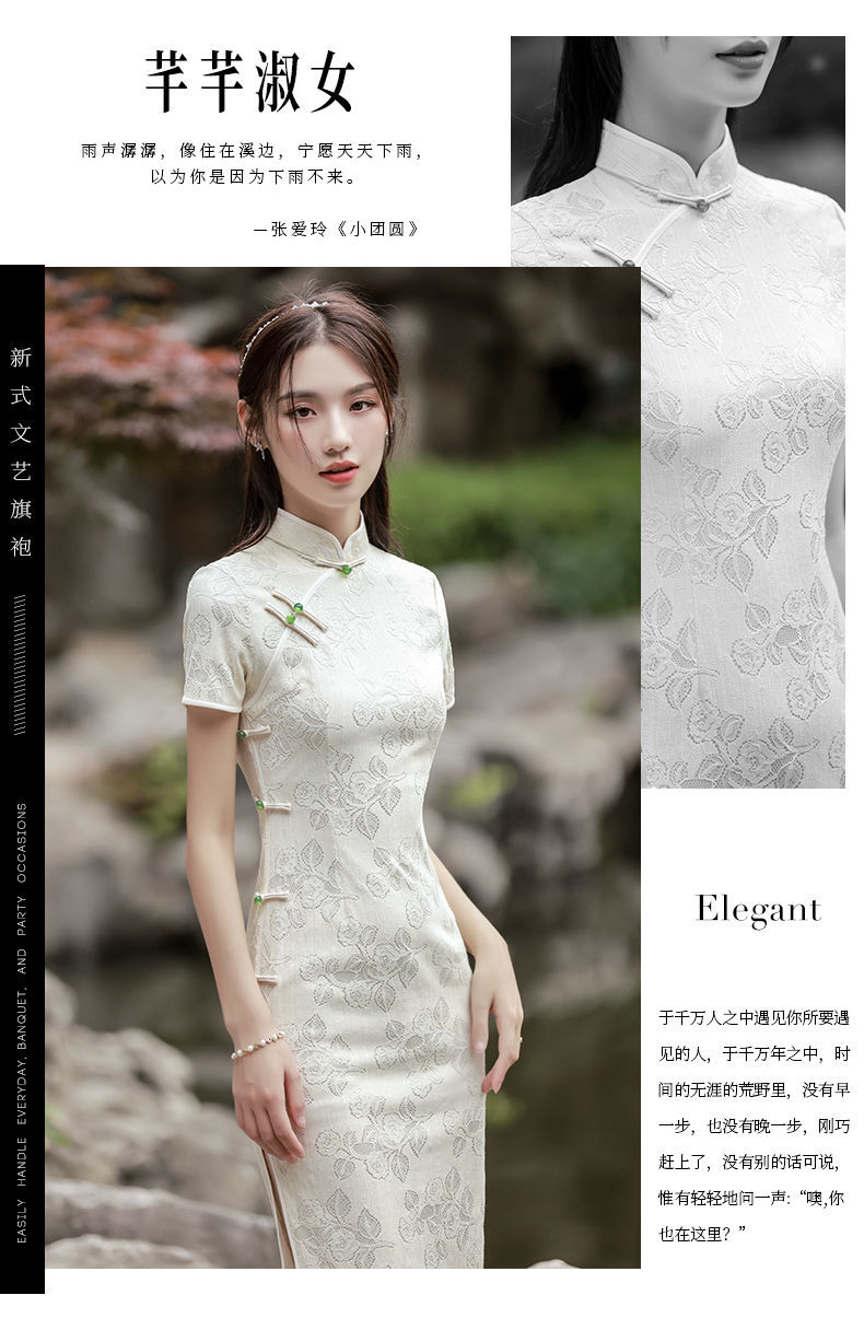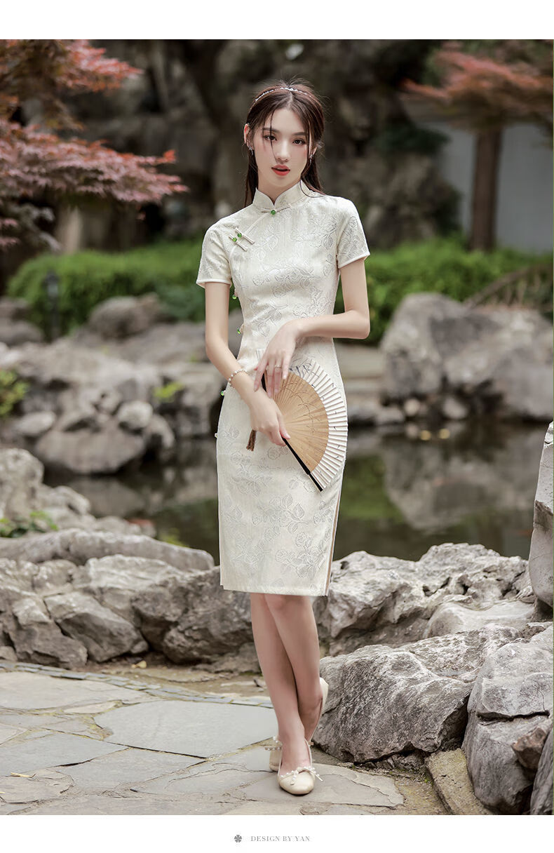 Du Yanzhi cheongsam women's summer new style sexy and bone-eroding young girl high-end temperament French improved Republic of China retro off-white 802 L (165) 100-110 pounds (skirt length about 115)