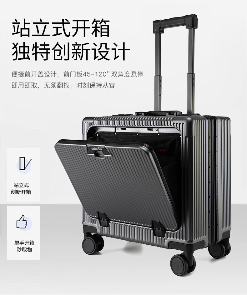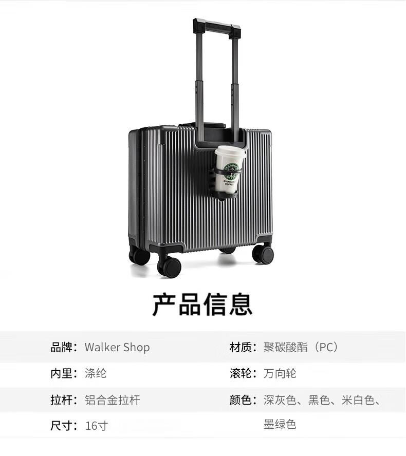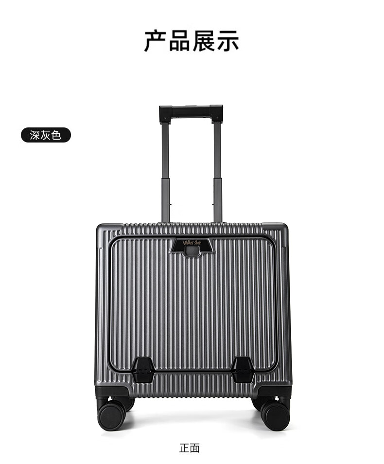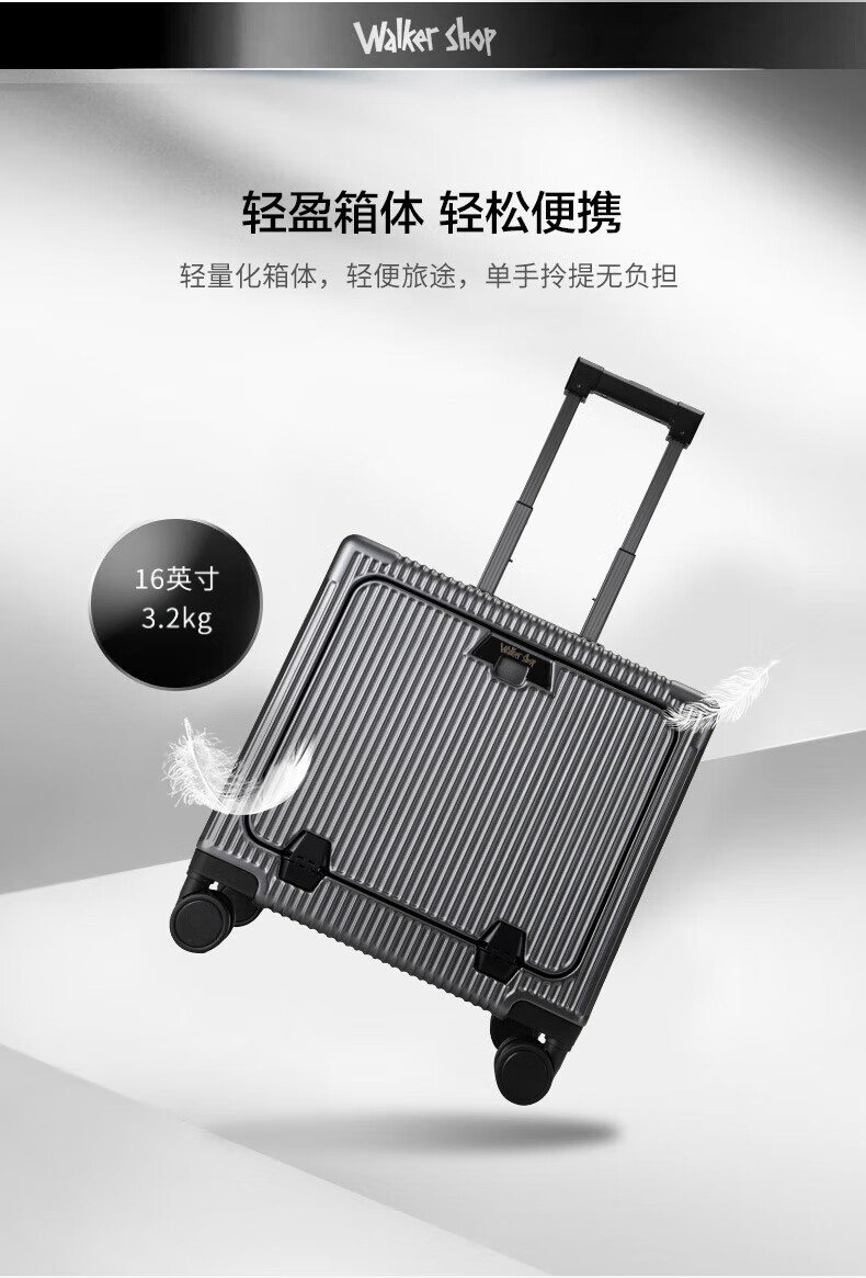 Walker Shop suitcase trolley case for men and women small coded aluminum frame large capacity suitcase small boardable dark gray 16-inch horizontal boarding case