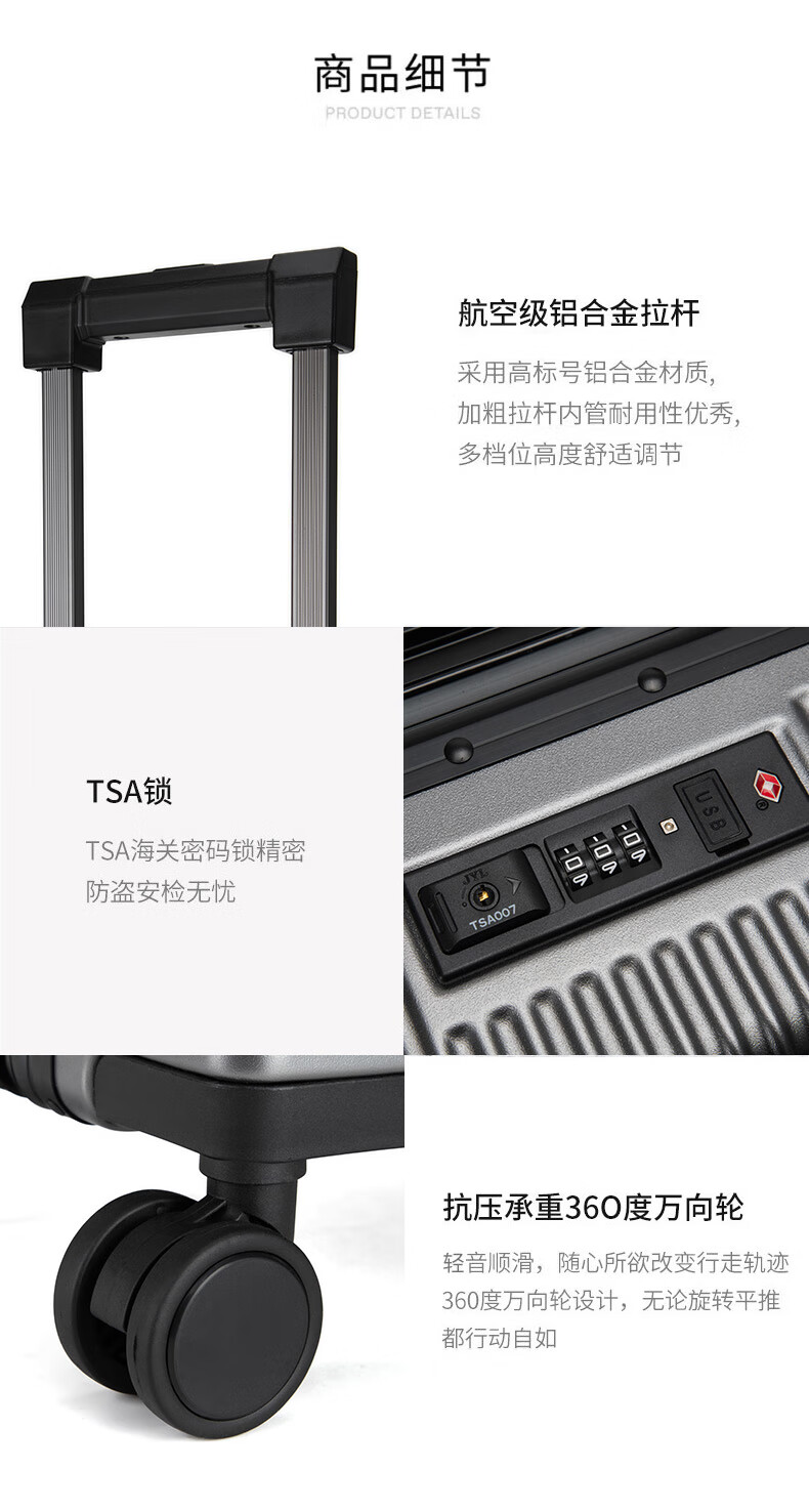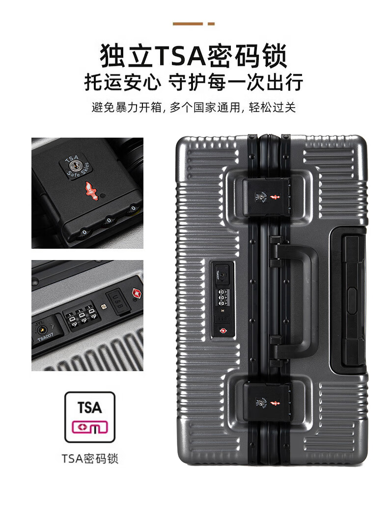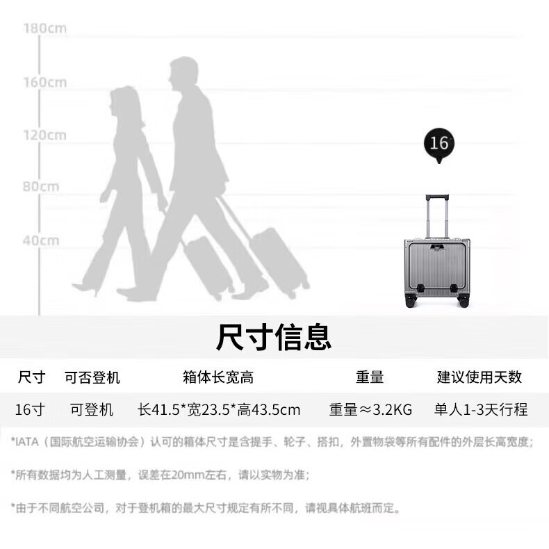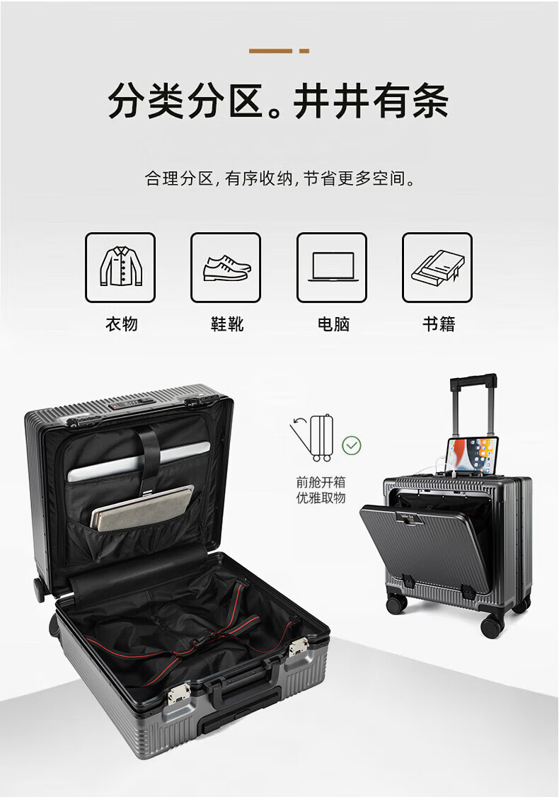 Walker Shop suitcase trolley case for men and women small coded aluminum frame large capacity suitcase small boardable dark gray 16-inch horizontal boarding case