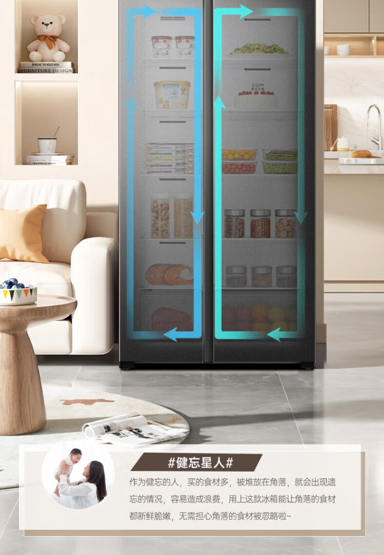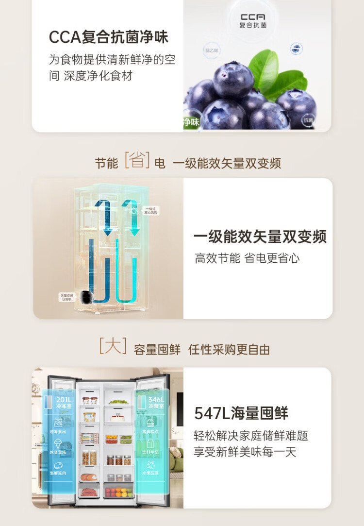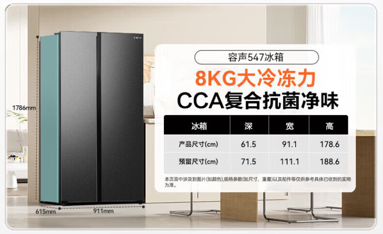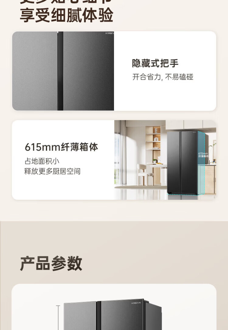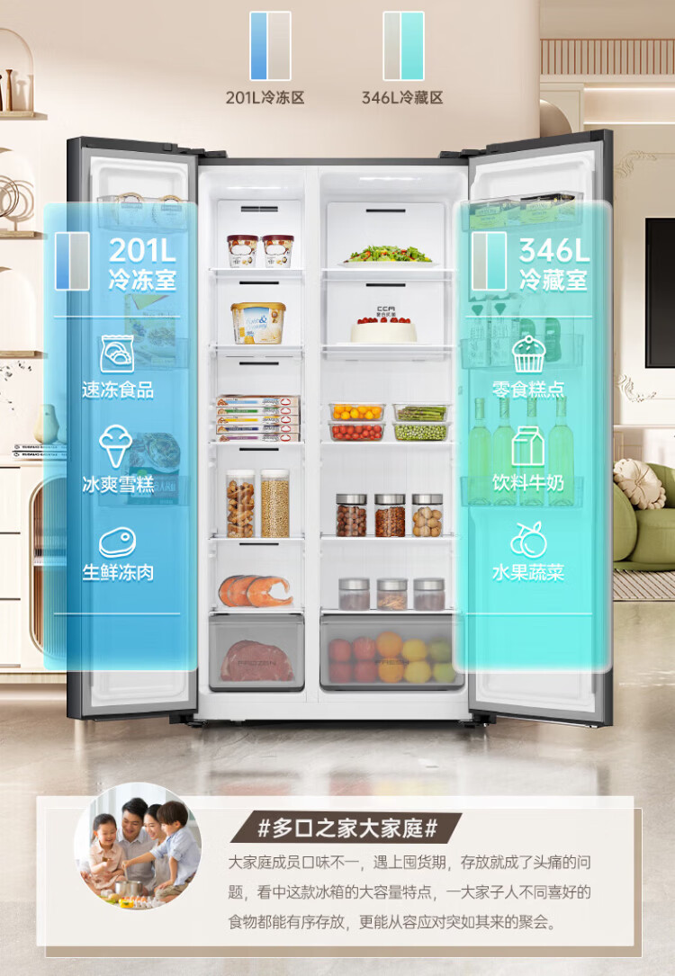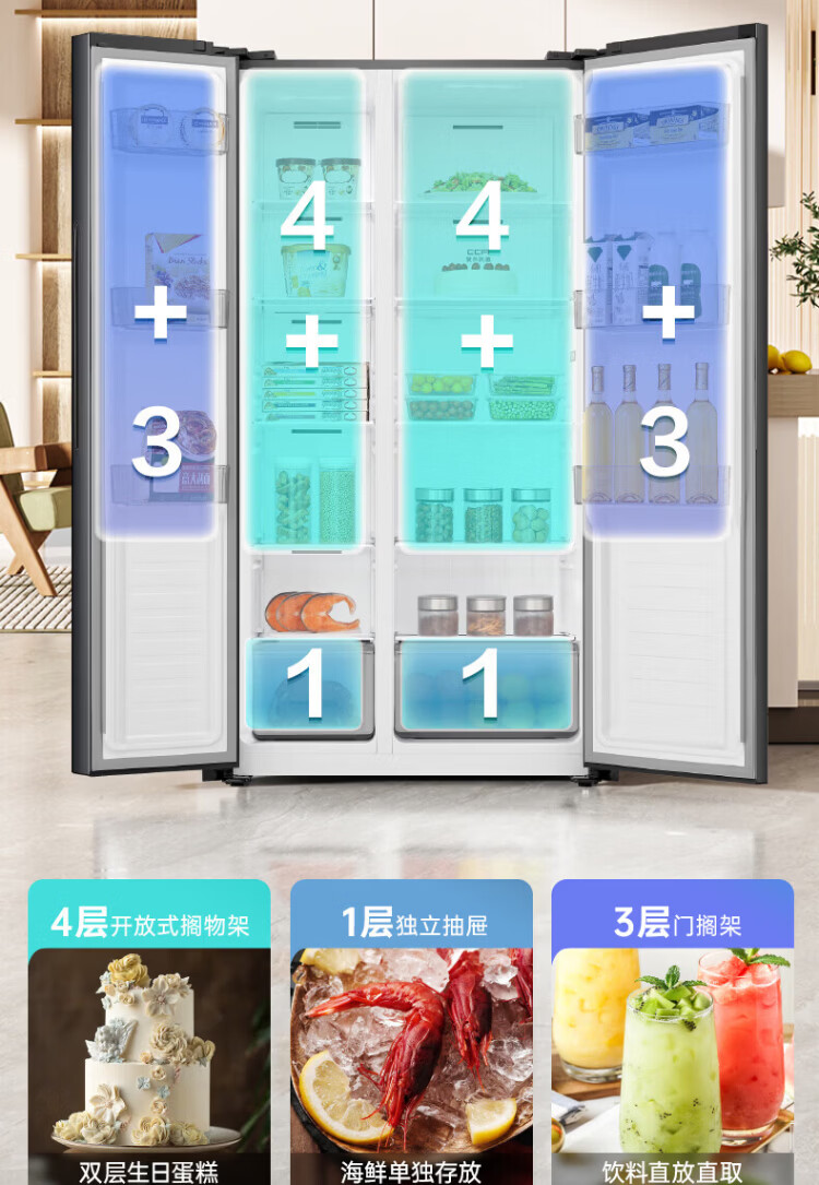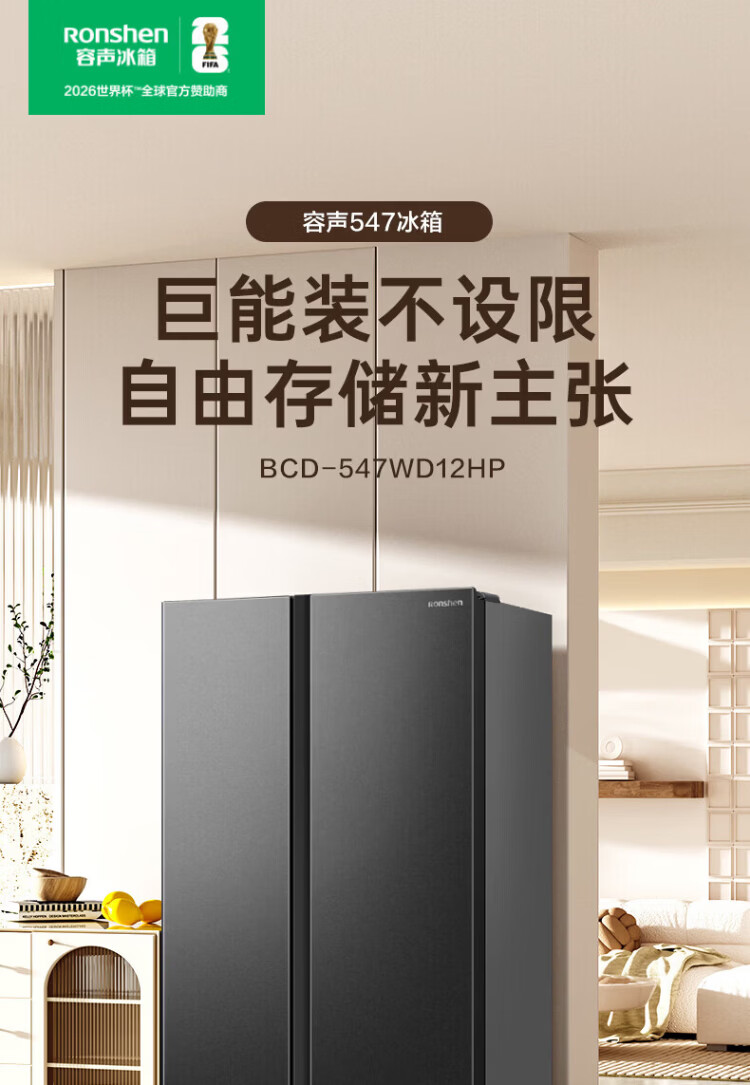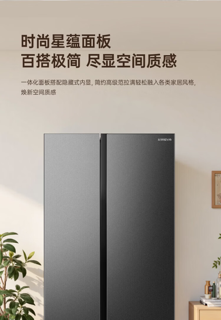 Rongsheng 547L side-by-side door refrigerator large capacity ultra-thin first-class energy efficiency air-cooled frost-free dual frequency conversion energy-saving antibacterial and odor-free refrigeration and freezing trade-in BCD-547WD12HP new product 547+-31 degrees ice-blocked fresh + 61.5cm ultra-thin