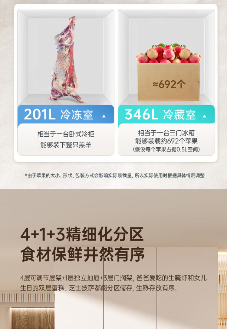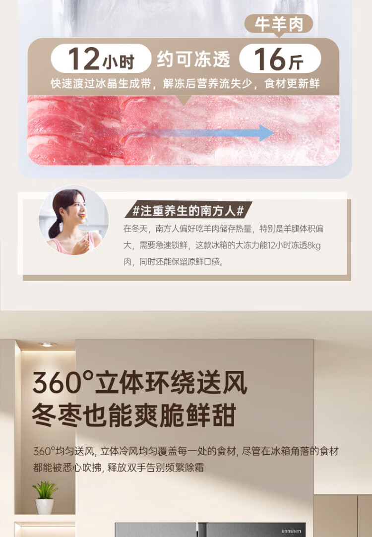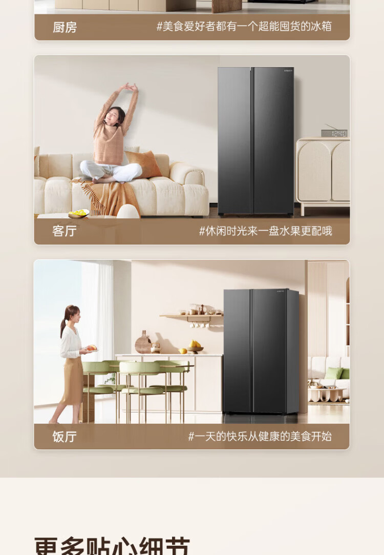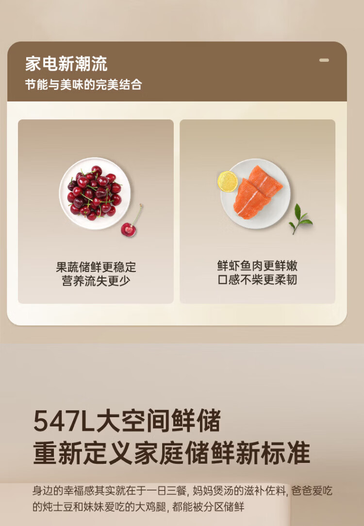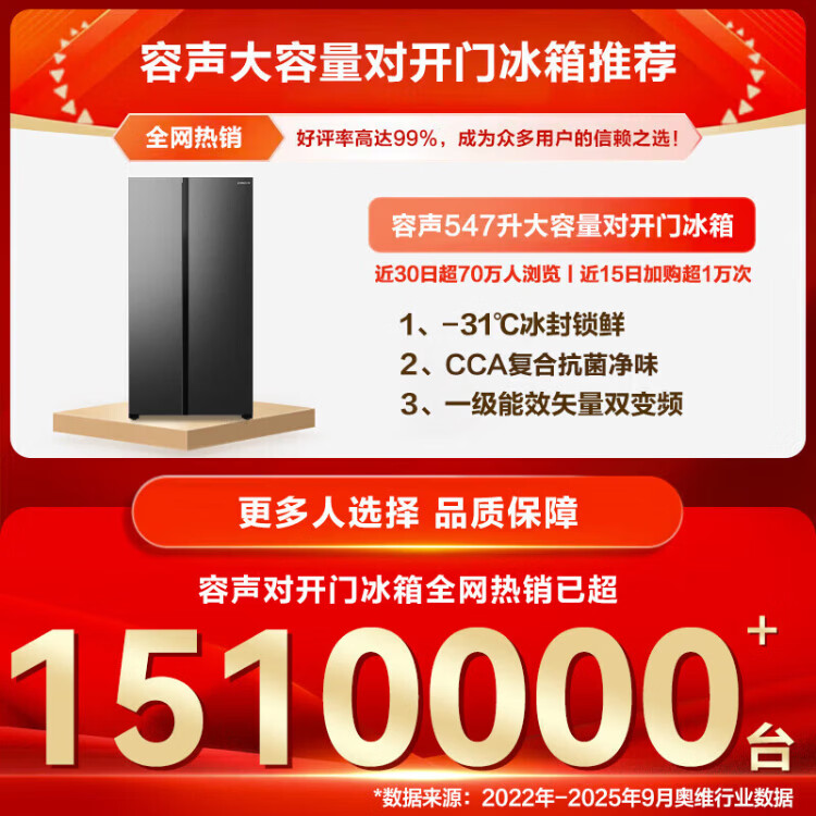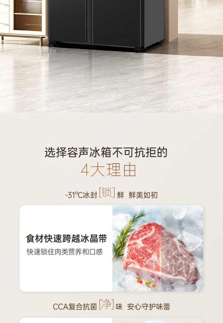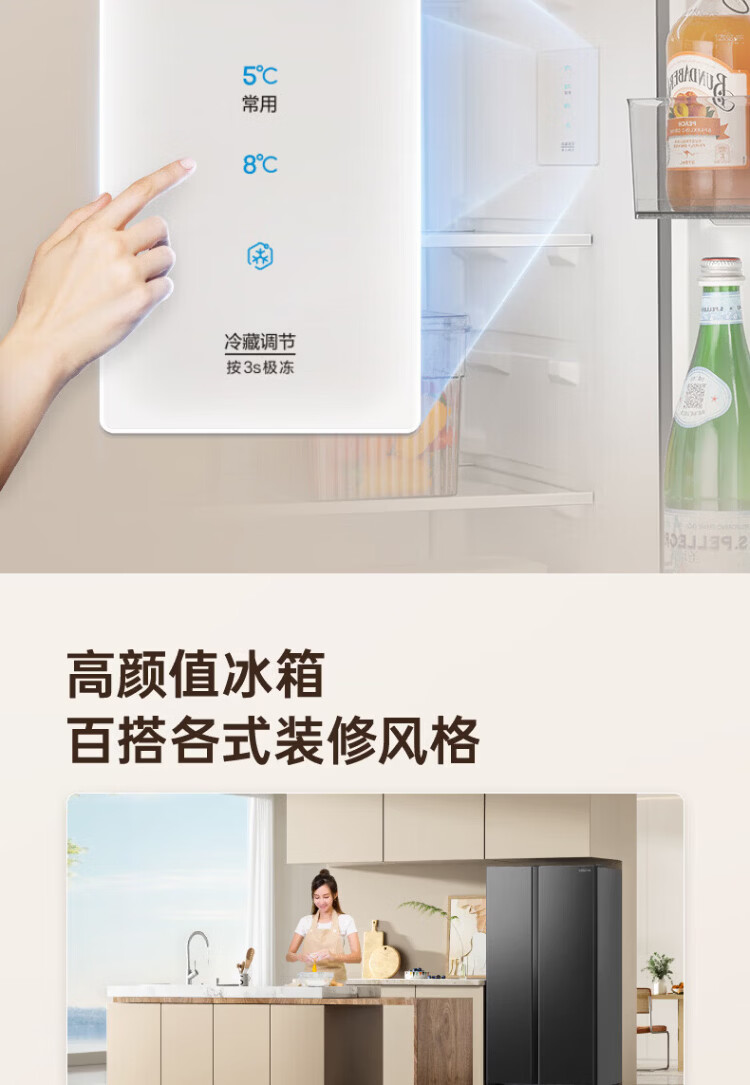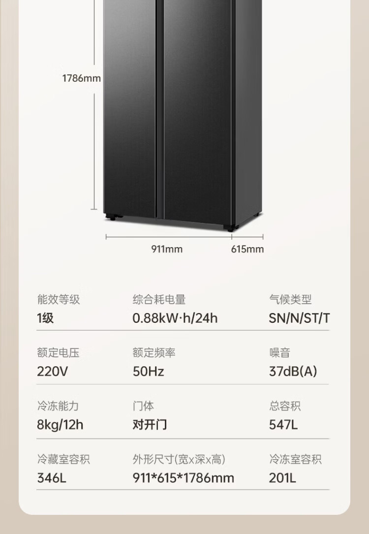 Rongsheng 547L side-by-side door refrigerator large capacity ultra-thin first-class energy efficiency air-cooled frost-free dual frequency conversion energy-saving antibacterial and odor-free refrigeration and freezing trade-in BCD-547WD12HP new product 547+-31 degrees ice-blocked fresh + 61.5cm ultra-thin