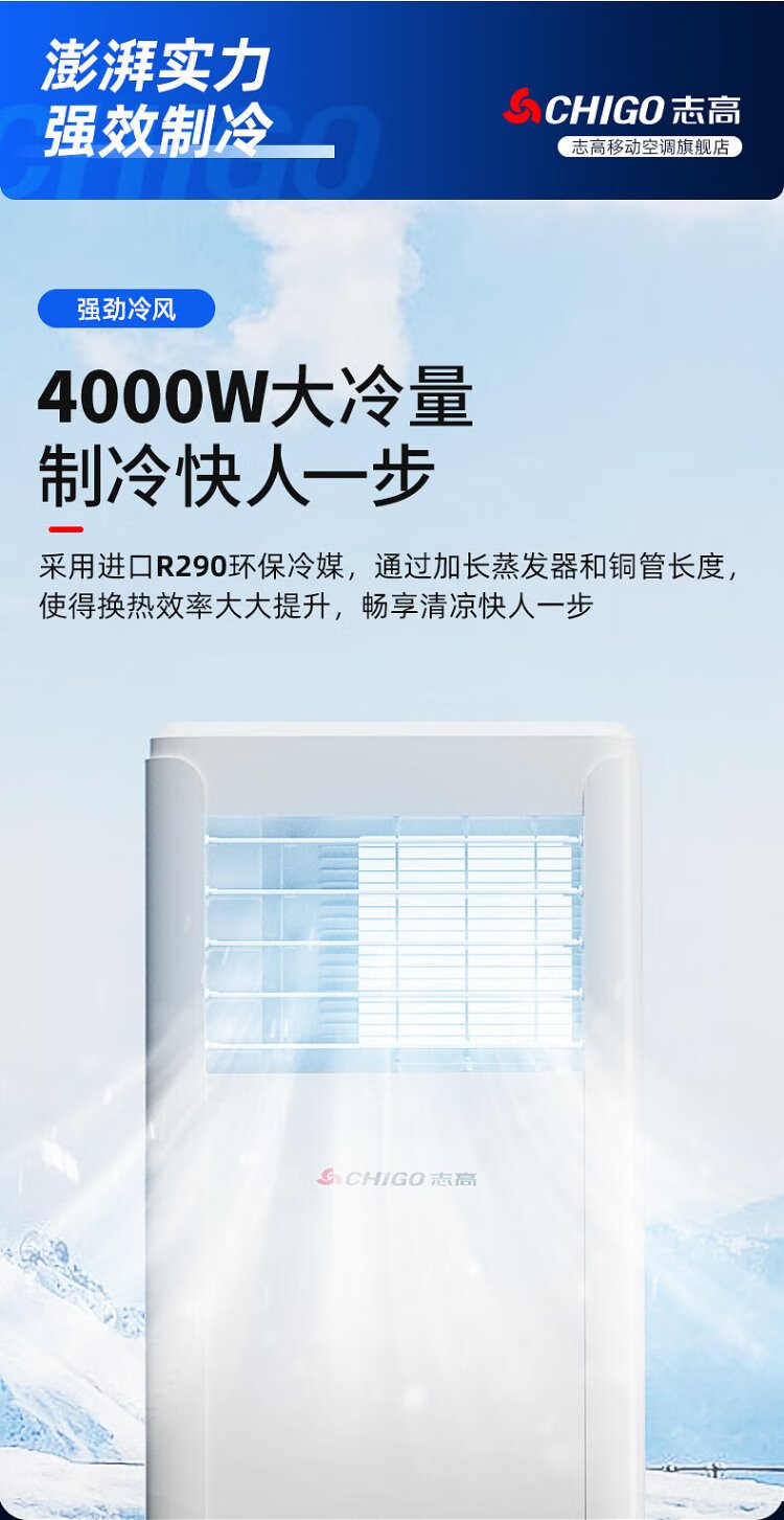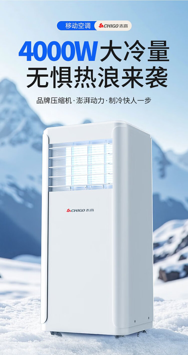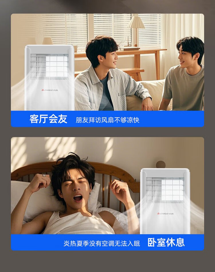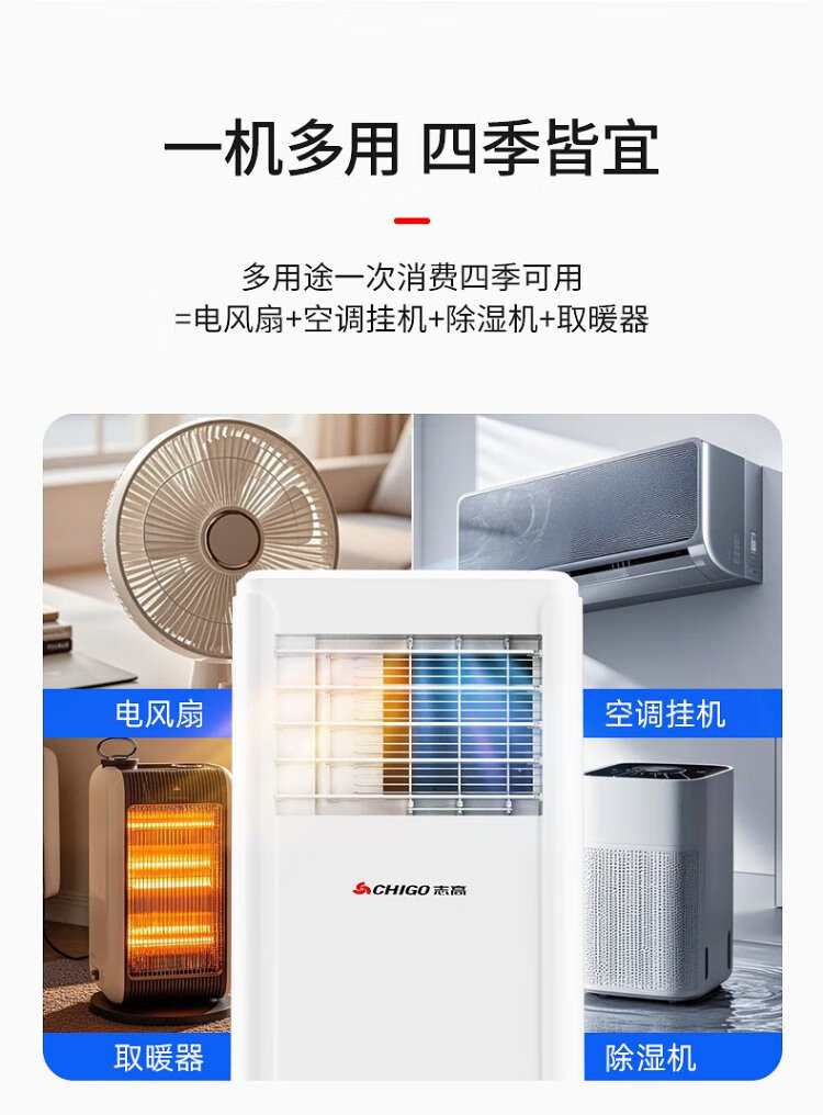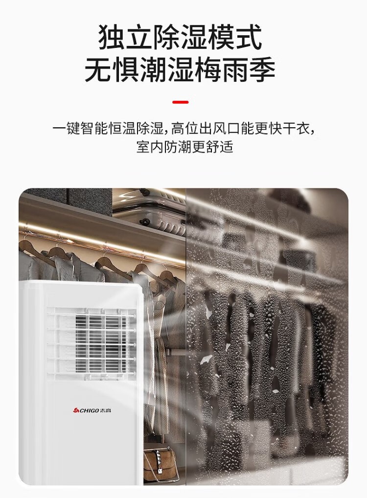 CHIGO mobile air conditioner, single heating and cooling type, all-in-one air conditioner, no outdoor unit, no drainage, no installation, small air conditioner, movable air conditioner, kitchen living room, rental room, vertical refrigeration air conditioner, small 1.5 HP single cooling-flagship exclusive