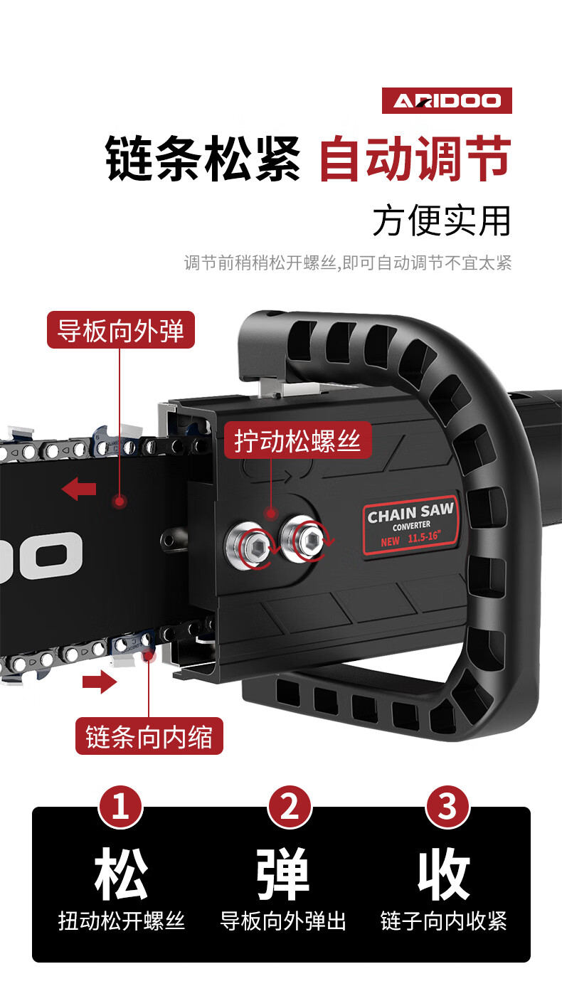 Airidun German industrial-grade angle grinder modified electric chain saw, electric saw, logging saw, household multi-functional handheld woodworking electric saw with 8th generation bracket (one-piece installation-free) + 2 chains (no angle grinder)