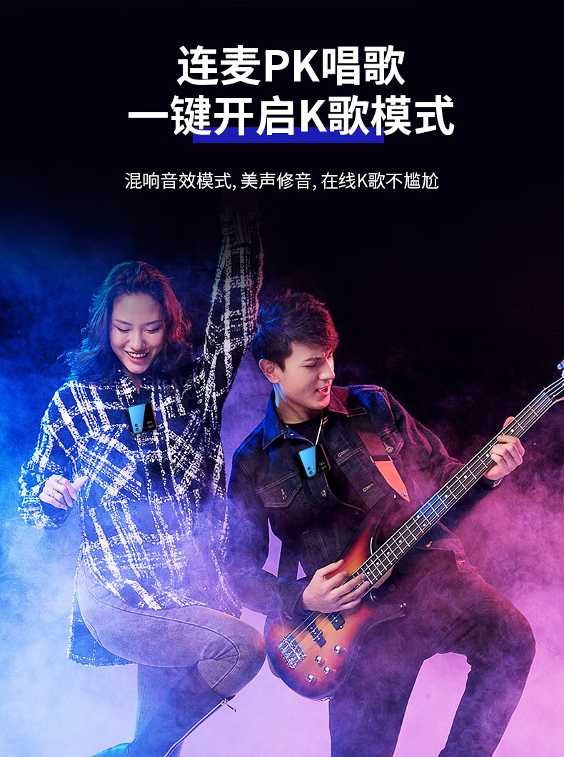 Lightweight Era Wireless Lavalier Microphone Douyin Video Outdoor Interview Singing Recording Little Bee Radio SLR Camera Mobile Phone Universal Bluetooth Microphone Live Broadcast Sound Card Dubbing Equipment One to One Single Version丨Noise Reduction + Reverb Accompaniment + Monitoring Apple/Android