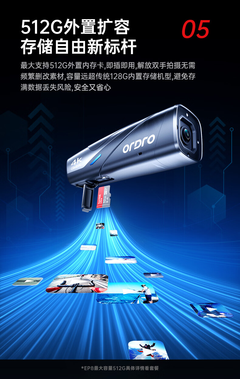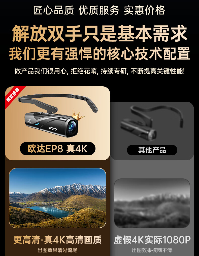 Oda 26 top sports camera丨First-person perspective shooting EP8 smart head-mounted camera thumb camera 4K portable fishing live camera law enforcement recorder Store manager recommendation EP8 standard + 256G speed card + remote control