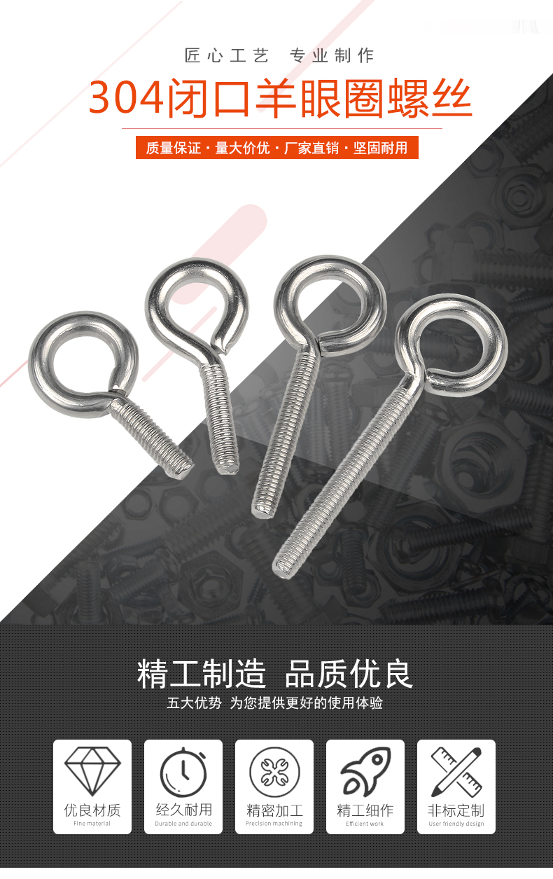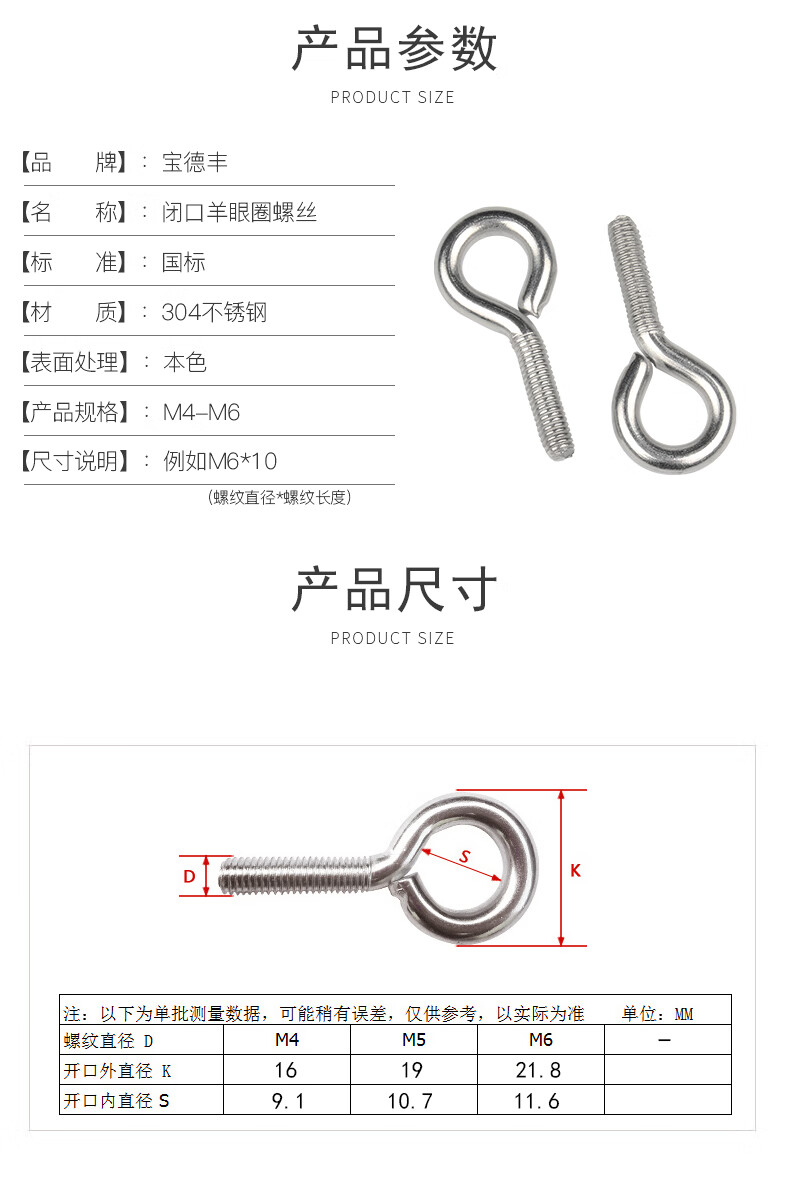 Baodefeng 304 stainless steel sheep eye screws with ring hook ring bolt nut closed ring screw M4M5M6M8M10 M3x25 10 pieces
