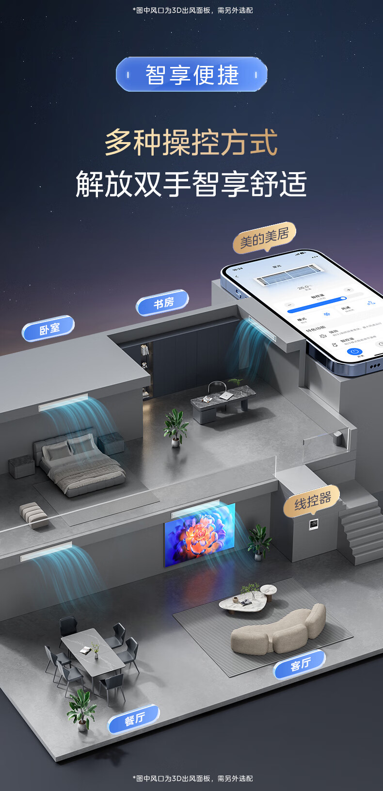 Midea central air conditioner one to three one to four/five multi-online 5 HP full DC frequency conversion Starlight third generation first-level energy efficiency embedded home living room bedroom trade-in Starlight 5 HP first-level energy efficiency 120 one-to-three package installation