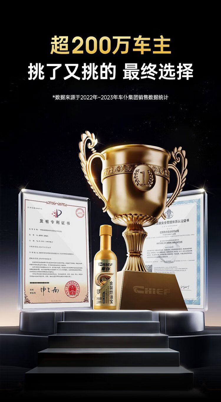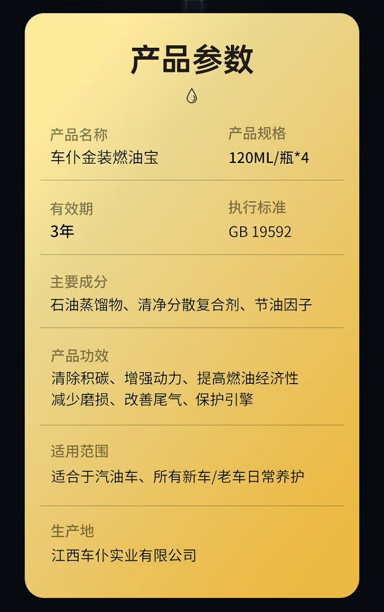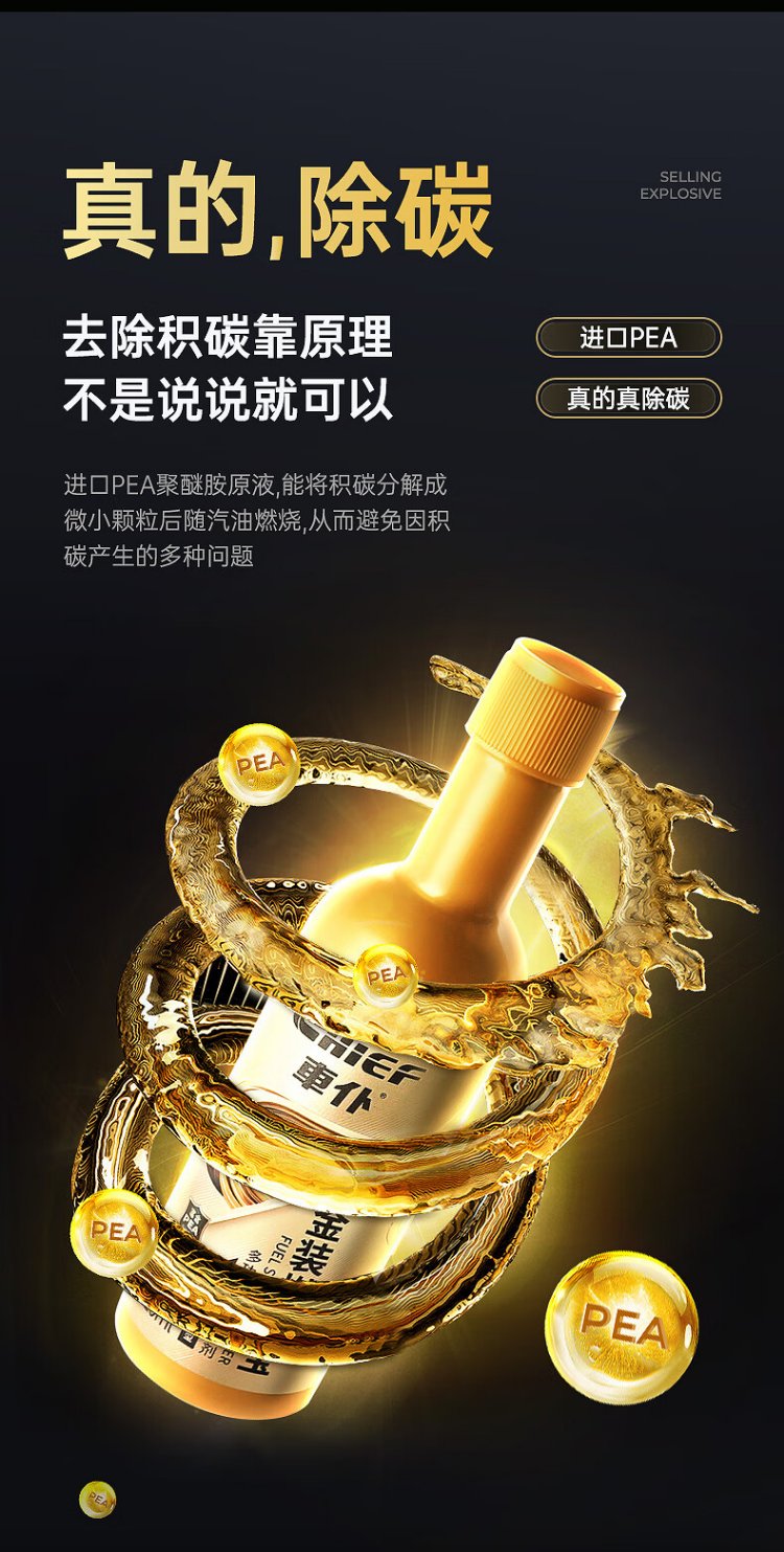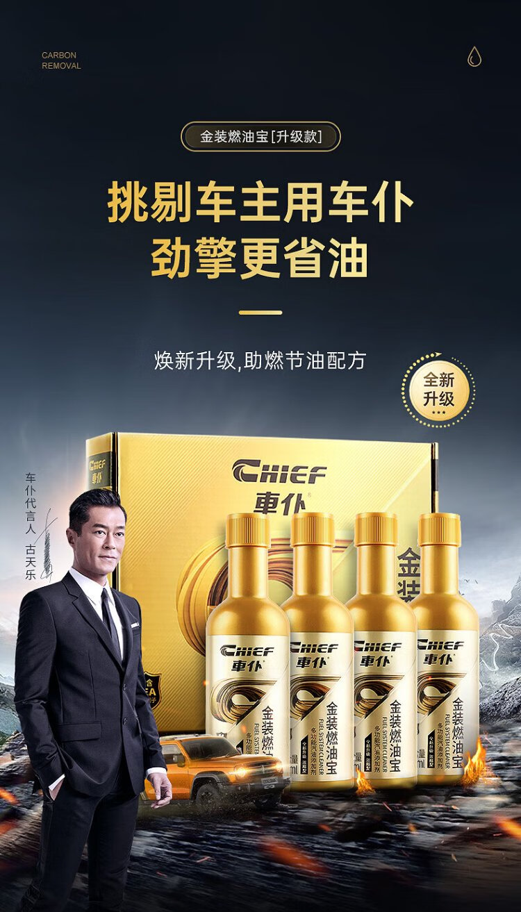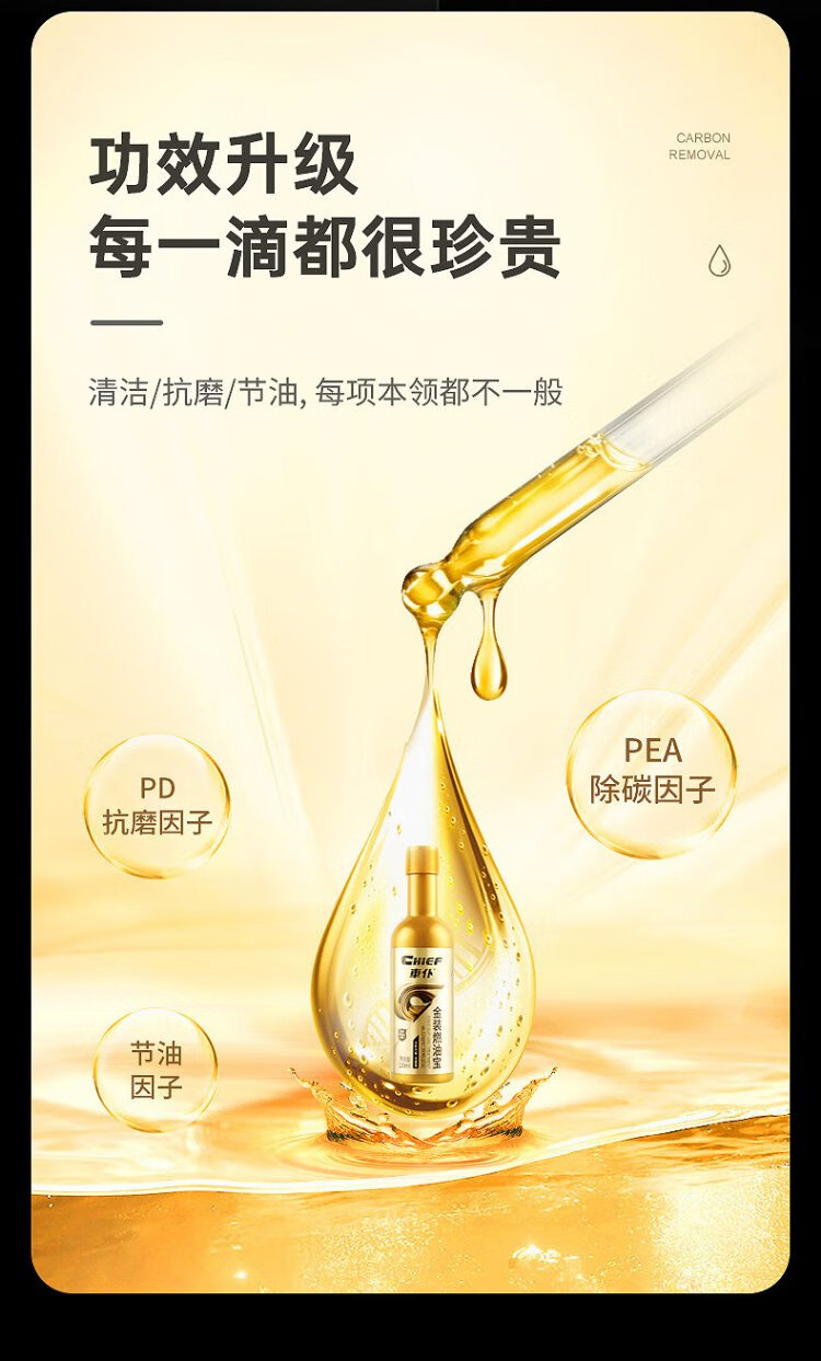 CHIEF CHIEF Gold Fuel Treasure Removes Carbon Deposits, Gasoline Fuel Additive and Fuel Saving Agent Four-in-One Carbon Removal King 4 Gold Packs + Liquid Gold