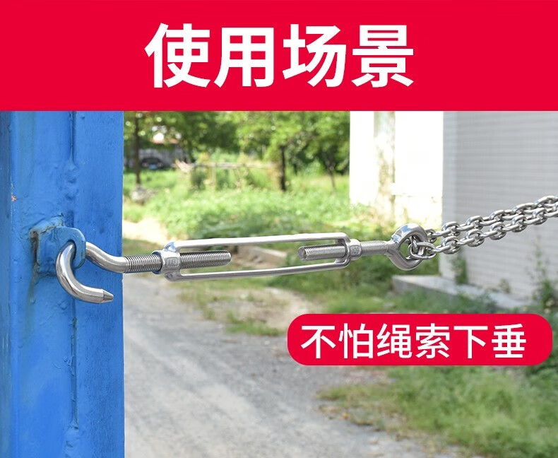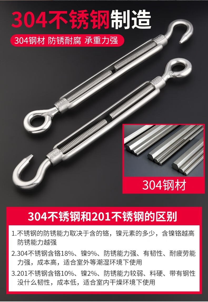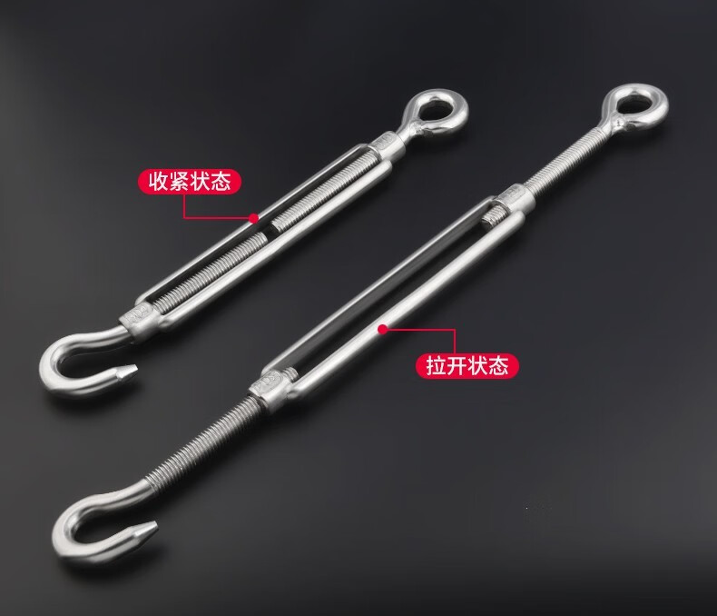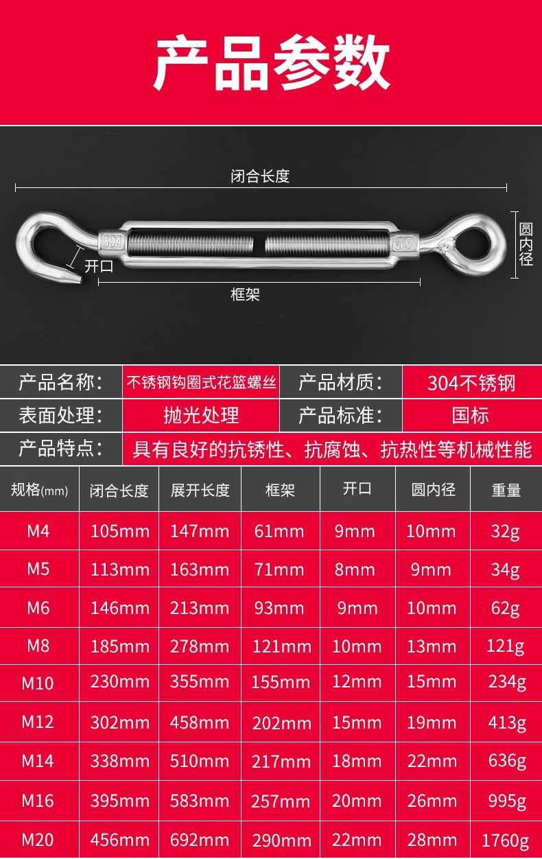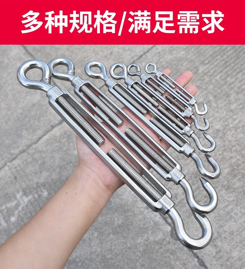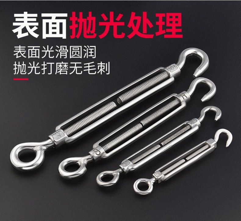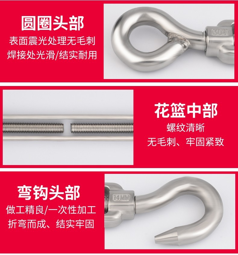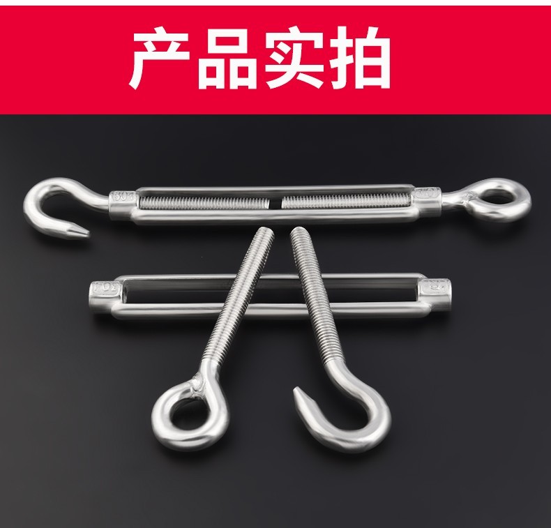 Baolian 304 stainless steel flower basket screw, wire rope tightening screw tensioner, rope tightener, wire tightener, turnbuckle bolt, stainless steel M10 (hook type)