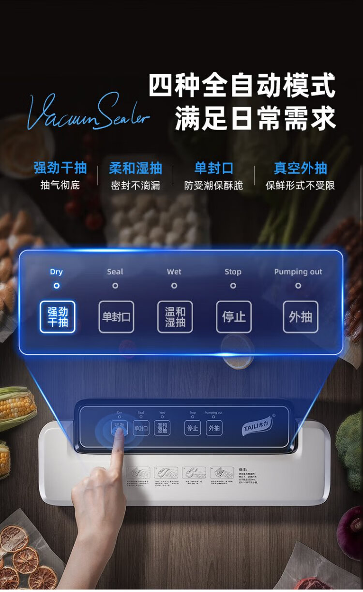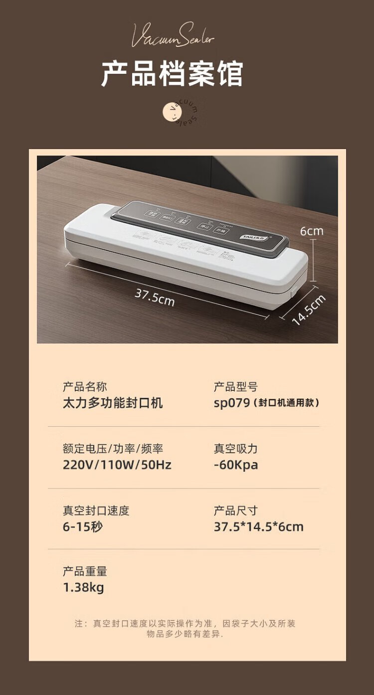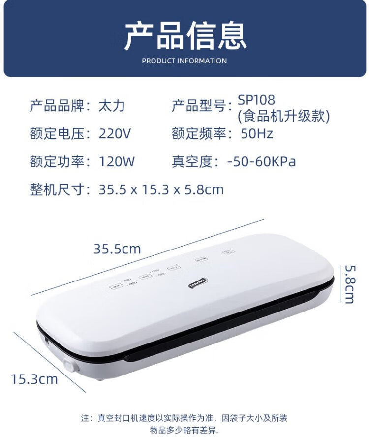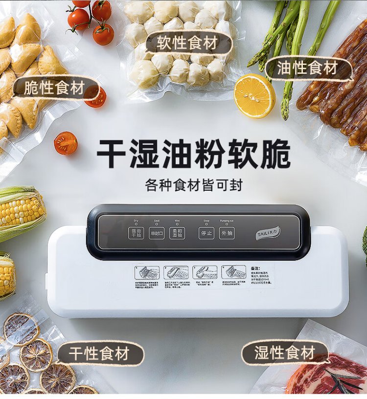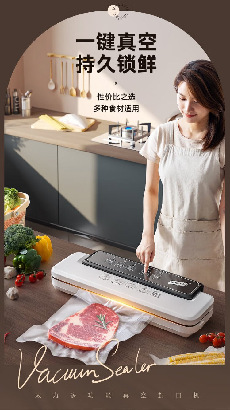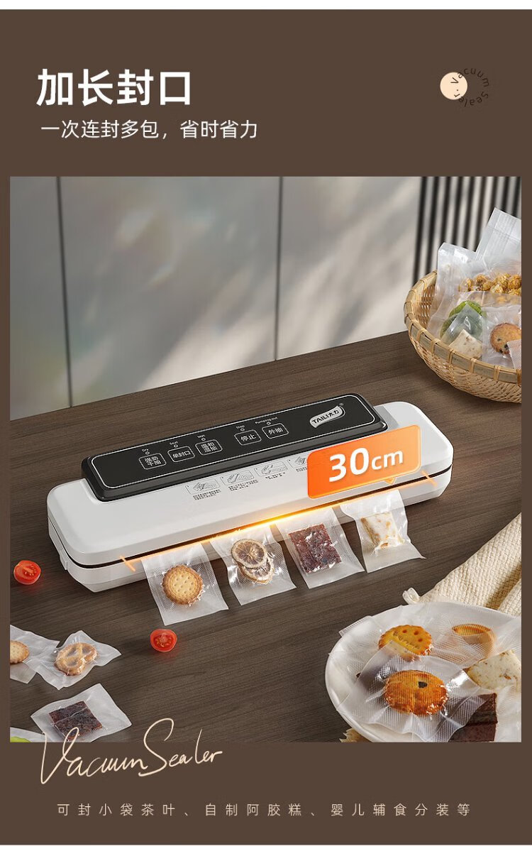 Taili vacuum packaging machine sealing machine household commercial fully automatic fresh-keeping food plastic sealing machine packer Tuen New Year goods artifact 1 roll 28cm*500cm