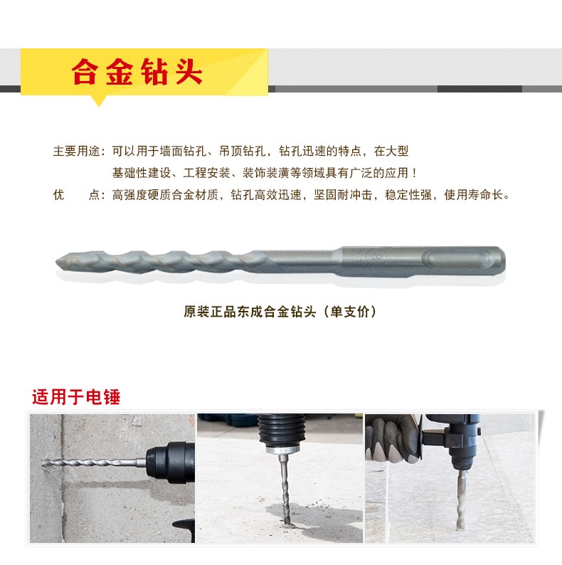 Dongcheng alloy drill bit, round shank two-pit and two-slot alloy drill bit, four-pit electric hammer alloy drill bit, electric hammer impact drill bit 6x110mm