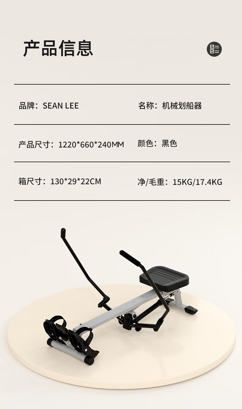 SEAN LEE super fat-burning simulation sculls 12-speed resistance home fitness equipment hydraulic exercise back weight loss aerobic rowing machine silver hydraulic 12-speed resistance