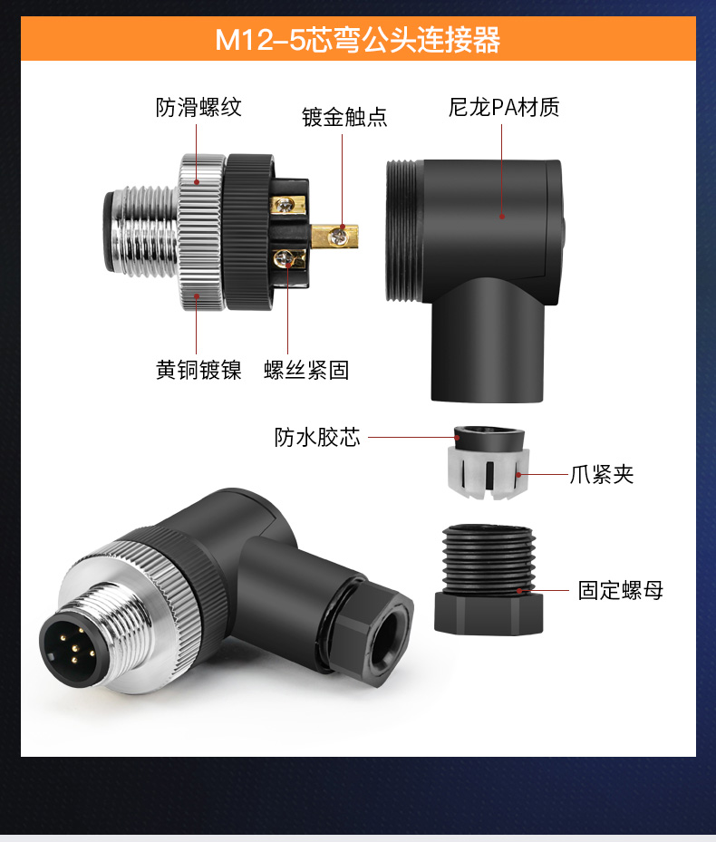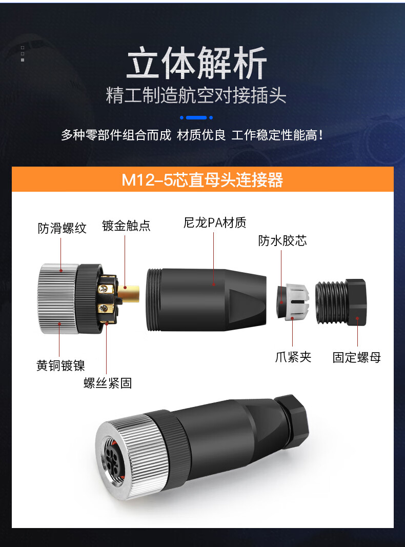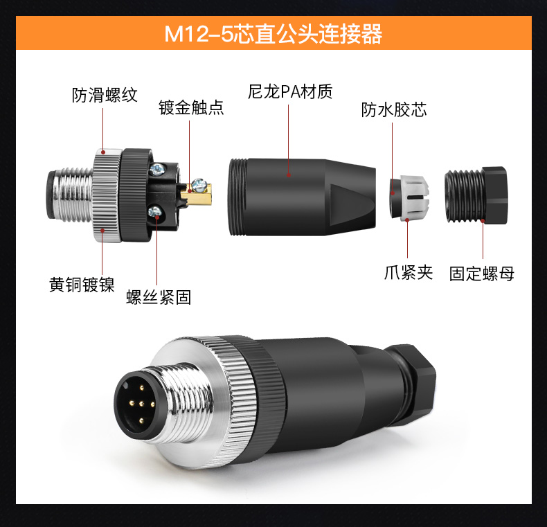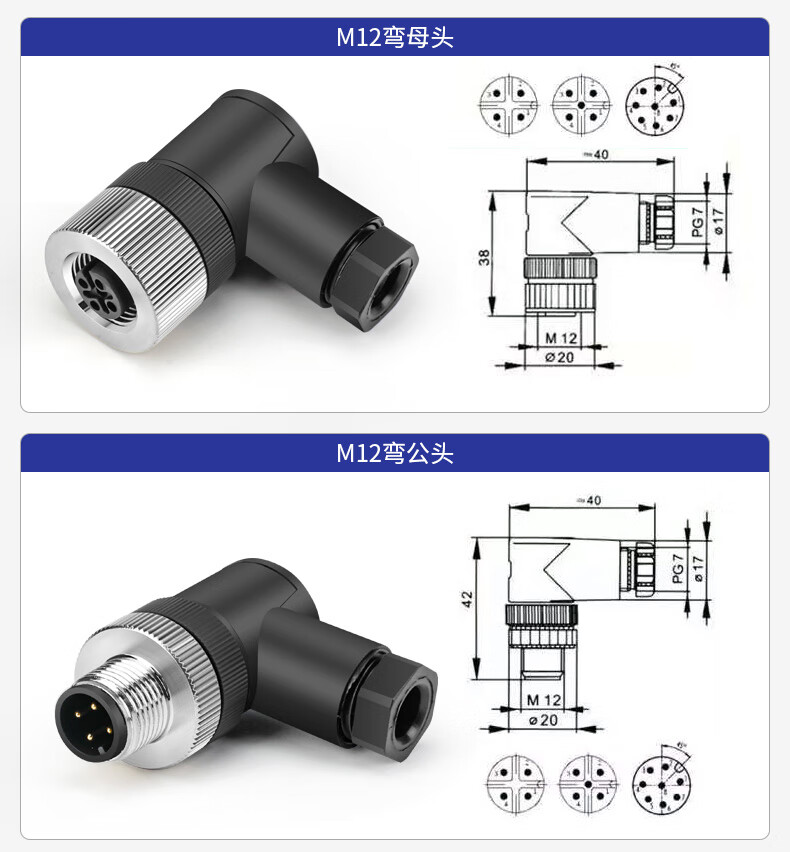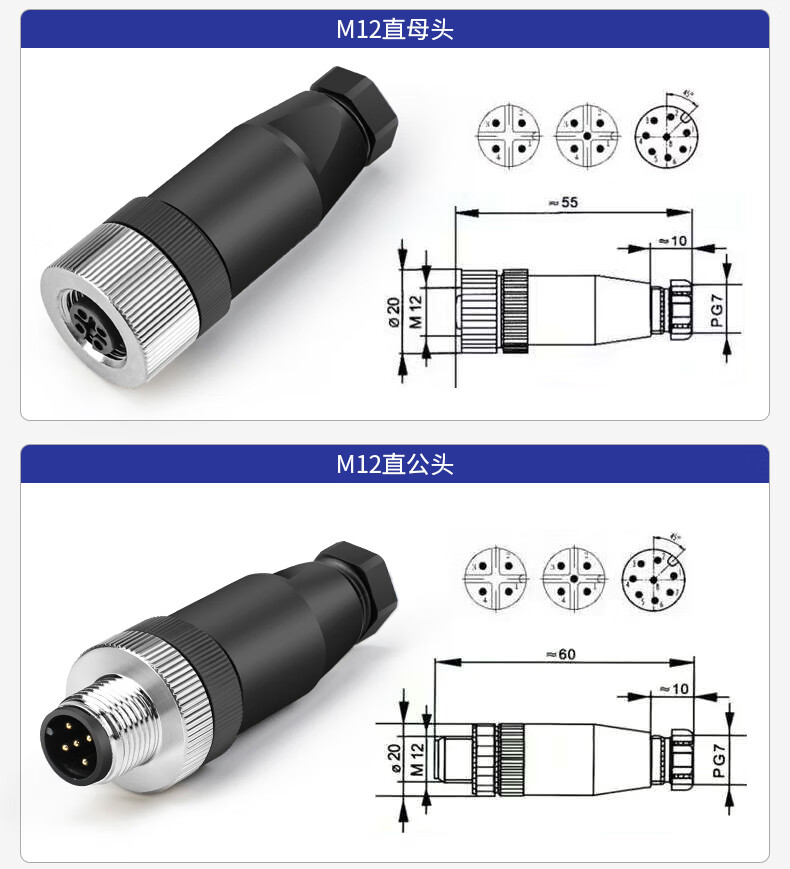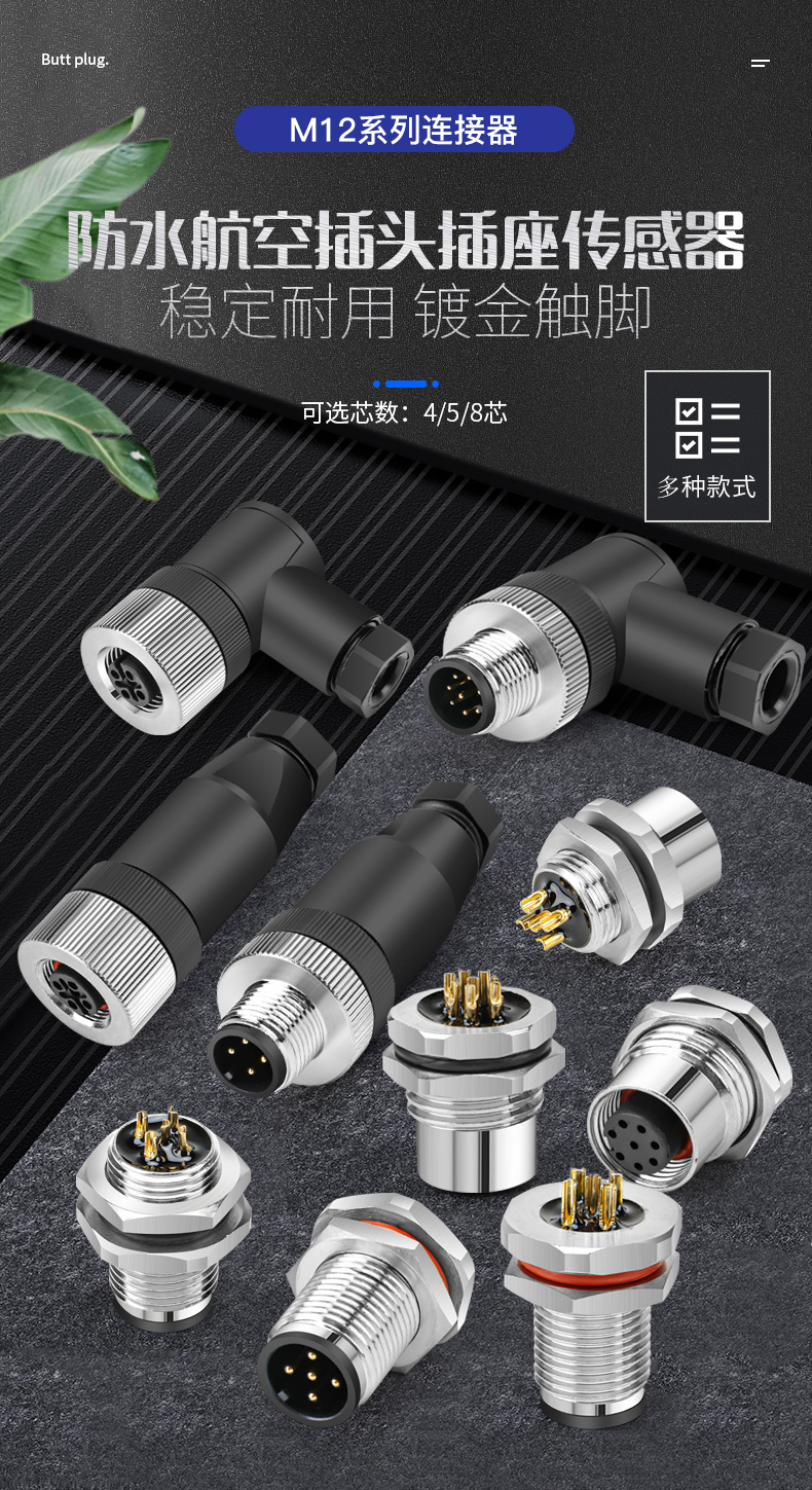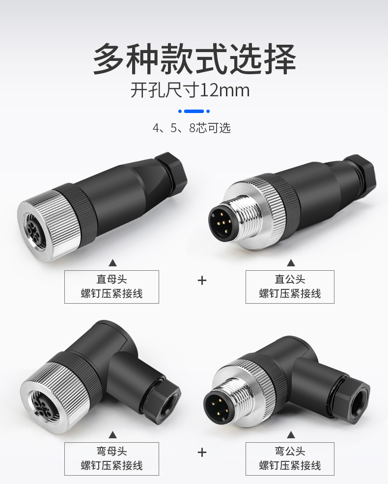 M12 waterproof aviation plug 4 5 8-core cable sensor bent straight male screw crimp connector female M12-4-core straight female