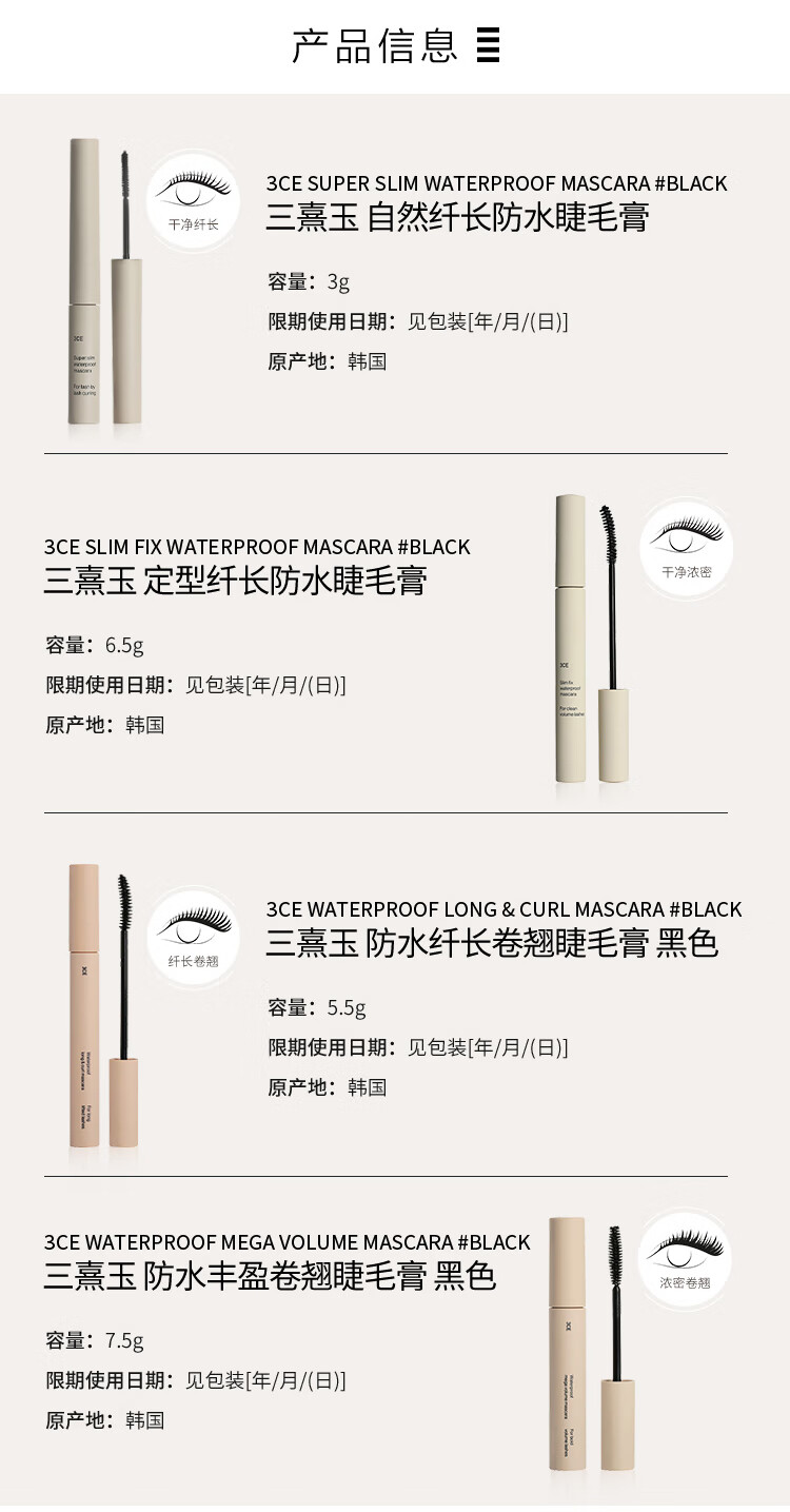 3ce Sanxiyu Mascara Natural Slim Waterproof Mascara #Black