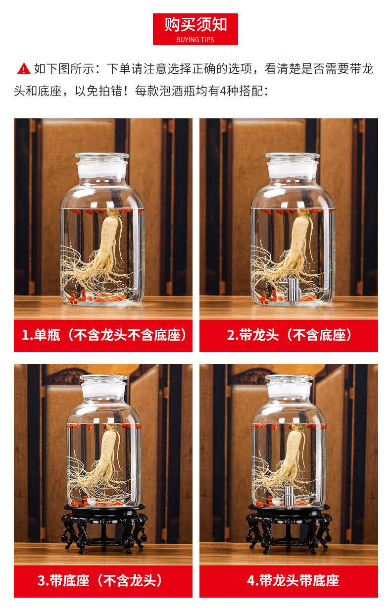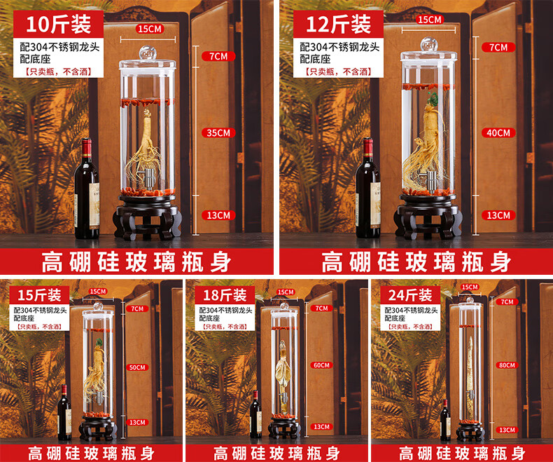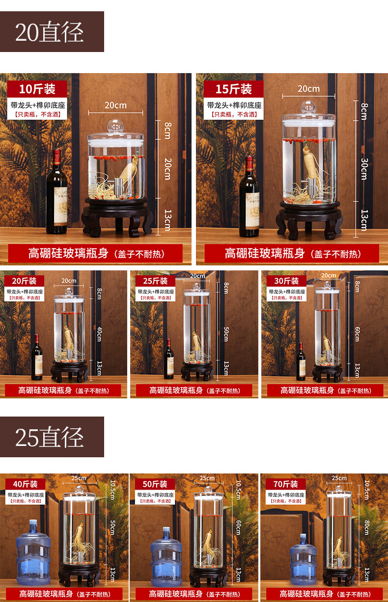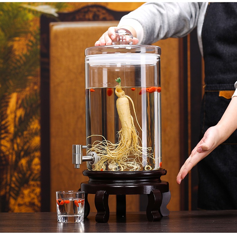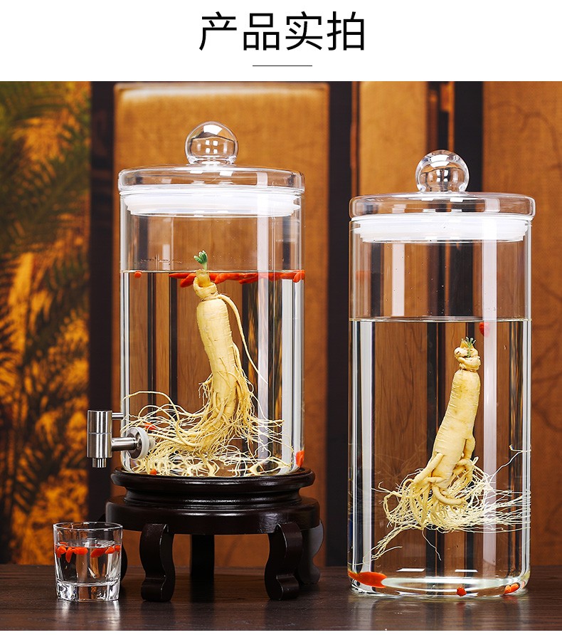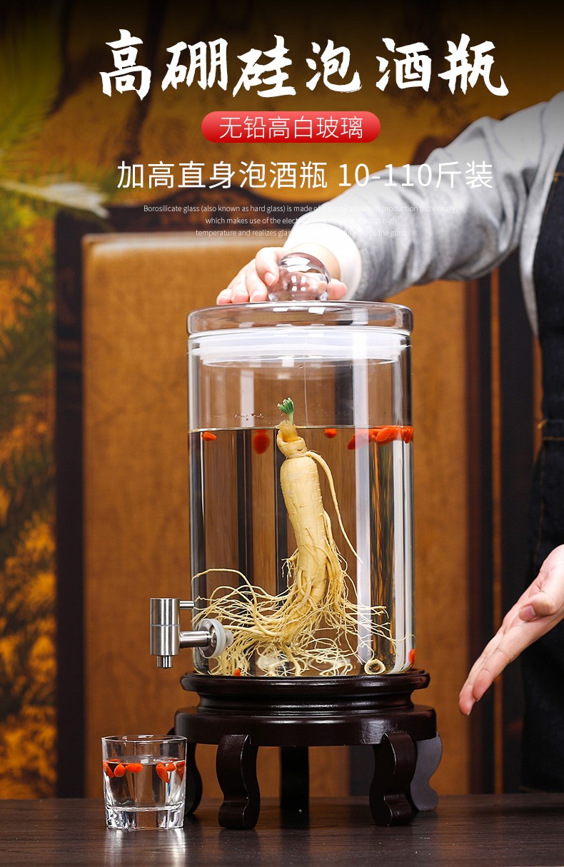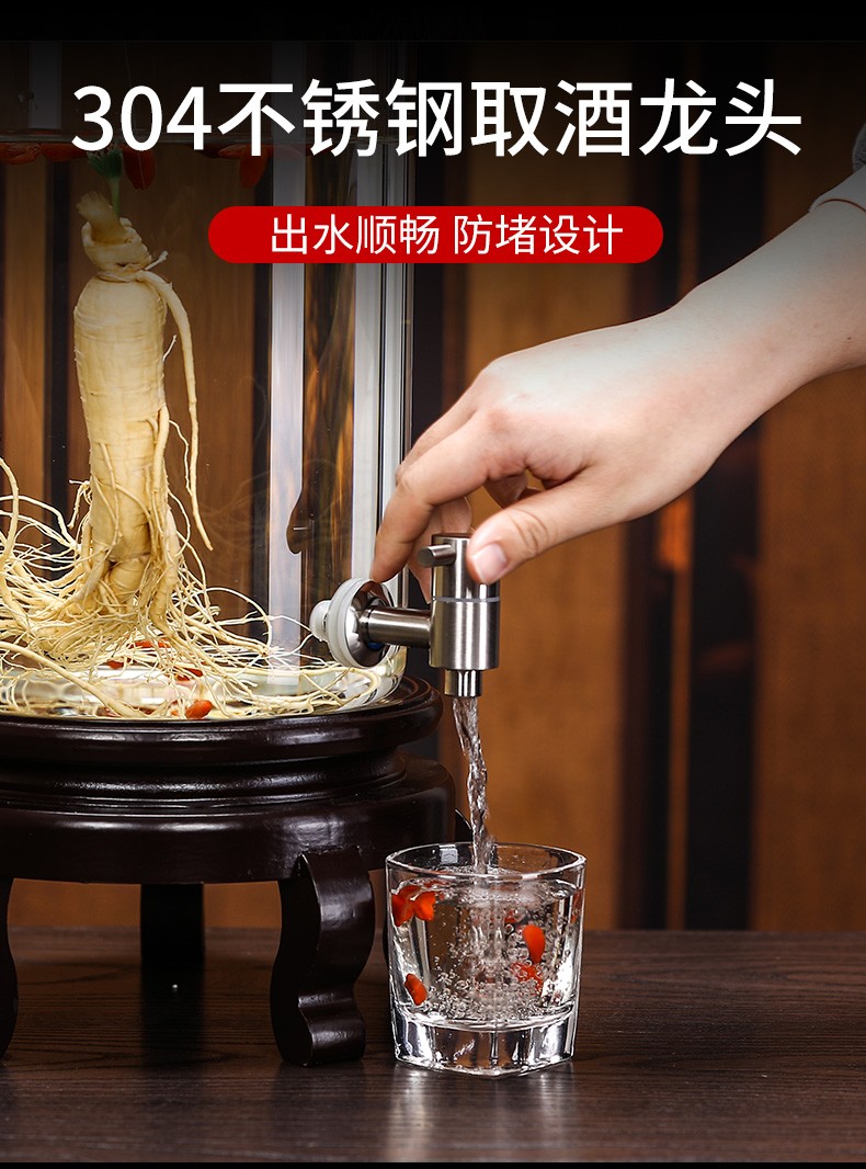 Shandetang high temperature resistant thickened glass wine bottle high borosilicate glass special wine container household large diameter wine jar wine jar 15 catties + faucet + mortise and tenon seat heat resistant and thickened