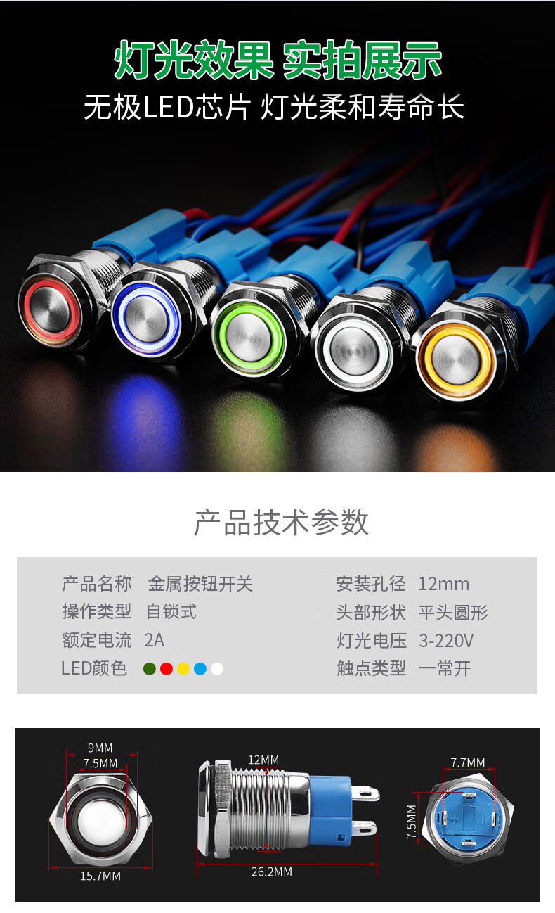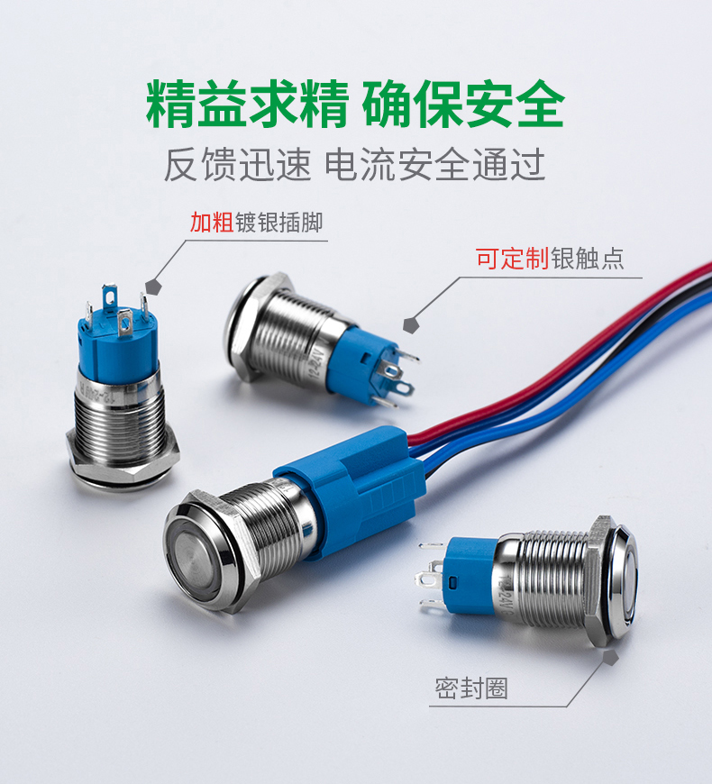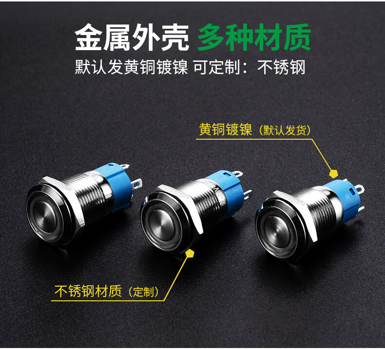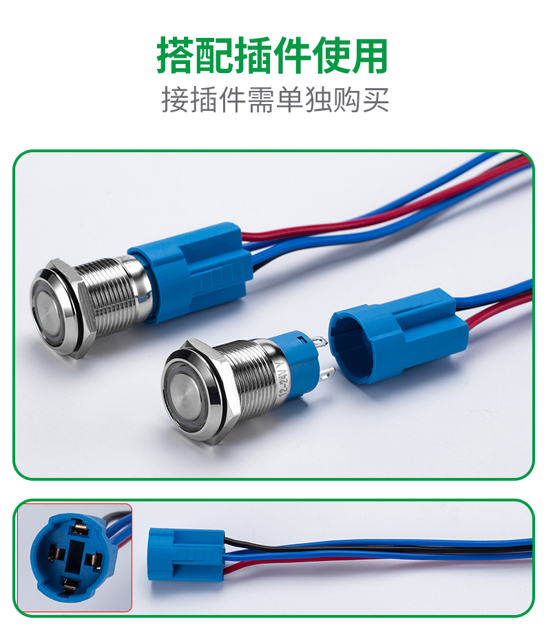 Suowei 12MM waterproof metal button switch start stop with light 6V12V24V220V self-restoring self-locking round car modified high head power switch button 12-24V self-locking blue ring light with tail plug