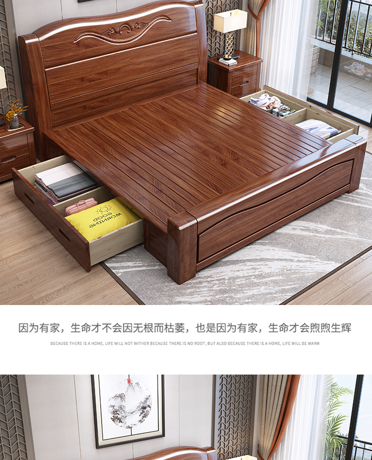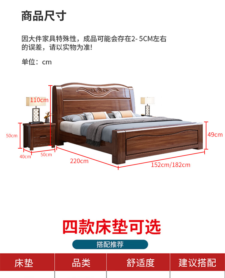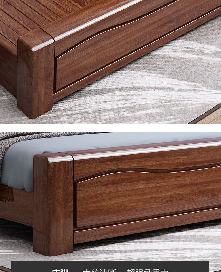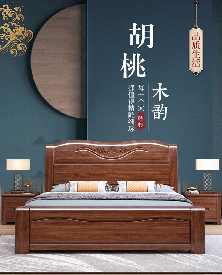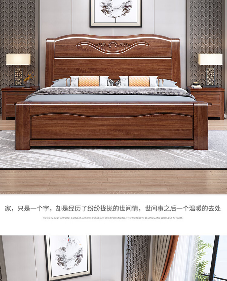 Maiyayue Solid Wood Bed Walnut Solid Wood Bed Chinese Double Bed Simple Home Master Bedroom Marriage Bed Solid Wood Large Bed Walnut Bed + 20cm Latex Spring Mattress 1500*2000mm Frame Model