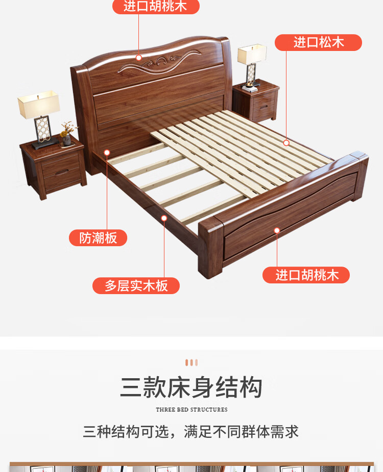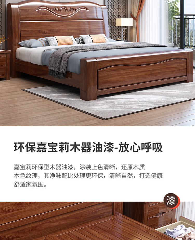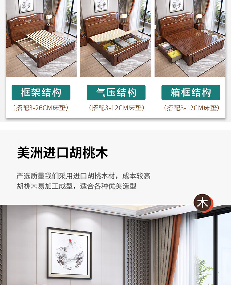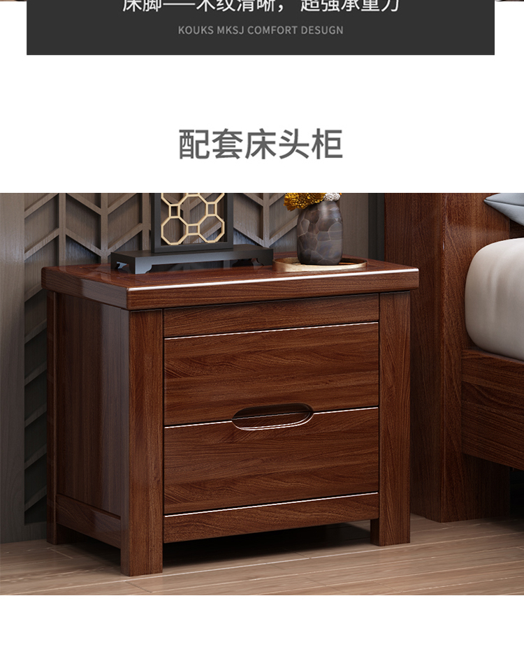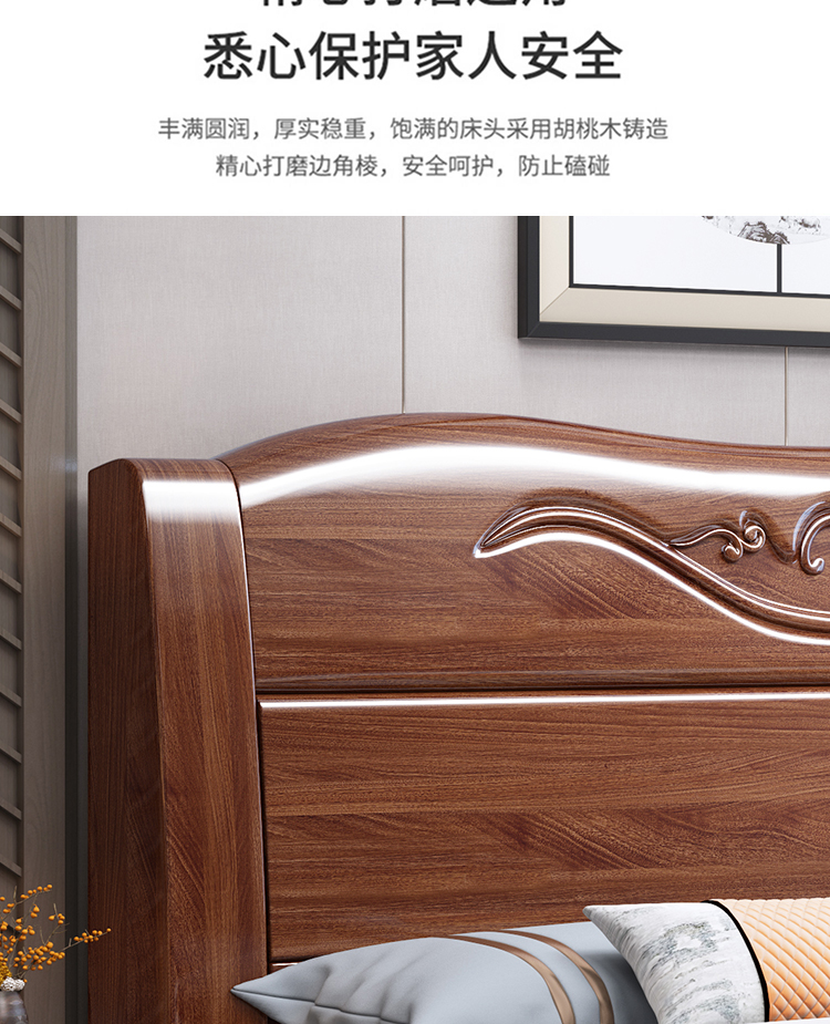 Maiyayue Solid Wood Bed Walnut Solid Wood Bed Chinese Double Bed Simple Home Master Bedroom Marriage Bed Solid Wood Large Bed Walnut Bed + 20cm Latex Spring Mattress 1500*2000mm Frame Model