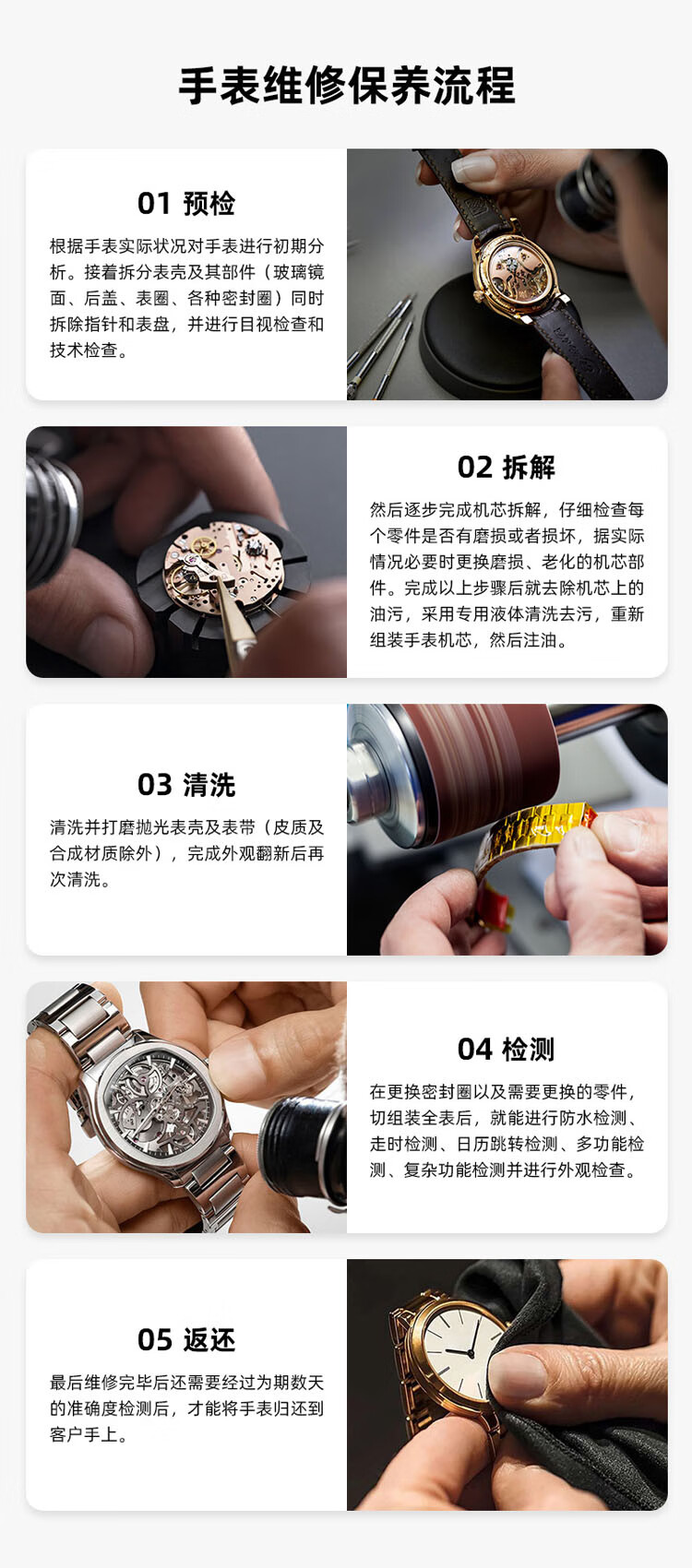 Repair of famous watch accessories, replacement of watches, movement repair, replacement of dials, straps, handles, hands, maintenance and polishing, various dials