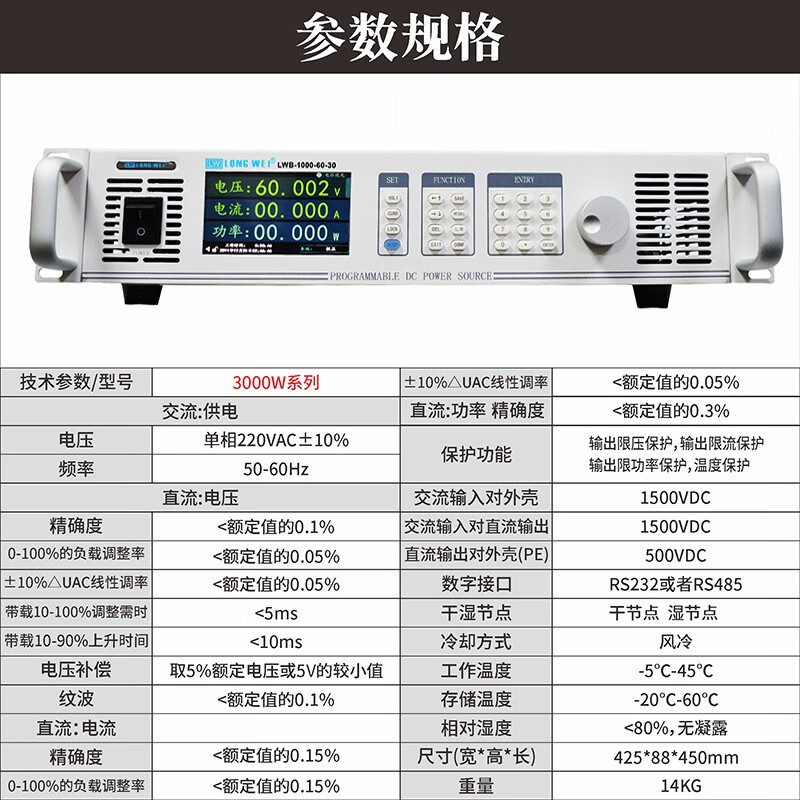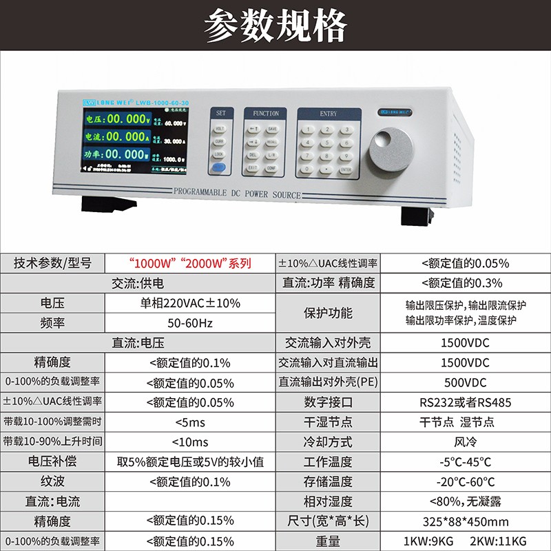 Longwei high-precision programmable adjustable DC stabilized power supply high-power 2KW aging tester 1KW LWB-1000-60-30