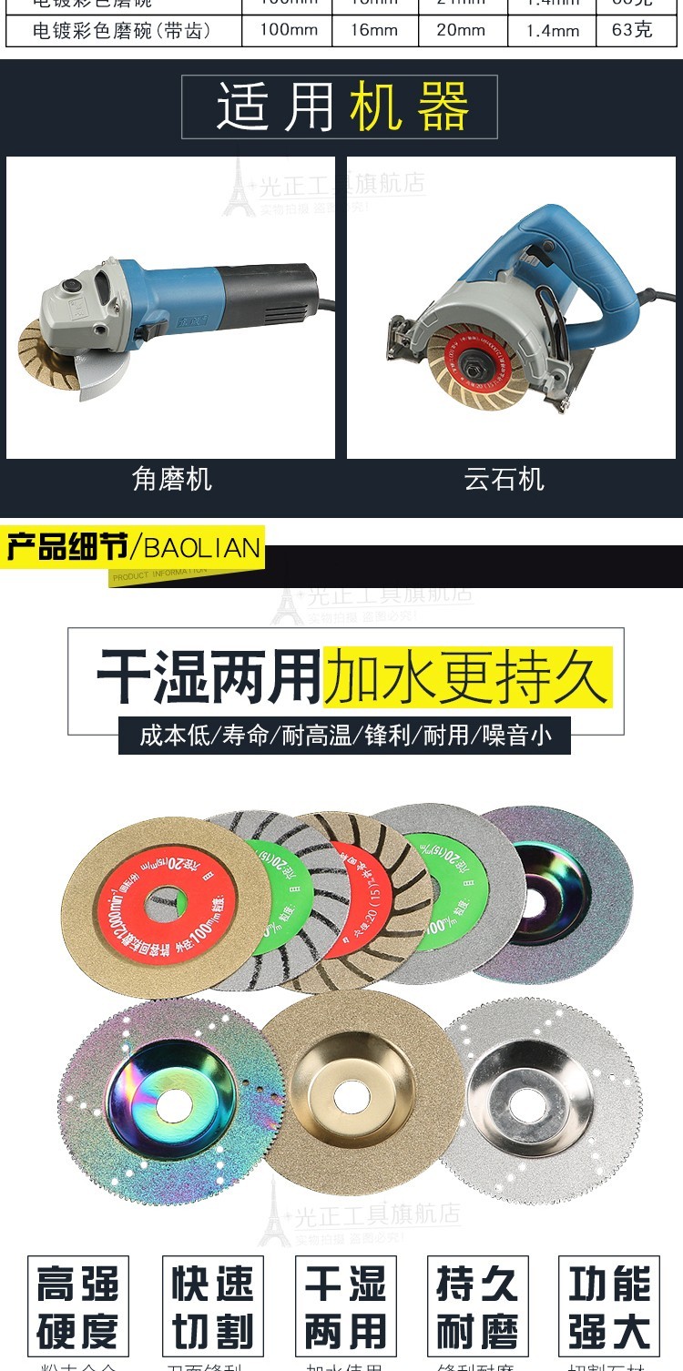 Baolian diamond cutting disc sand angle grinder marble ceramic stone glass slicing grinding disc brazing golden corrugated slicing (quality grade)