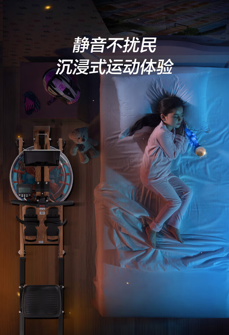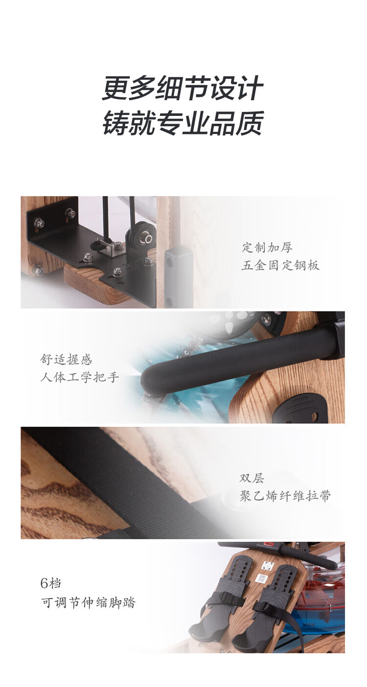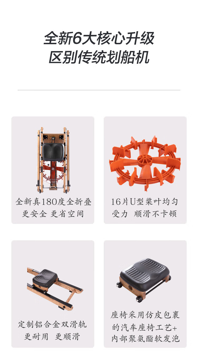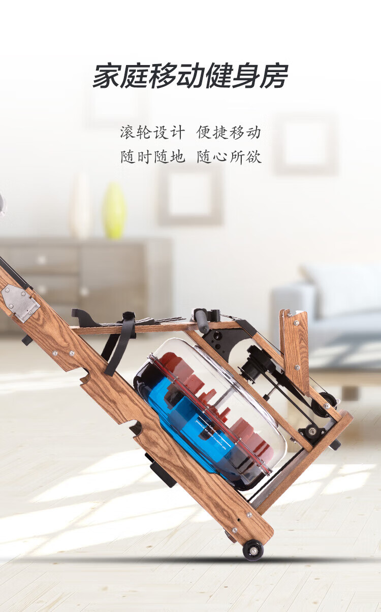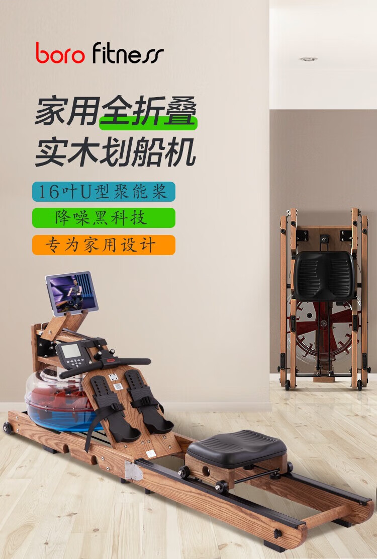 Boluo rowing machine, uniform large resistance, noise reduction, black technology, foldable smart water resistance, home aerobic fitness equipment, red oak folding model Z02 self-lubricating copper sleeve