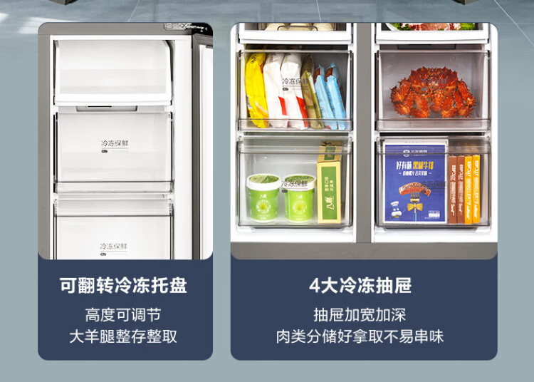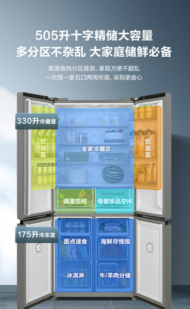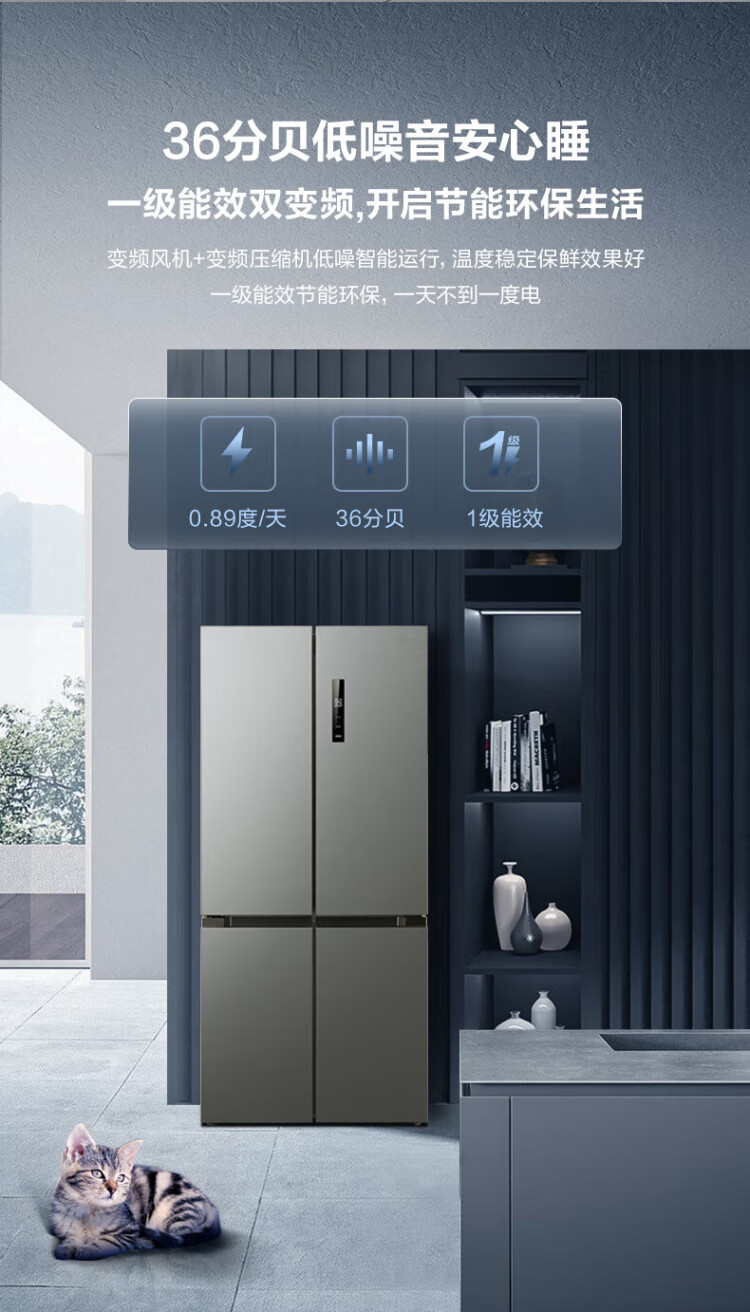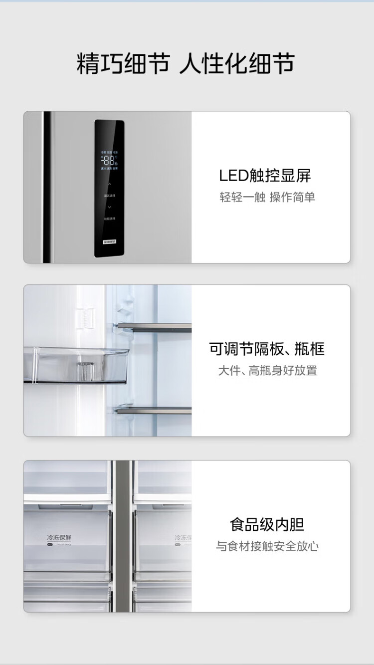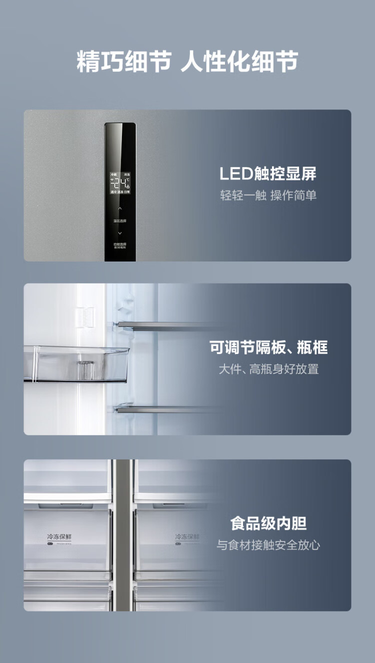 Midea 508 refrigerator 531 cross-door multi-door dual system dual cycle odor-free first-class energy efficiency air-cooled frost-free large capacity household four-door refrigerator subsidy 15% dual system MR-531WSPZE Sky Gray