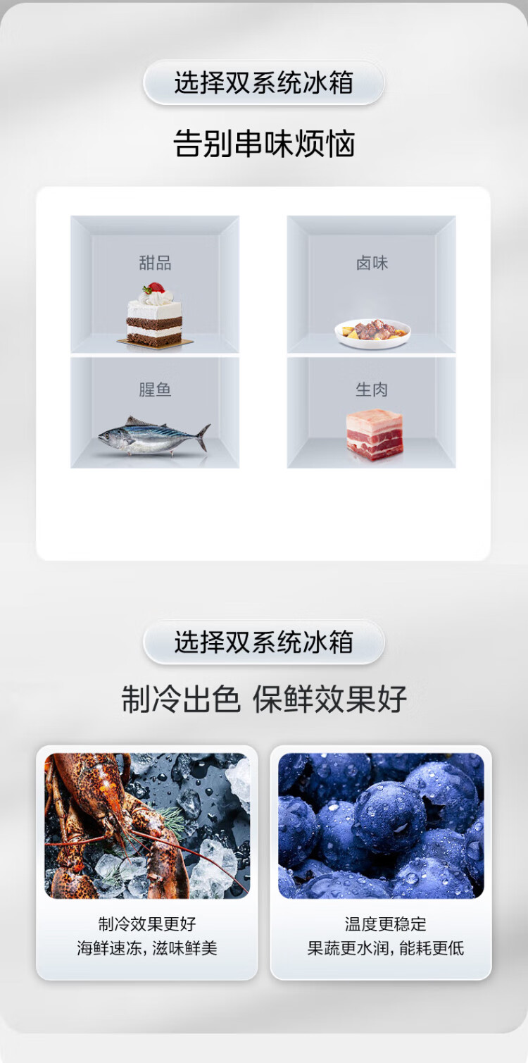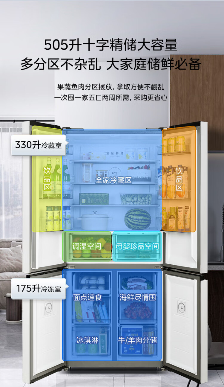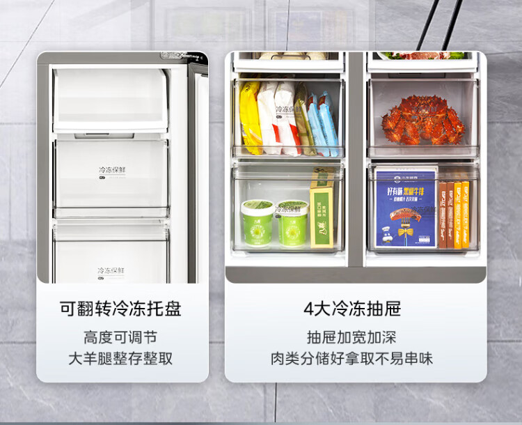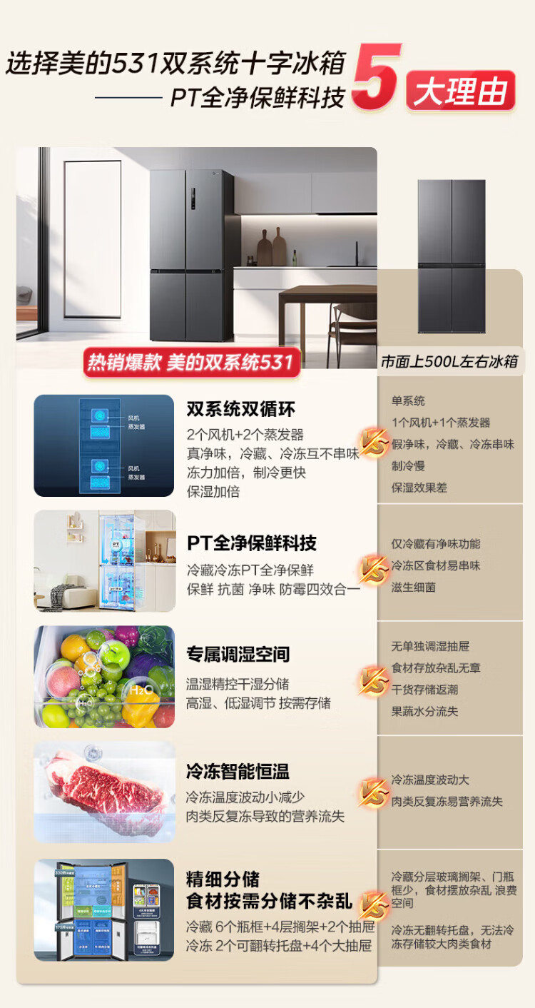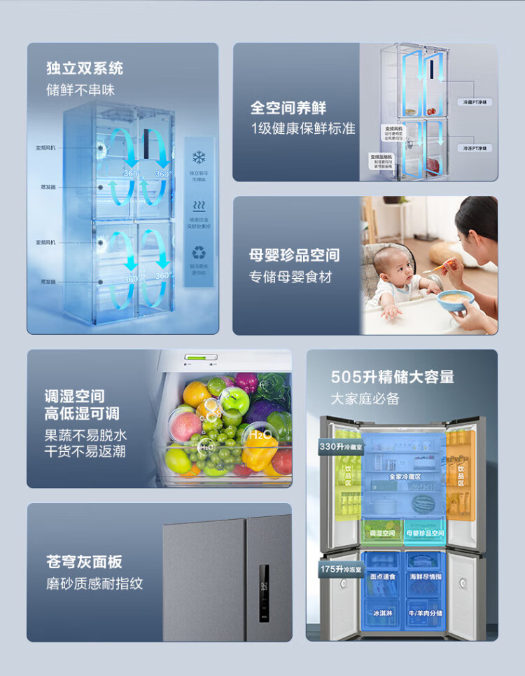 Midea 508 refrigerator 531 cross-door multi-door dual system dual cycle odor-free first-class energy efficiency air-cooled frost-free large capacity household four-door refrigerator subsidy 15% dual system MR-531WSPZE Sky Gray