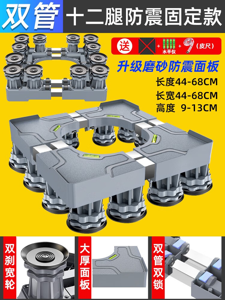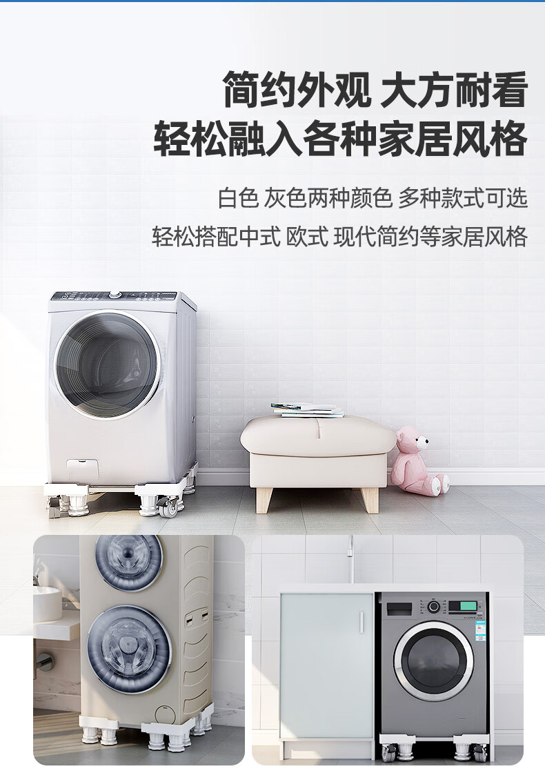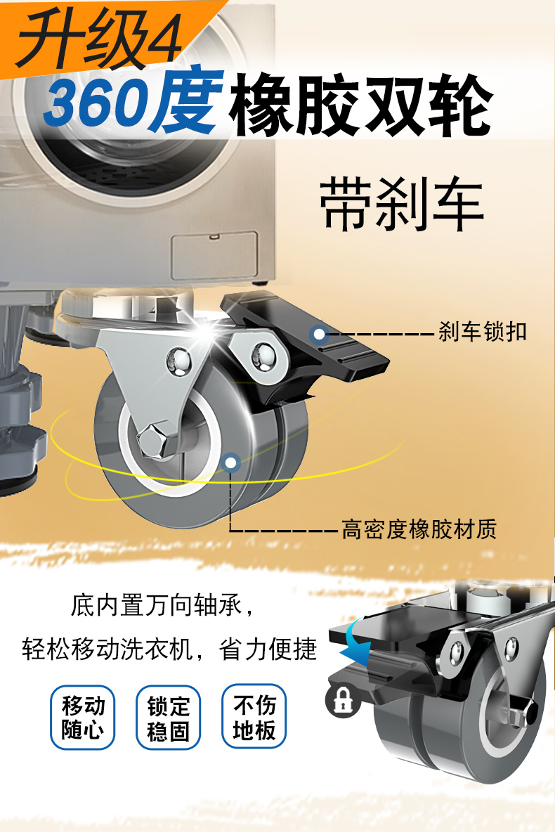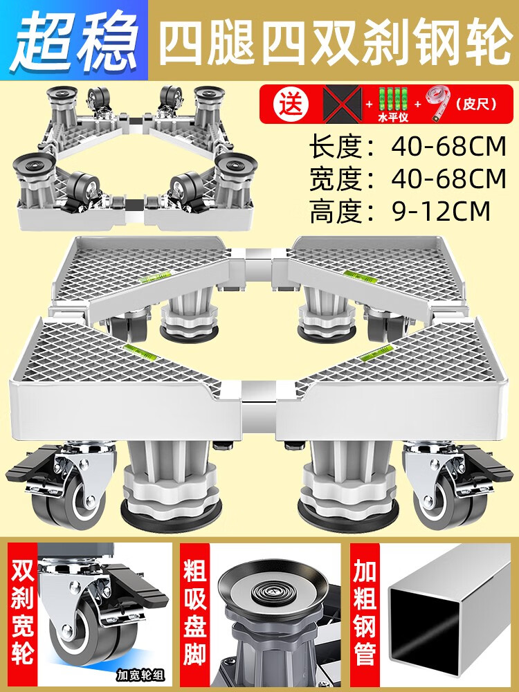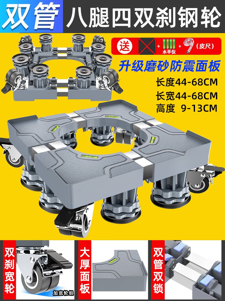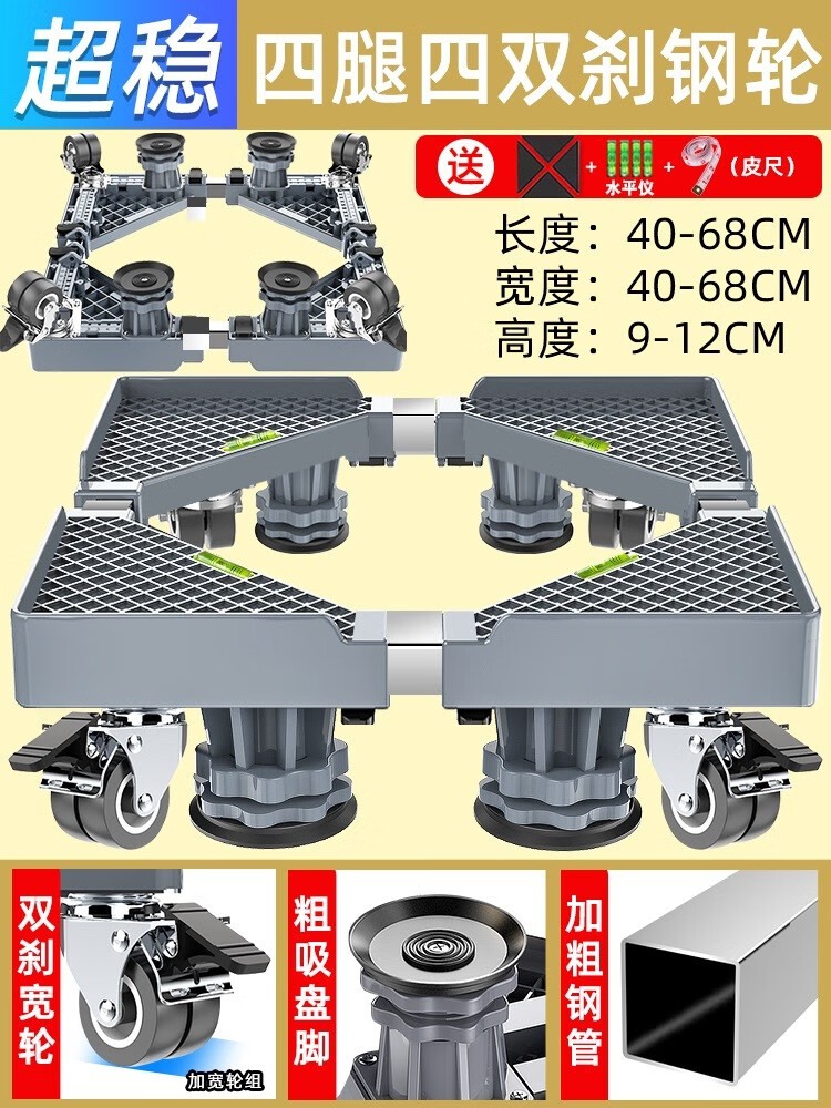 Midea universal little swan suitable for washing machine base universal storage rack Haier drum foot pad refrigerator mobile universal wheel bracket pad heighten the movement 4 feet 4 double brake wheels gray