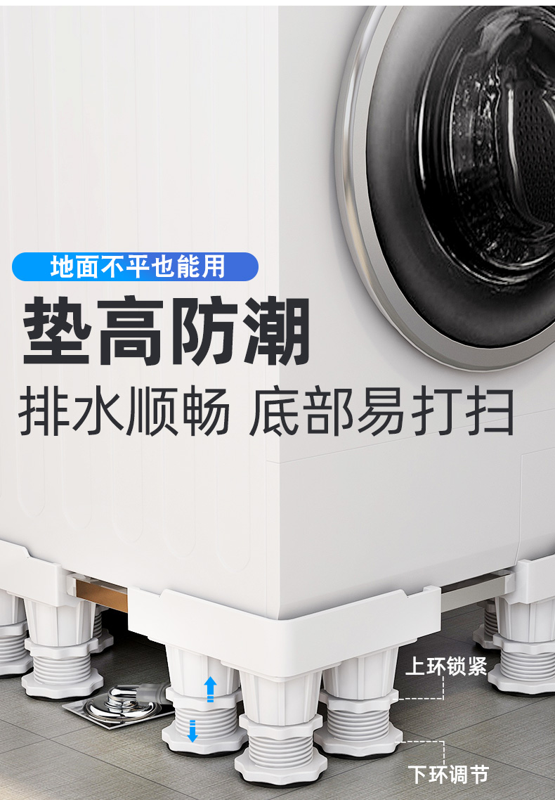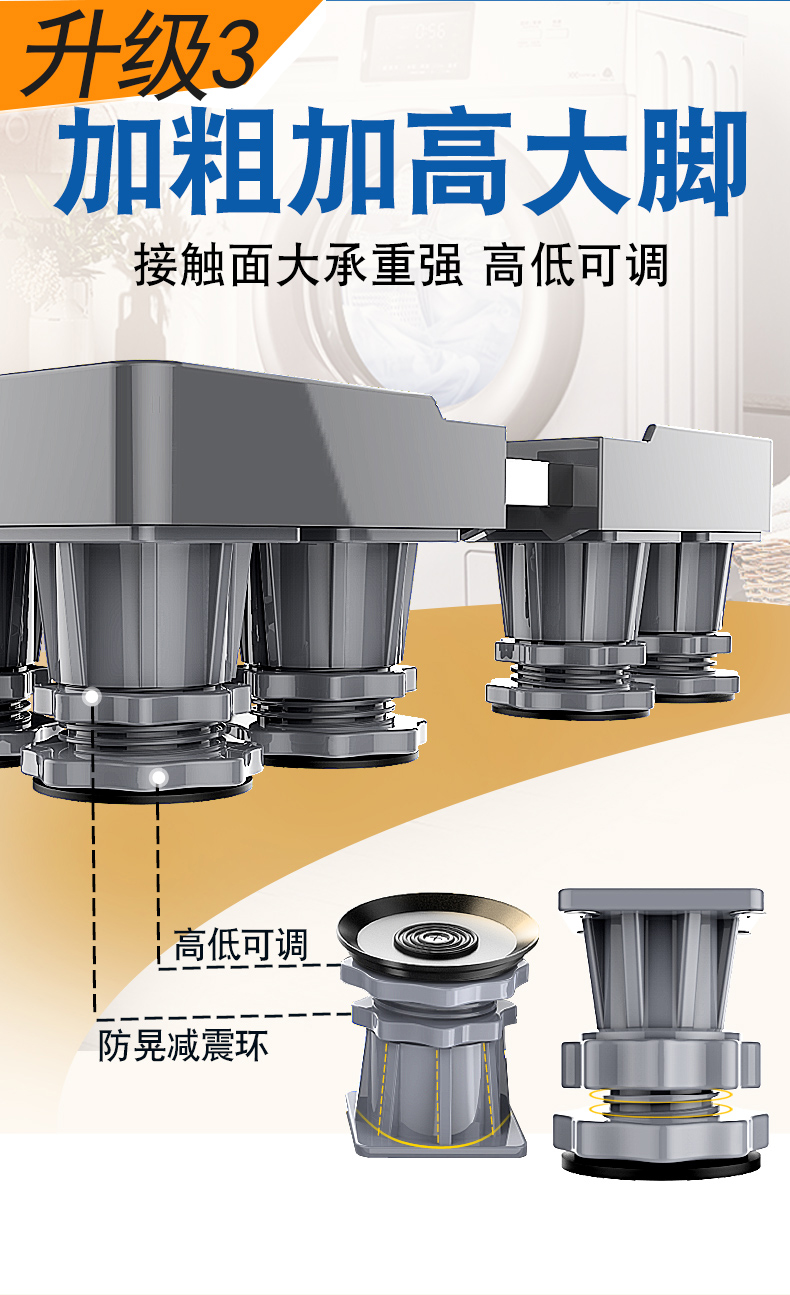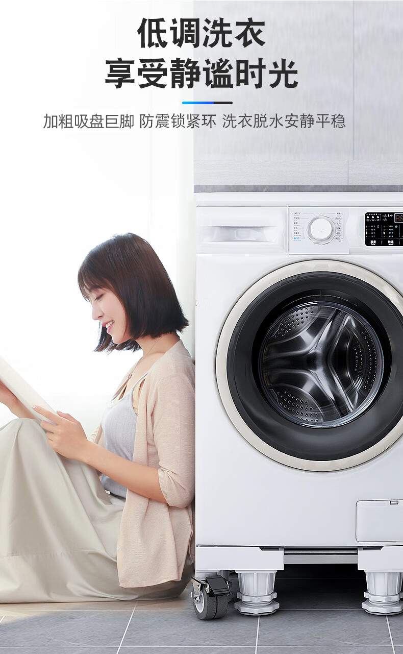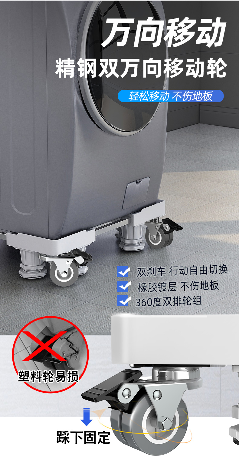 Midea universal little swan suitable for washing machine base universal storage rack Haier drum foot pad refrigerator mobile universal wheel bracket pad heighten the movement 4 feet 4 double brake wheels gray