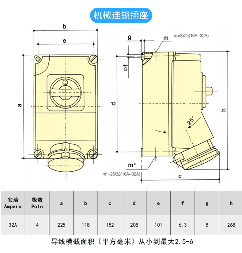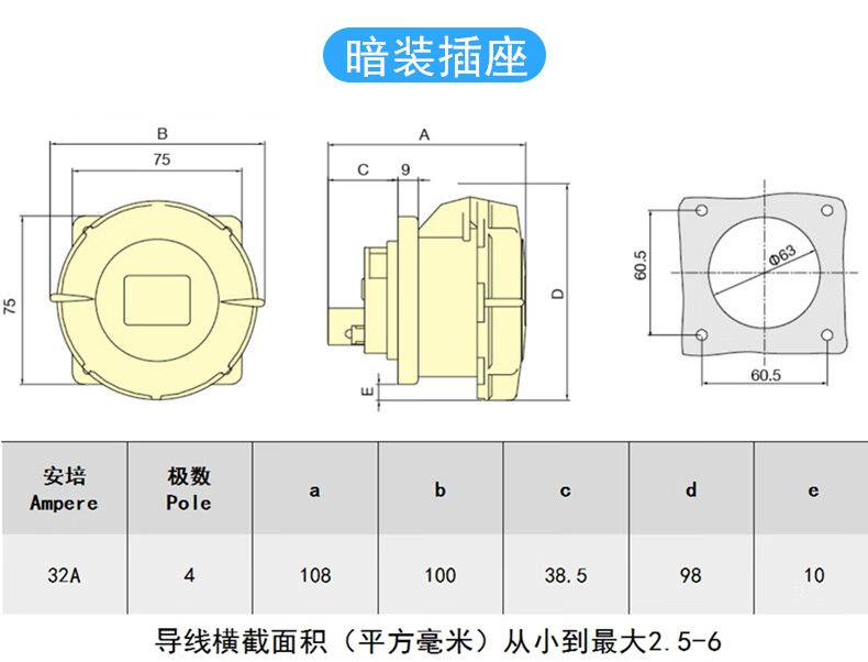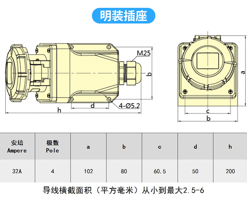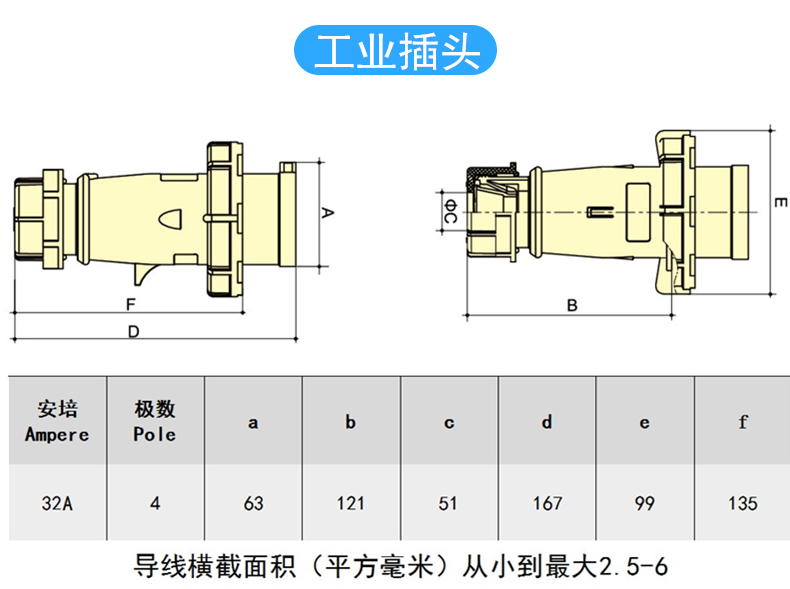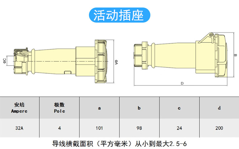 4-core 32A refrigerated container ship cold chain plug 3P+E cooling 3H generator socket docking 380-440V plug (MN3402-3)