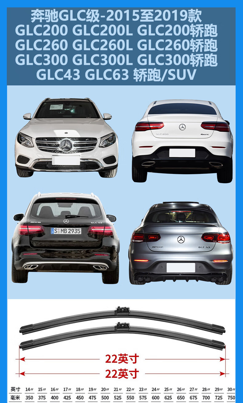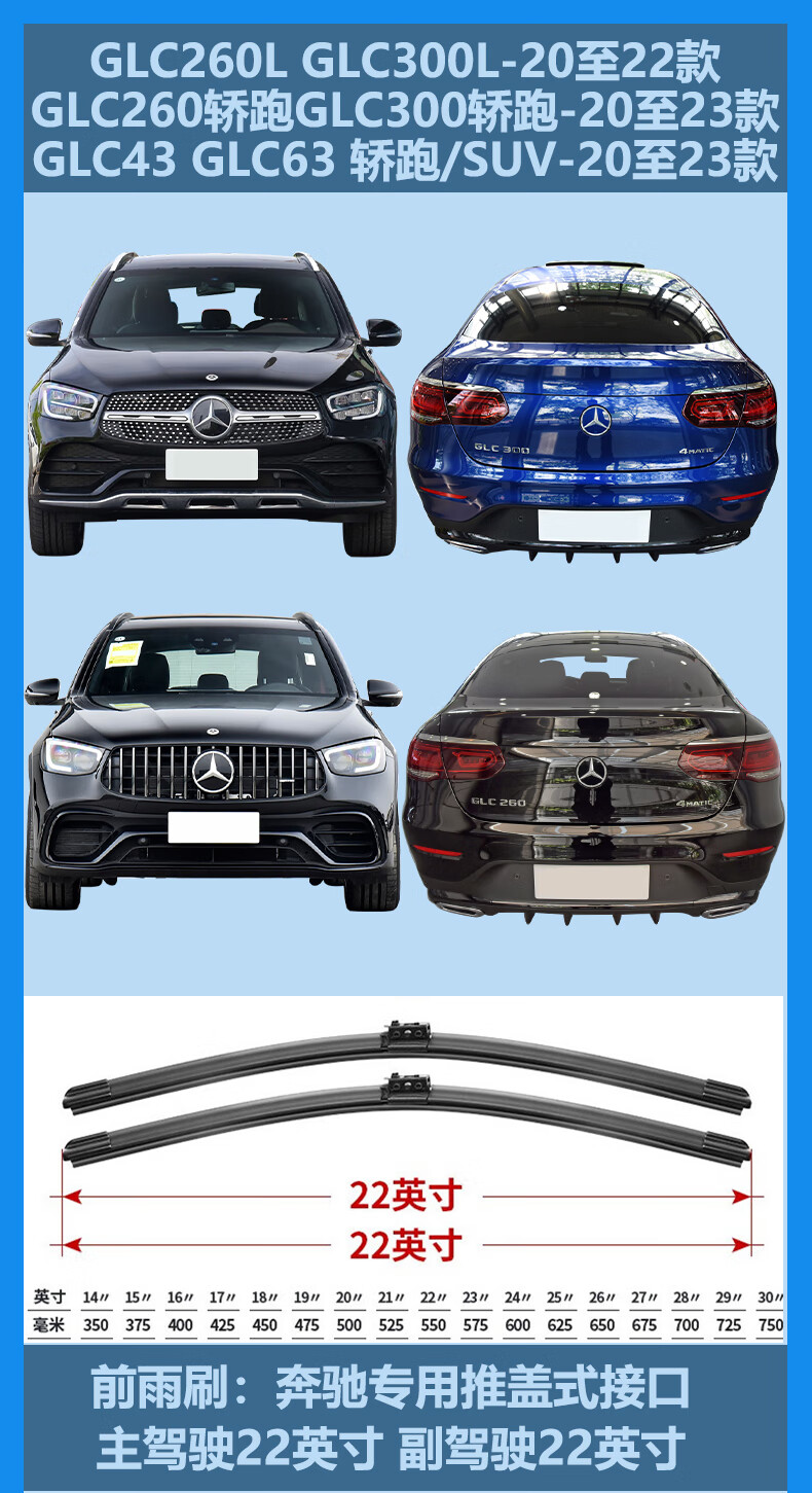 AOLEIJIE Mercedes-Benz GLC Wiper Blade GLC Coupe Original Silent Suitable for Mercedes-Benz GLC300L 20 to 22 Models Front Wiper Pair