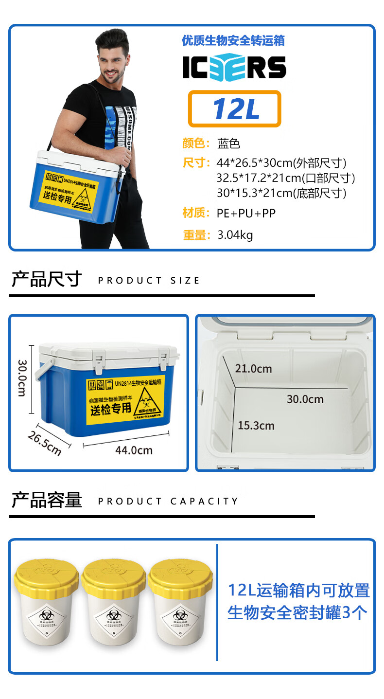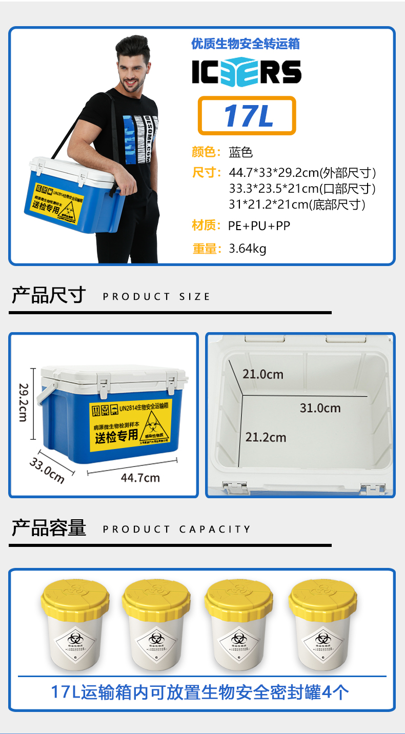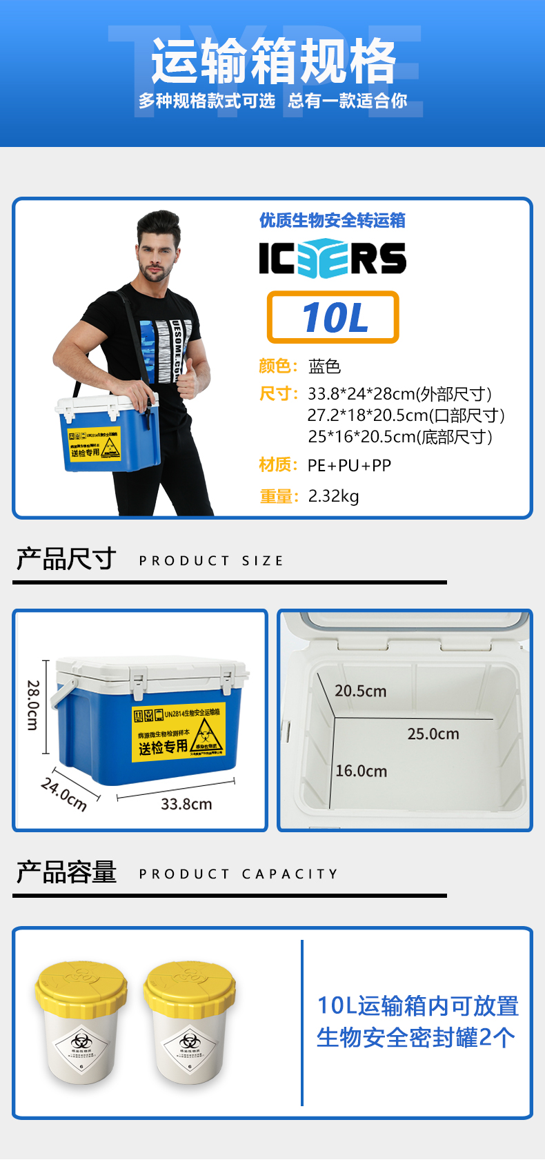 ICERS UN2814 biosafety transfer box, pharmaceutical and vaccine refrigerated cold chain box, sampling reagent incubator, 30L strap temperature display (excluding safety tank)