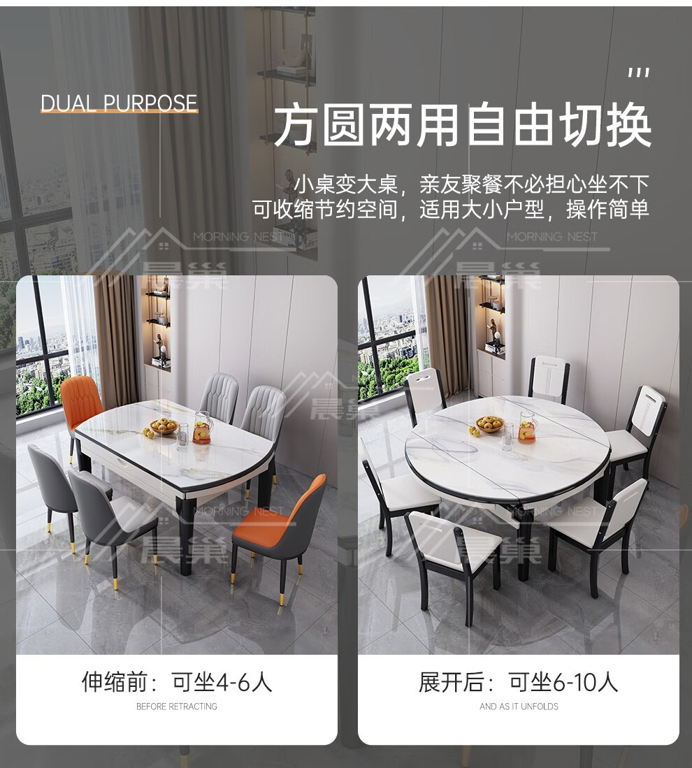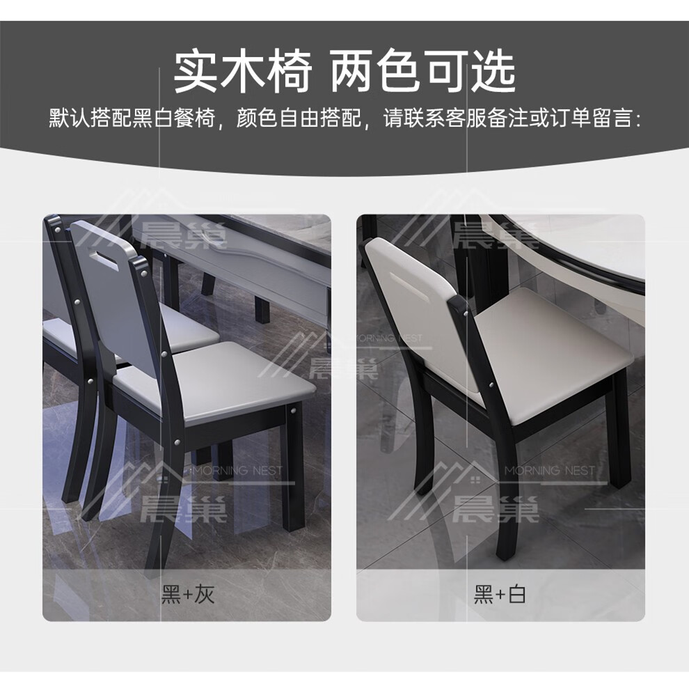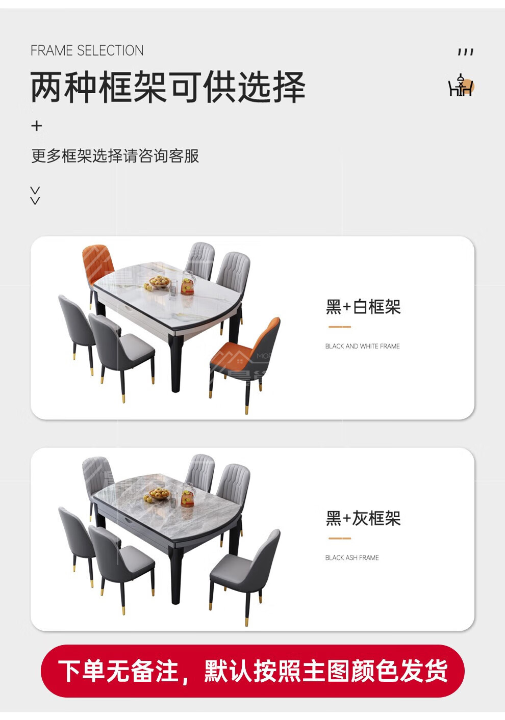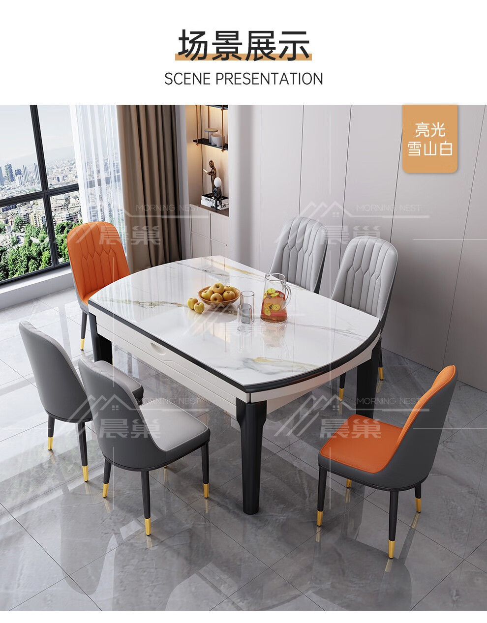 Morning Nest Slate Dining Table Solid Wood Dining Table and Chair Combination Modern Simple Retractable Folding Dining Table Restaurant Furniture Black and White Frame Glossy Snow Mountain White-111 Leather Chair 1.35 Meter Table and Six Chairs-12MM Rock Slab Thickness