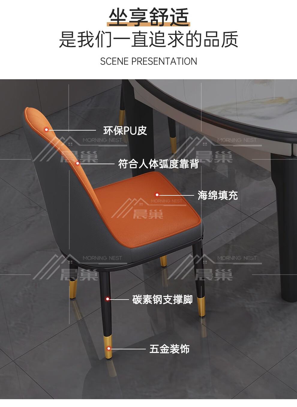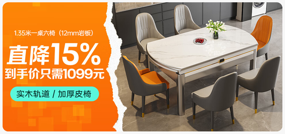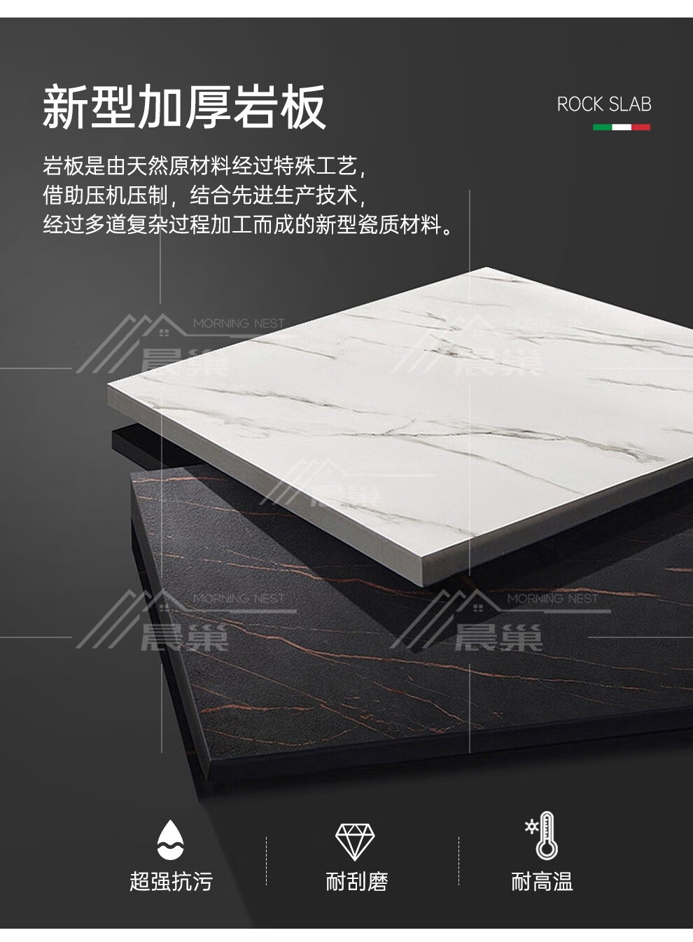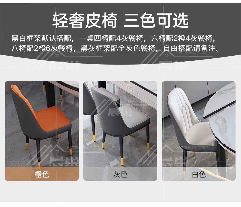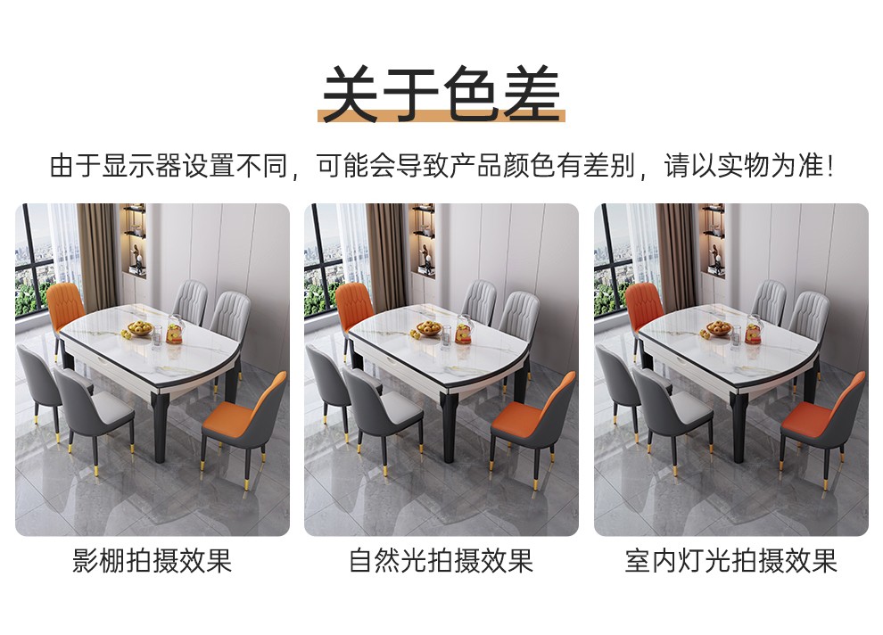 Morning Nest Slate Dining Table Solid Wood Dining Table and Chair Combination Modern Simple Retractable Folding Dining Table Restaurant Furniture Black and White Frame Glossy Snow Mountain White-111 Leather Chair 1.35 Meter Table and Six Chairs-12MM Rock Slab Thickness