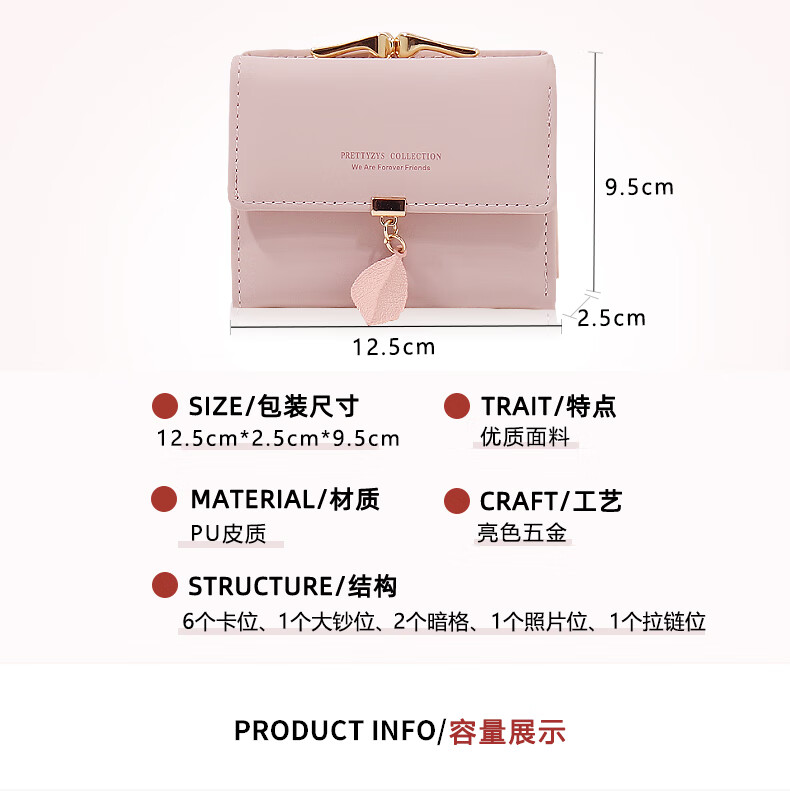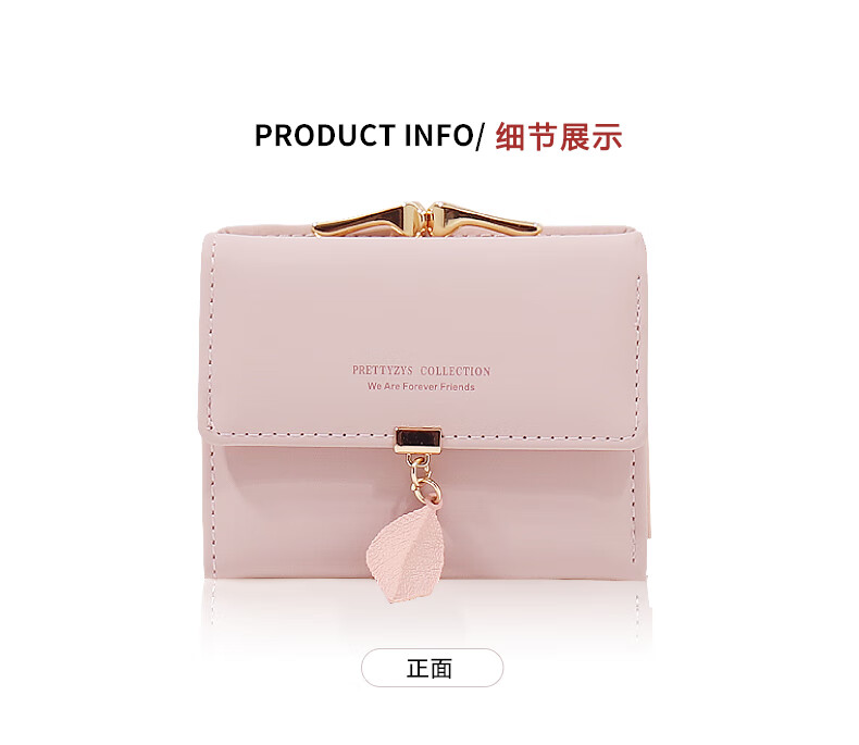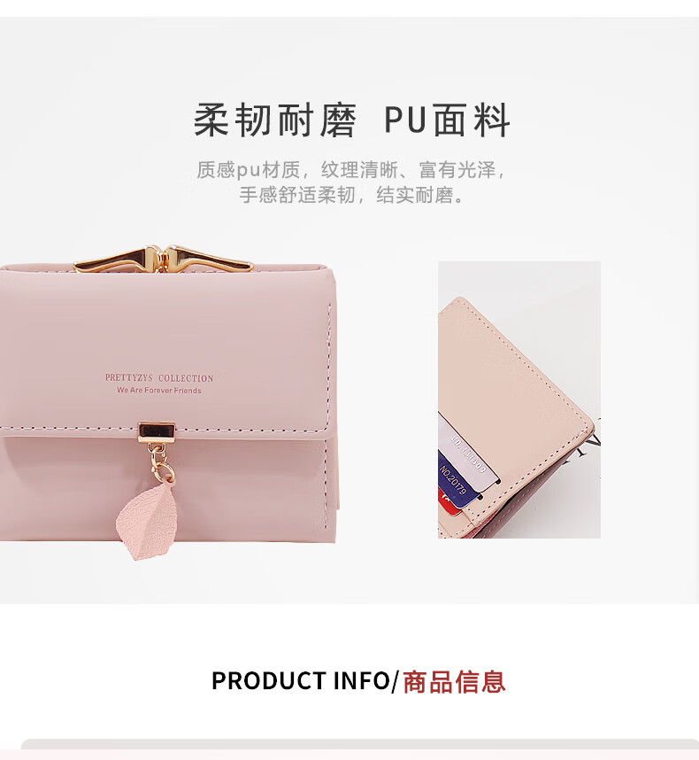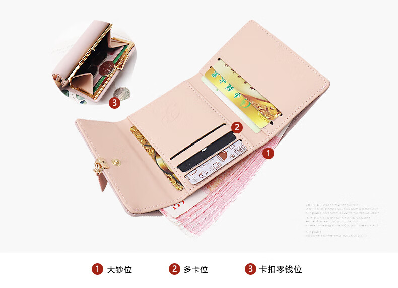 SHU GUO ER Wallet Women's Niche Design Small Fresh Student Short Wallet Women's Folding Clip Card Holder Exquisite Small Coin Purse Pink #C